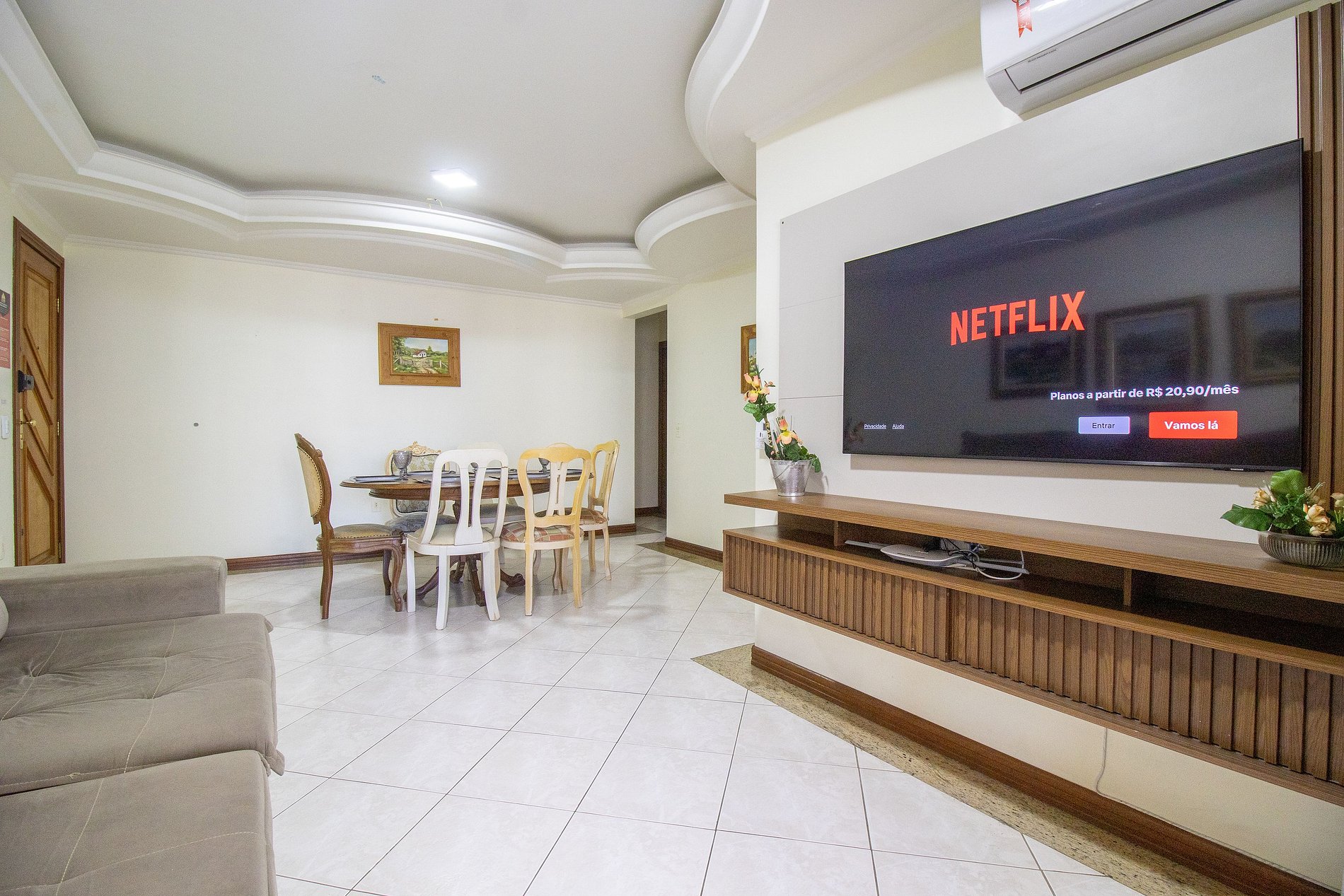 O espaço conta com internet wi-fi de 100MB e televisão Smart na sala.