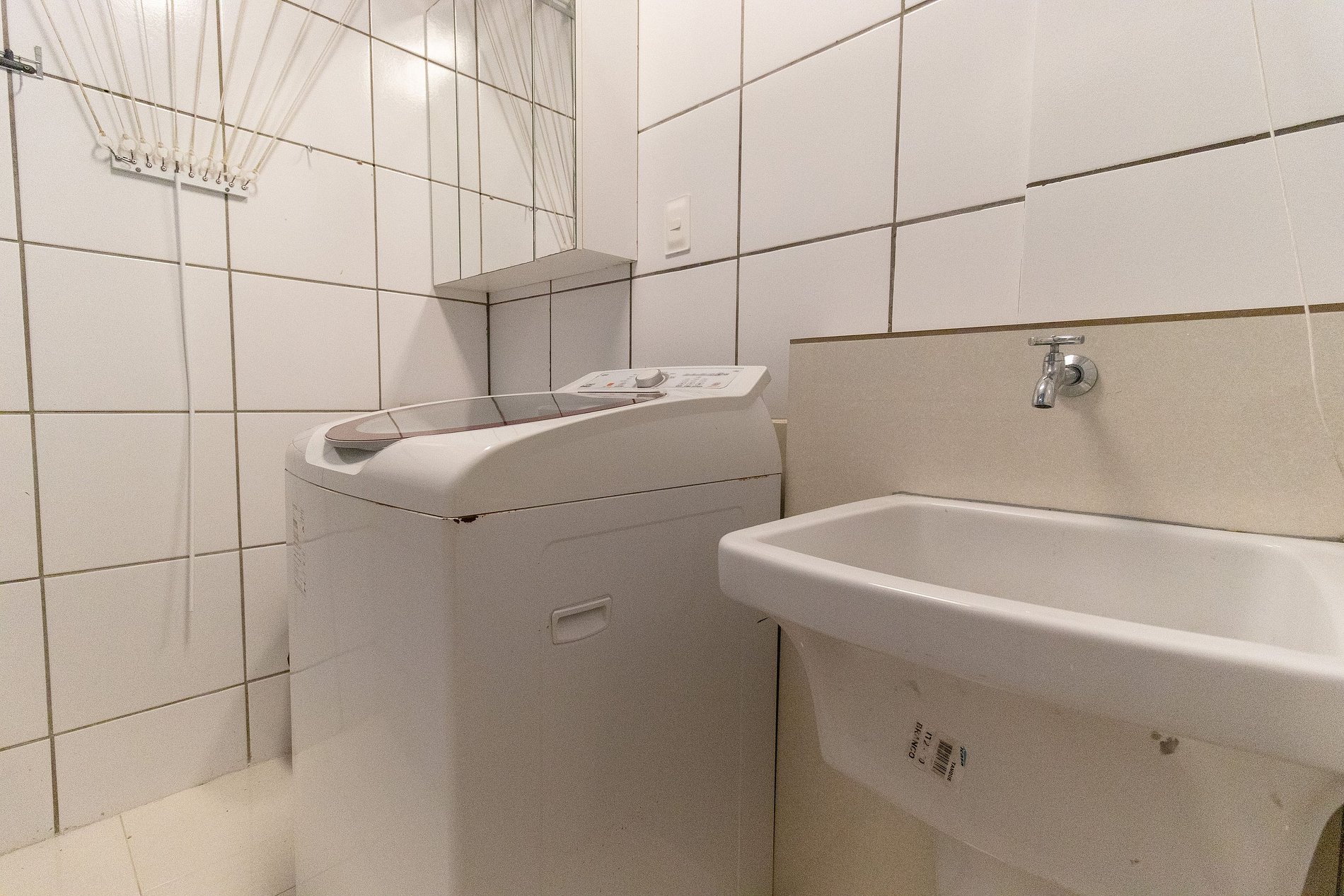 Esse espaço possui três dormitórios, sendo uma suíte. Ao total são duas camas de casal, duas camas de solteiro e uma cama auxiliar de solteiro. Há uma sala grande com sofá, cadeiras e mesa de jantar integrada com a cozinha que possui uma bancada de pedra e dispõe de utensílios para preparar refeições básicas, além de geladeira, forno, fogão e microondas. Há também área de serviço com máquina de lavar, ferro de passar e secador de cabelo.