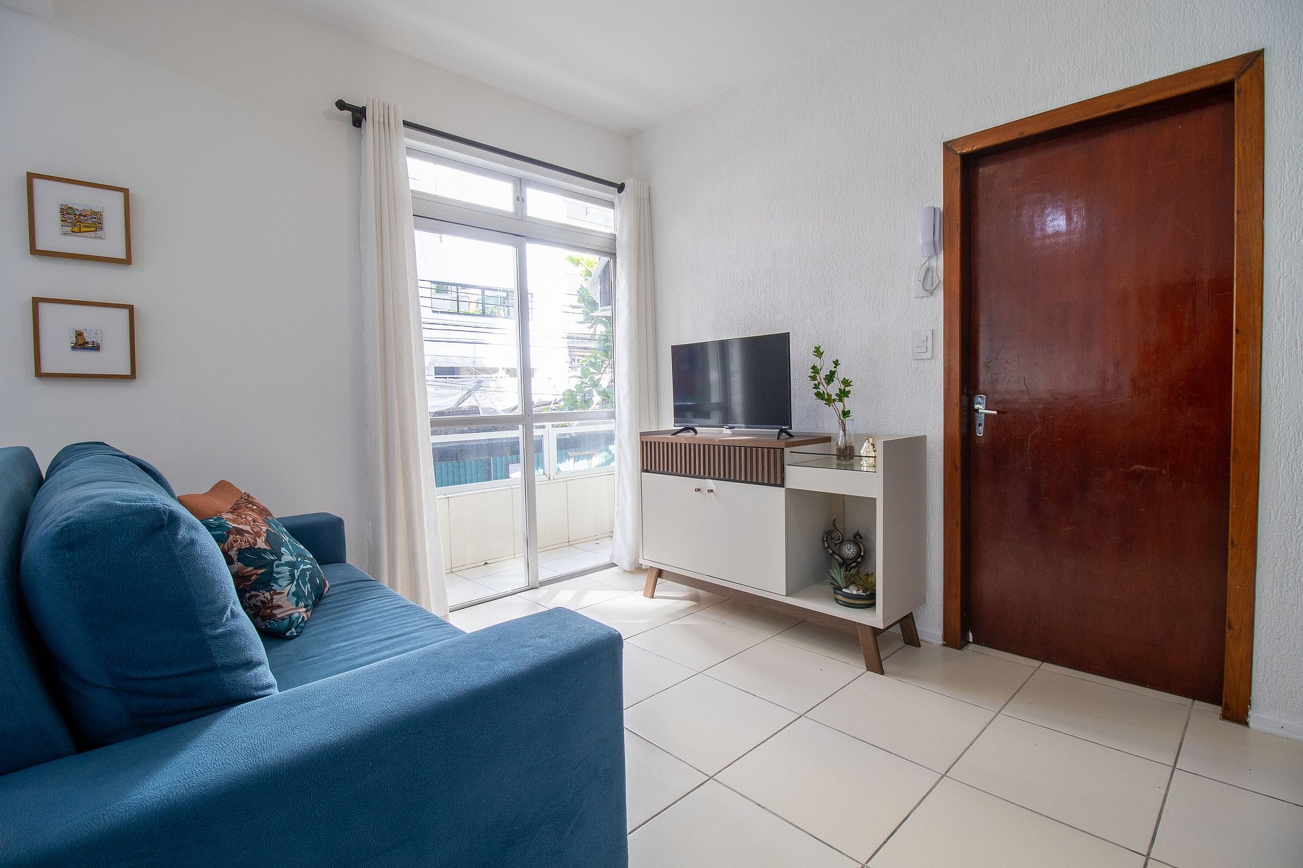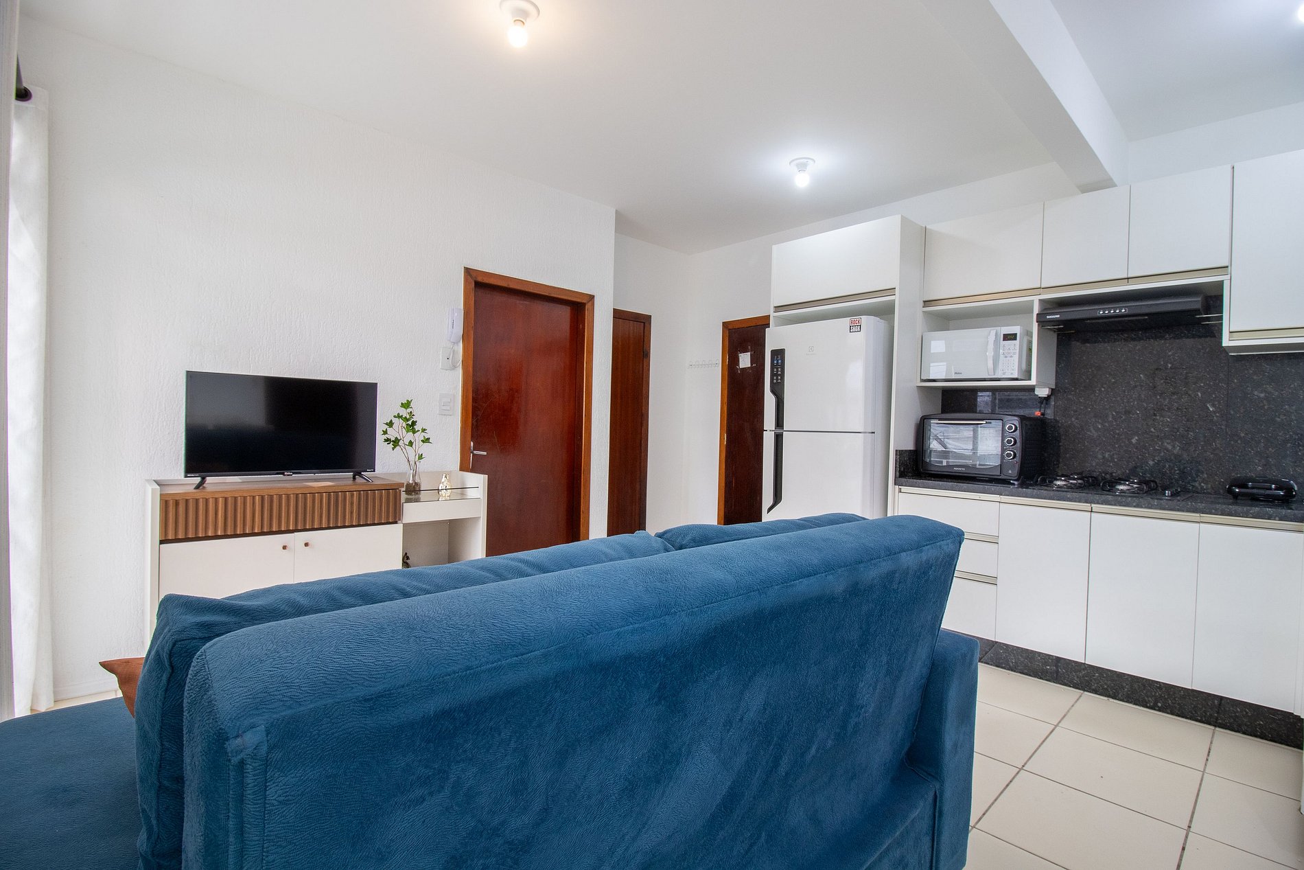 O espaço possui internet wi-fi própria do apartamento e TV Smart na sala.