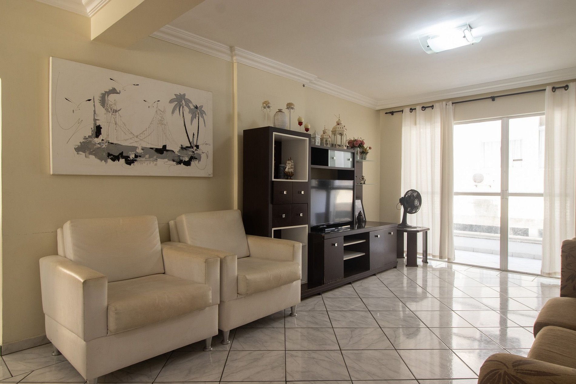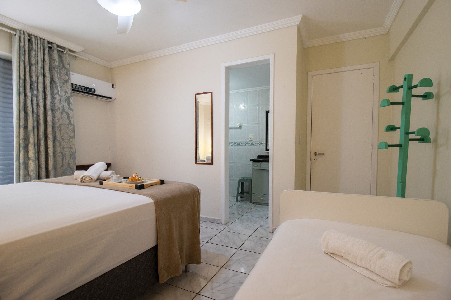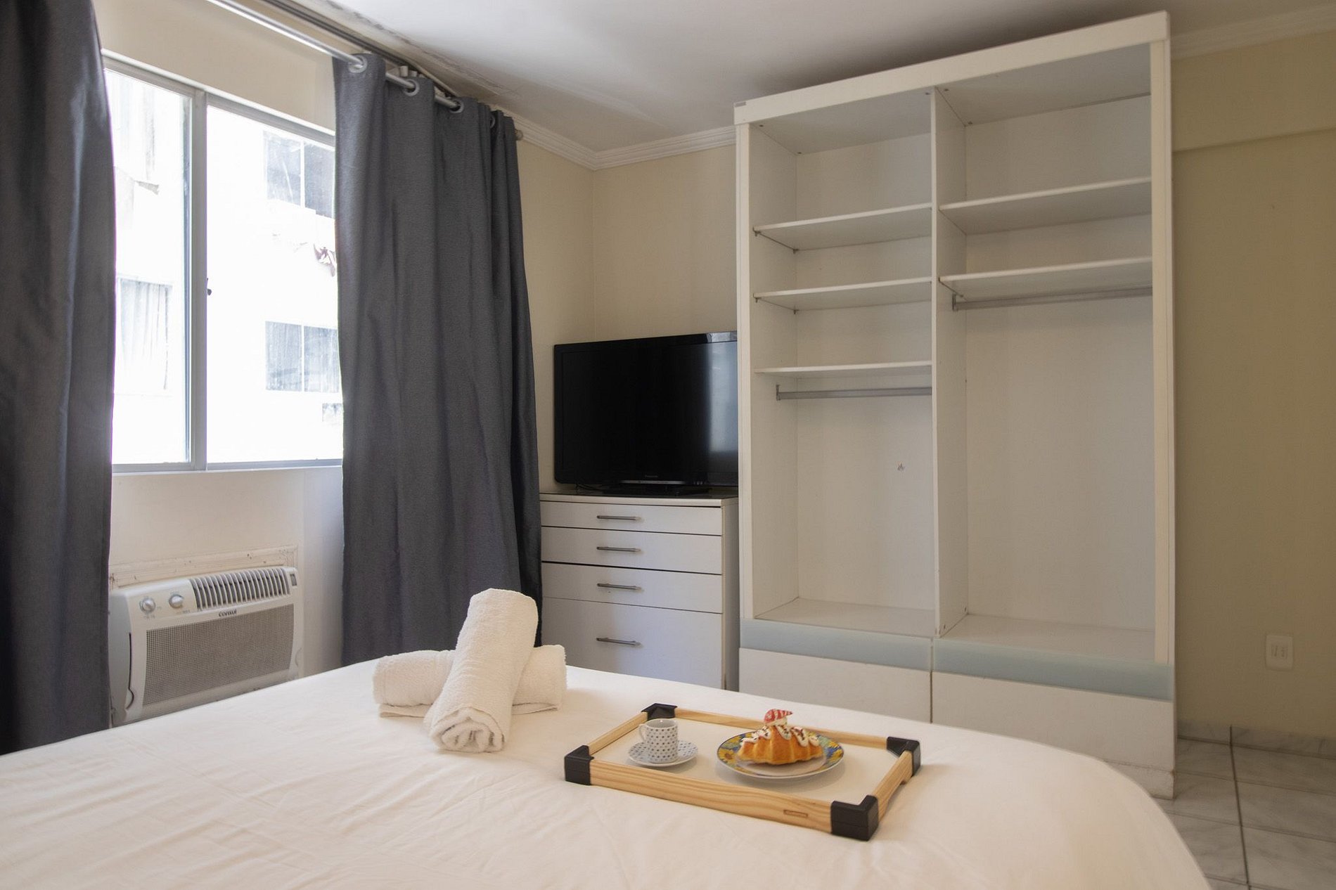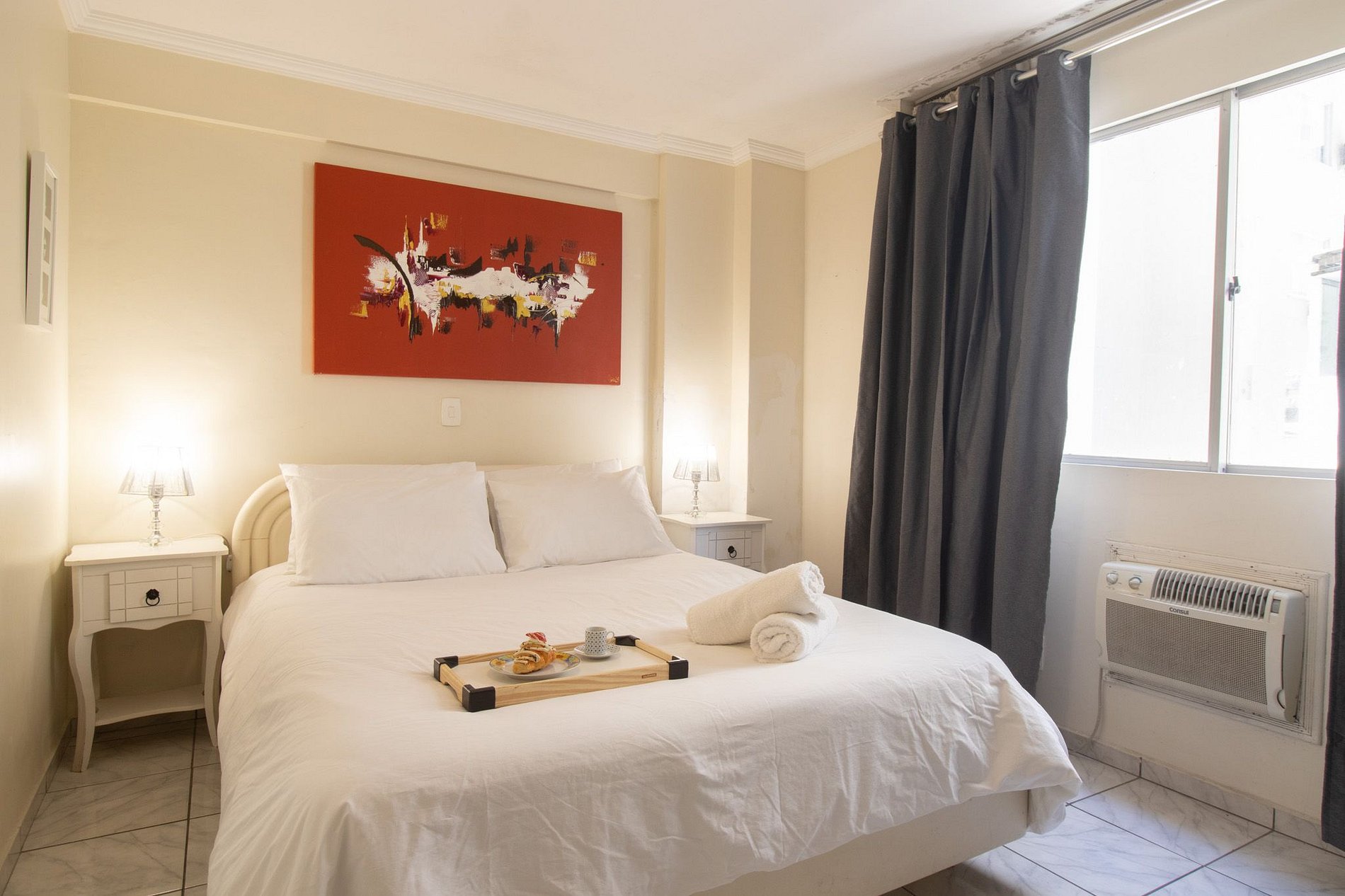 Mantenha-se fresco e confortável em todas as suítes, graças aos quatro ares condicionados estrategicamente distribuídos por todo o apartamento. Com a função de apenas refrigerar.