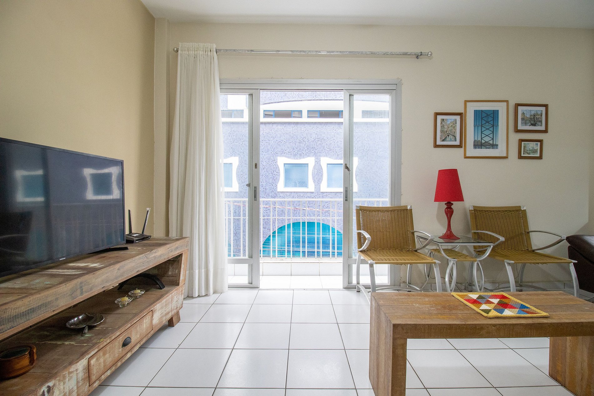 Internet wi-fi de boa velocidade própria do apartamento. TV Smart na sala.