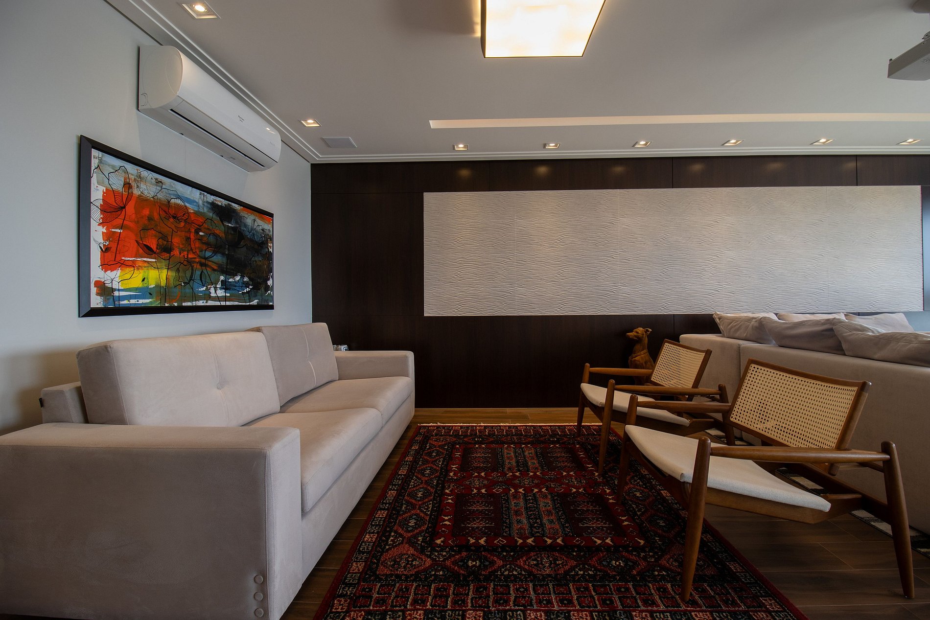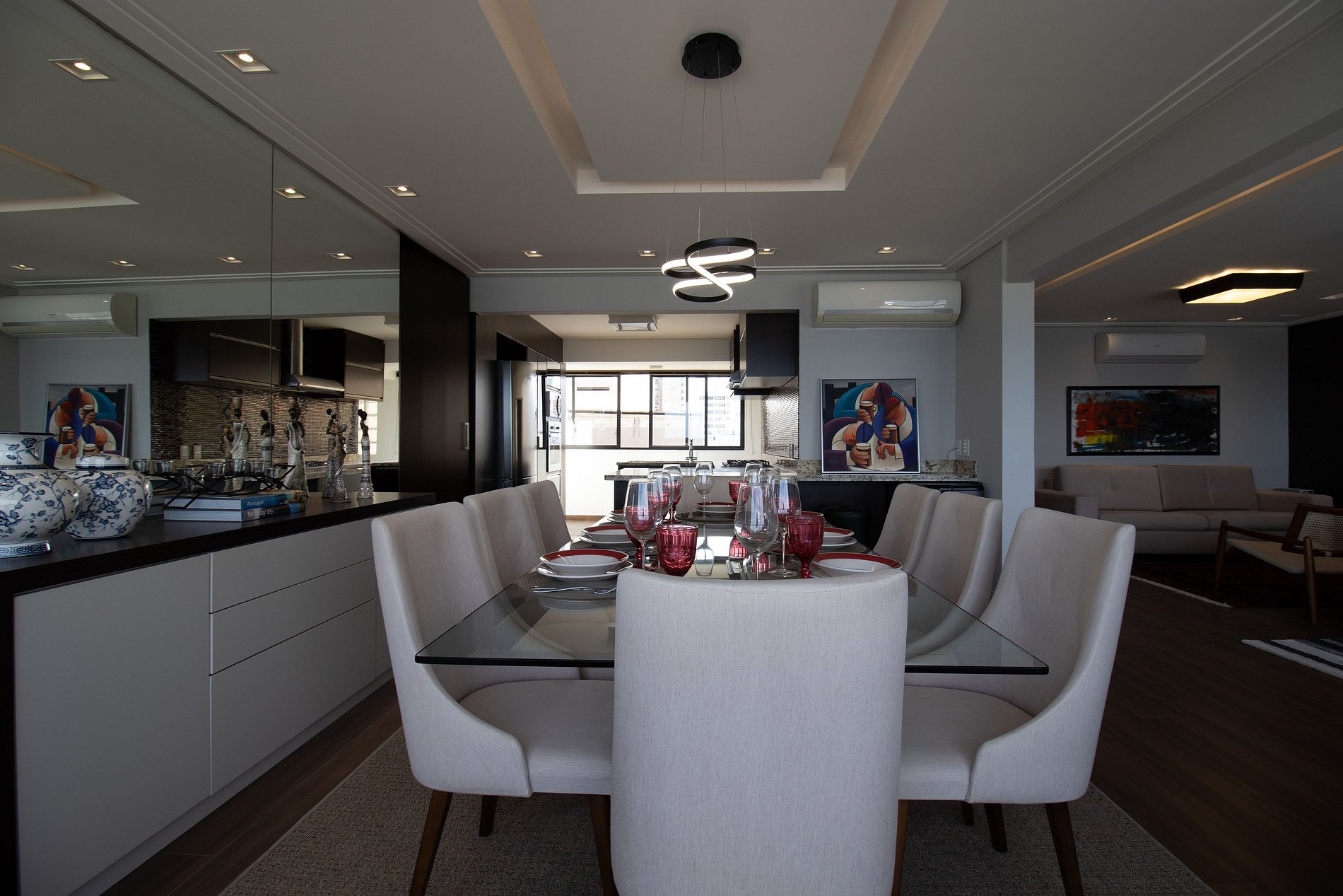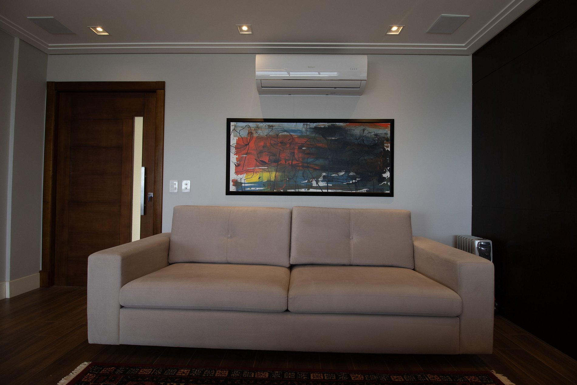 Ao total são cinco ares condicionados, sendo um em cada dormitório, um na sala de estar e outro na sala de jantar.