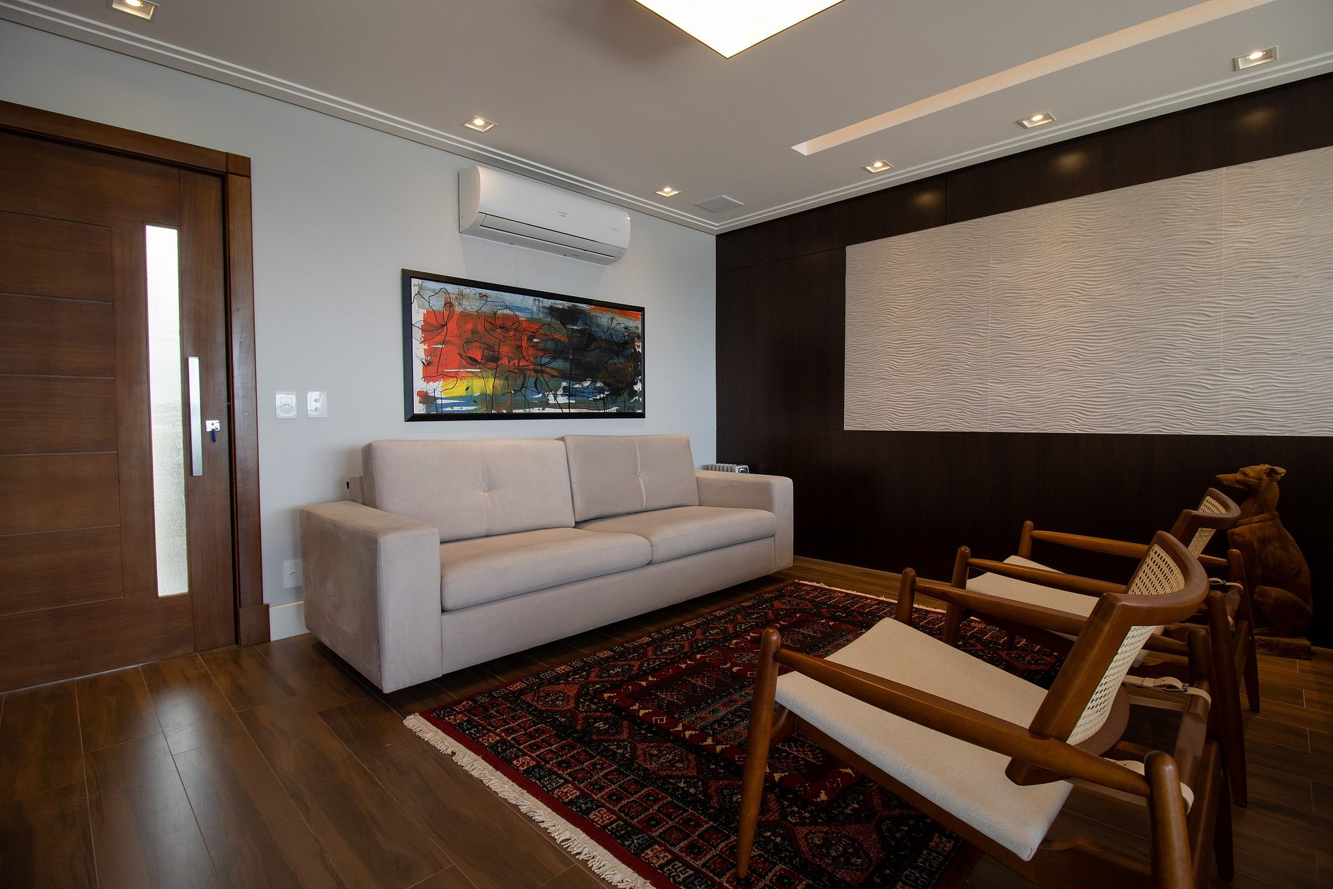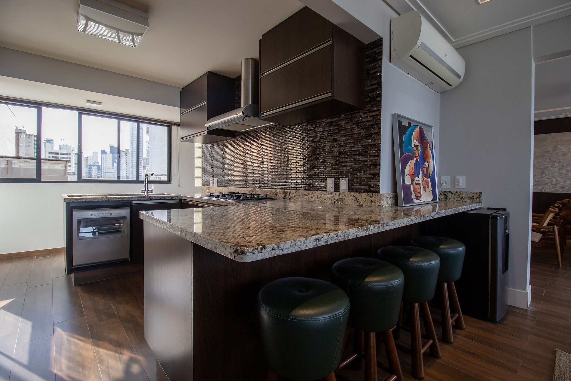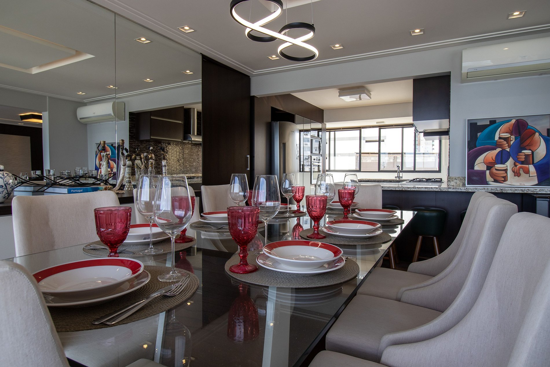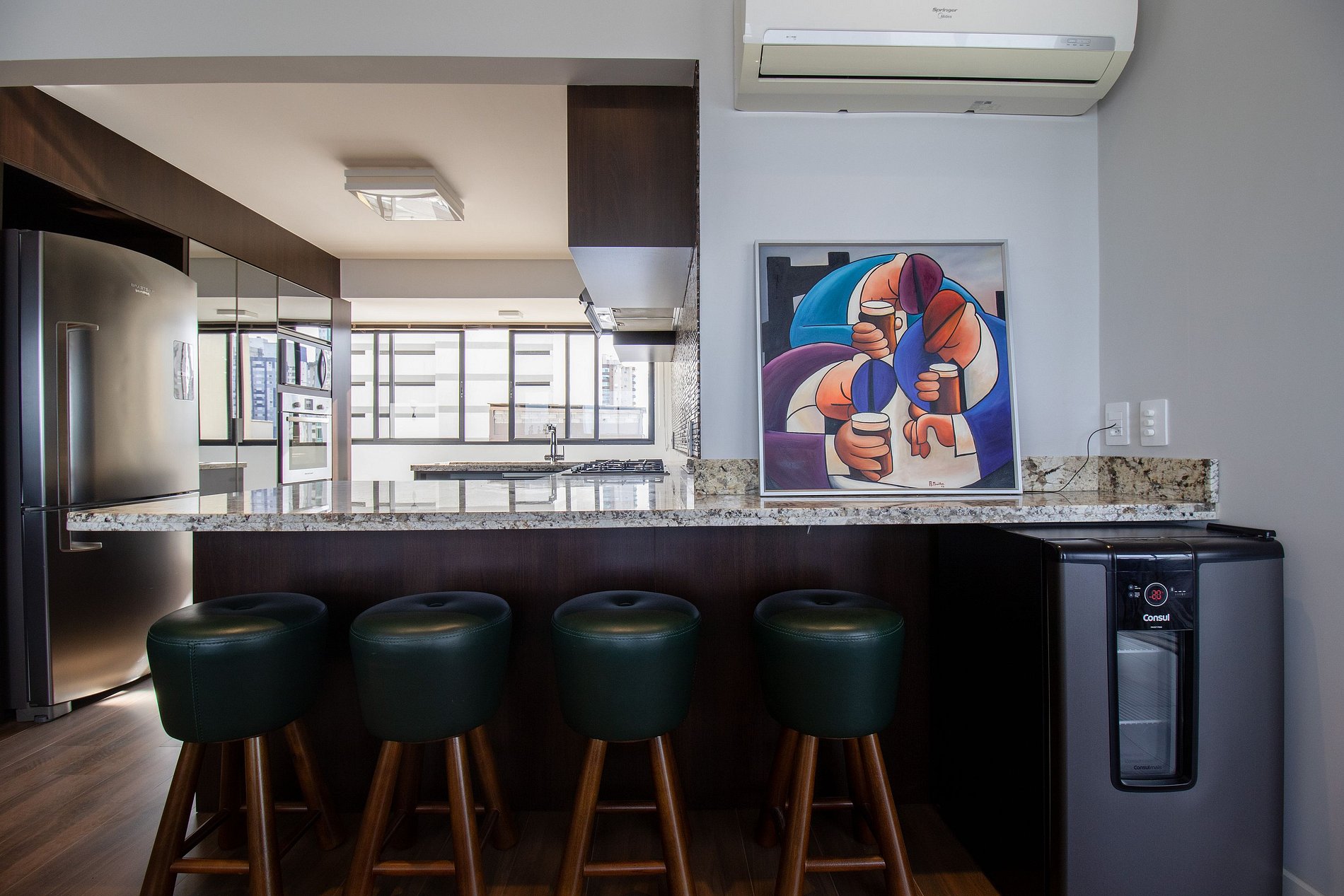 Ao total são cinco ares condicionados, sendo um em cada dormitório, um na sala de estar e outro na sala de jantar.
