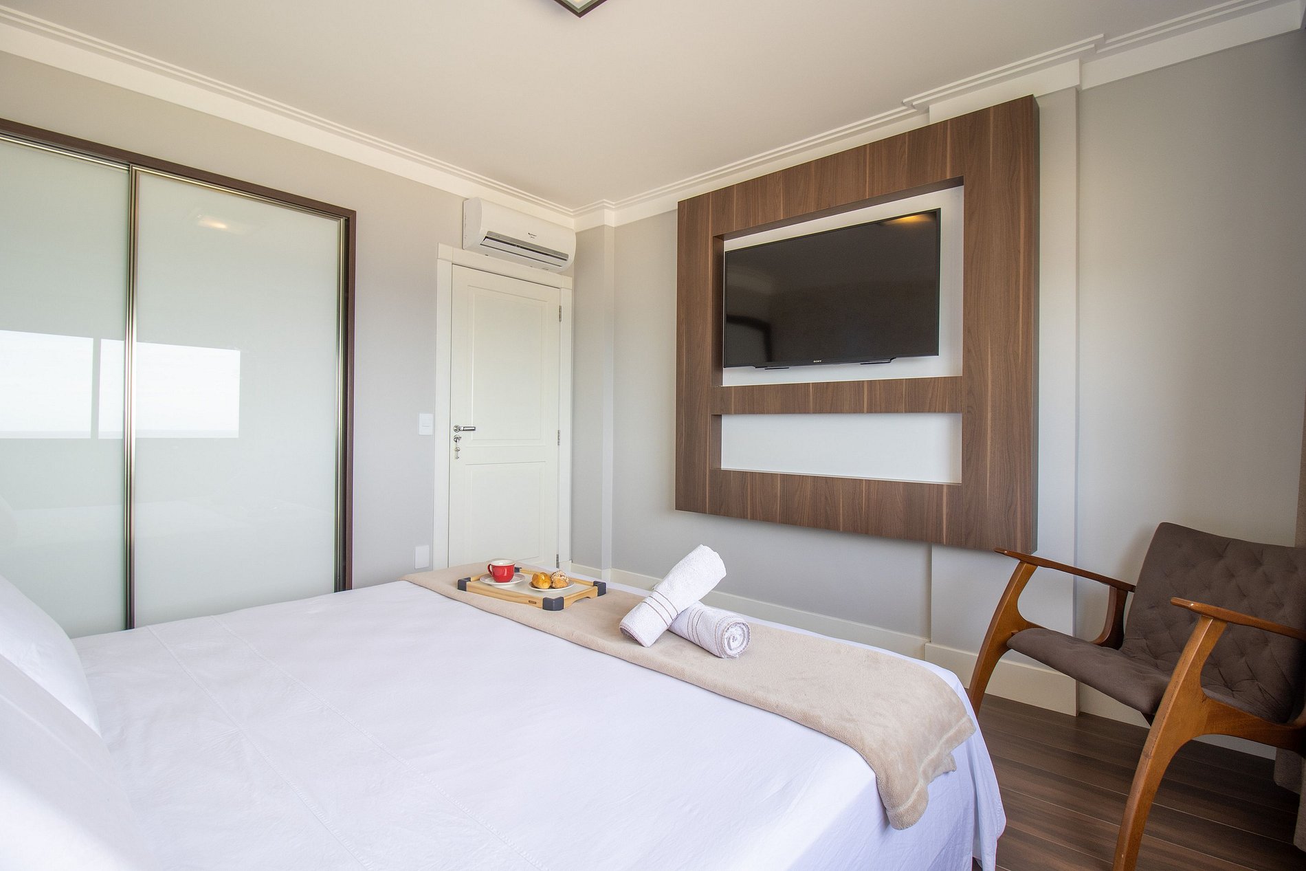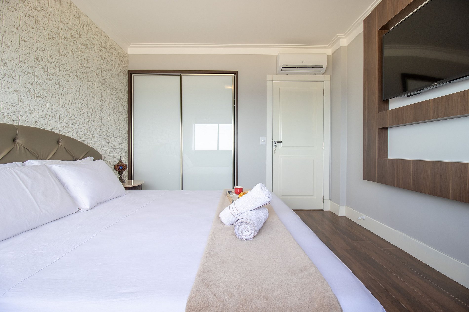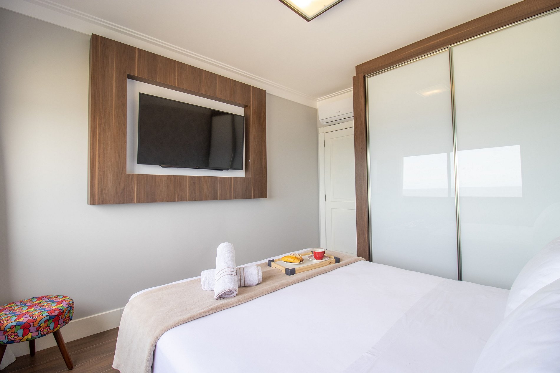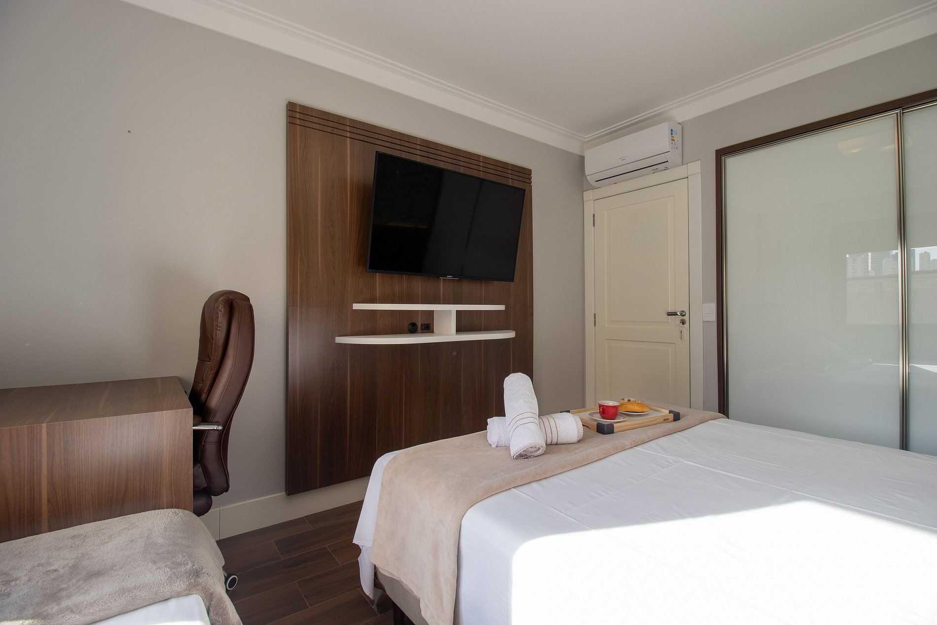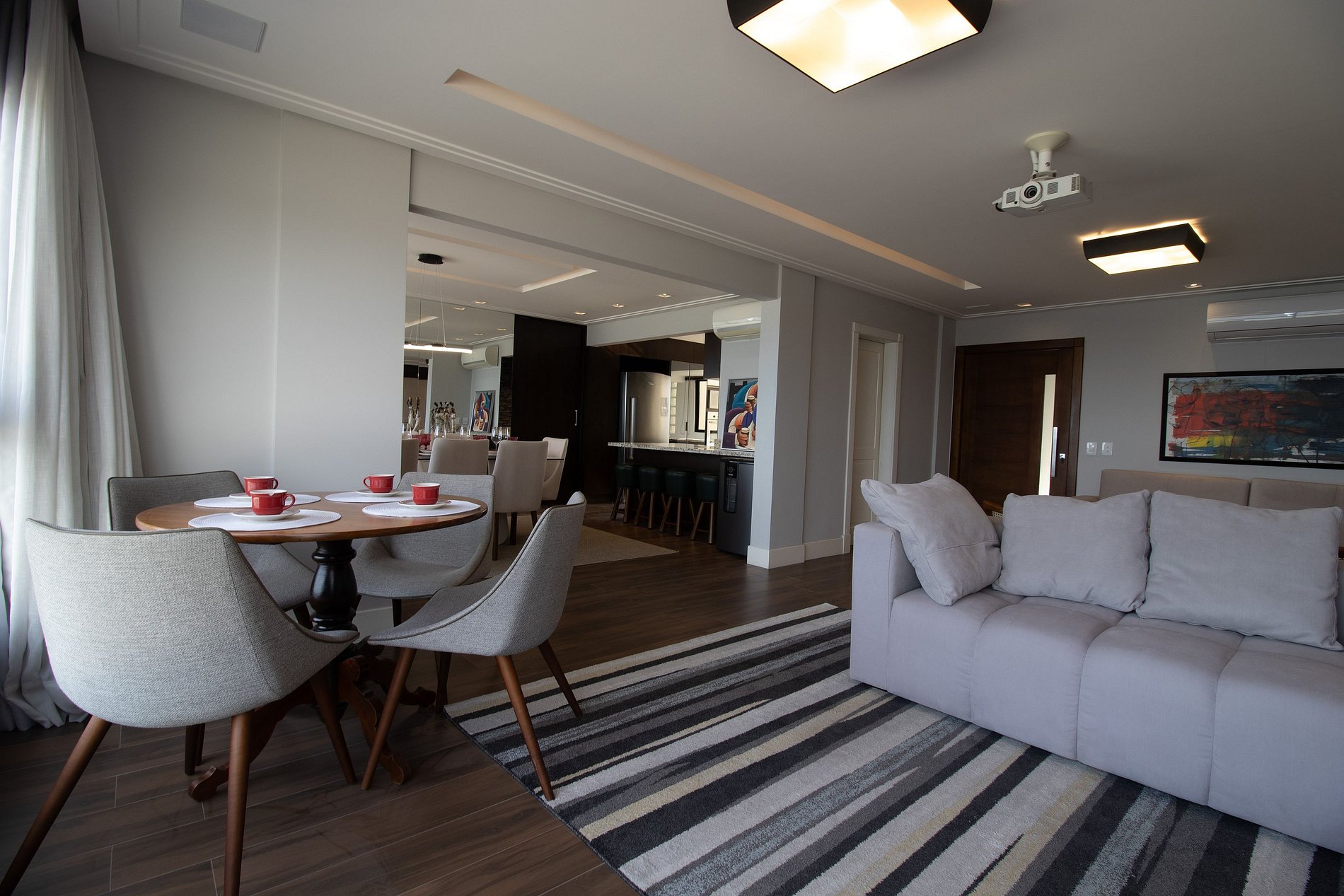 Internet wi-fi própria e de boa qualidade, TV Smart nos três dormitórios e projetor na sala.