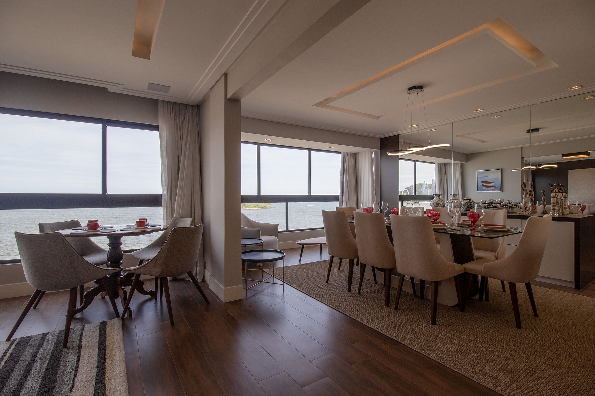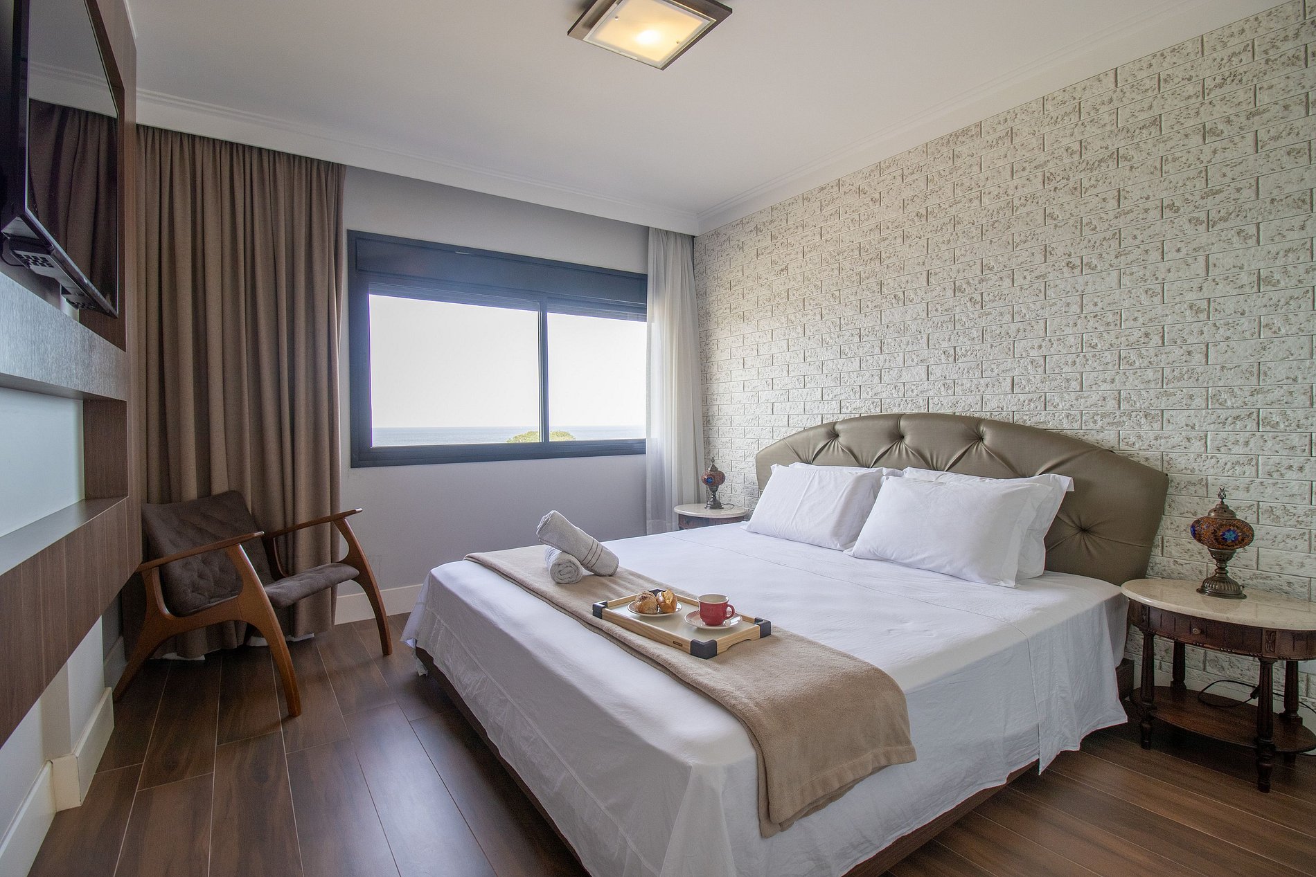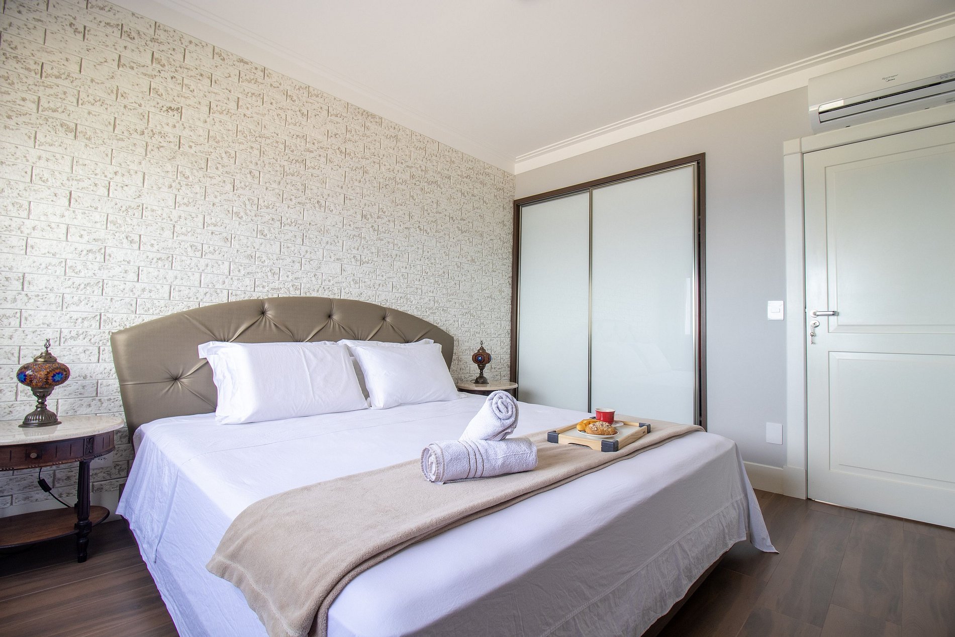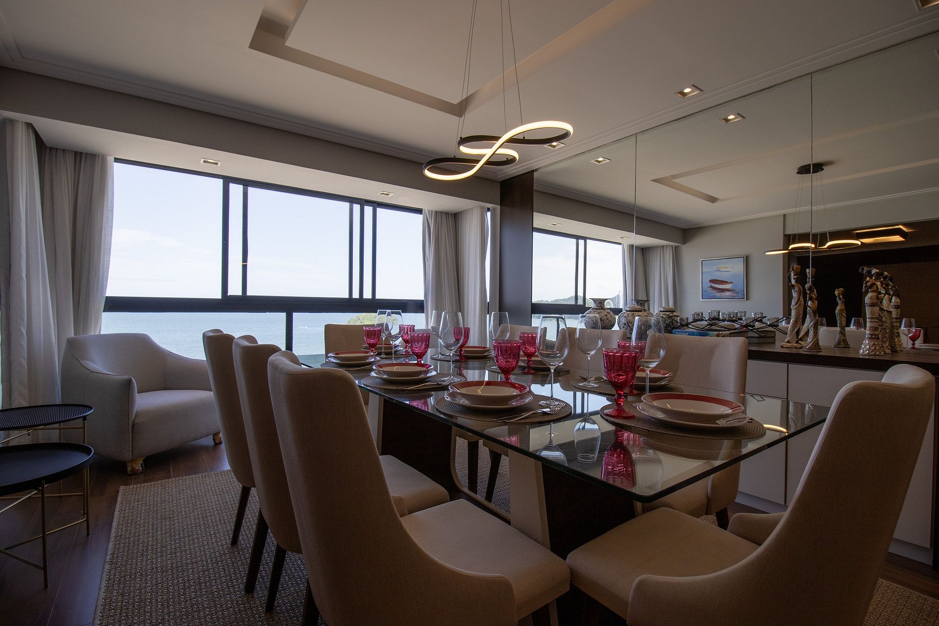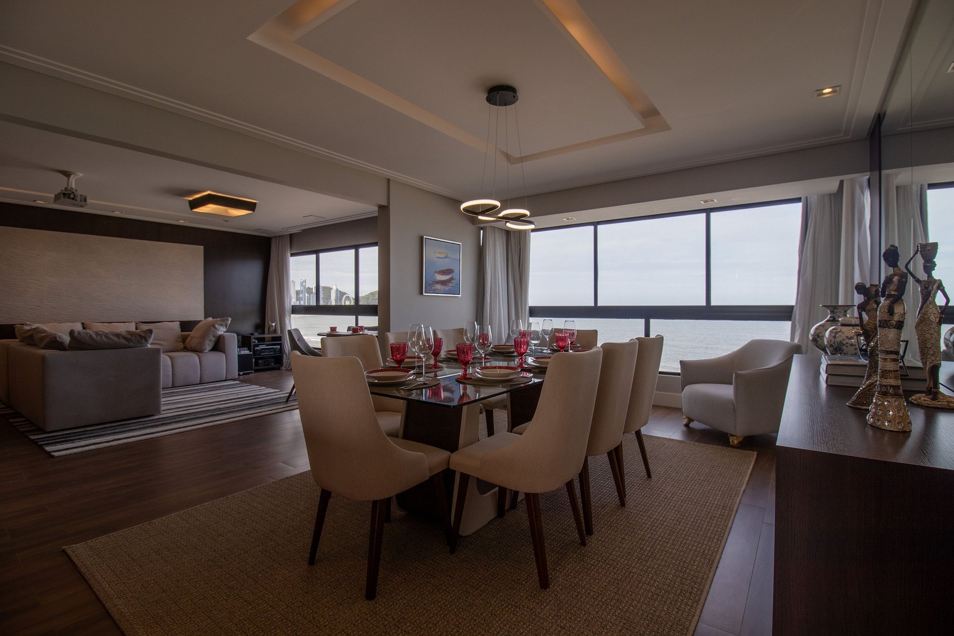 Esse apartamento fica na melhor localização da cidade, na esquina com o Calçadão Central e de frente para o mar com uma vista espetacular da orla de Balneário Camboriú. O espaço é totalmente climatizado, há ar condicionado em dois dormitórios, na sala de jantar e sala de estar, ao total temos uma cama king, duas camas queen, uma cama de solteiro e um colchão de solteiro avulso, acomodando facilmente oito pessoas. Além disso, há TV Smart em todos os dormitórios e um projetor na sala de estar!