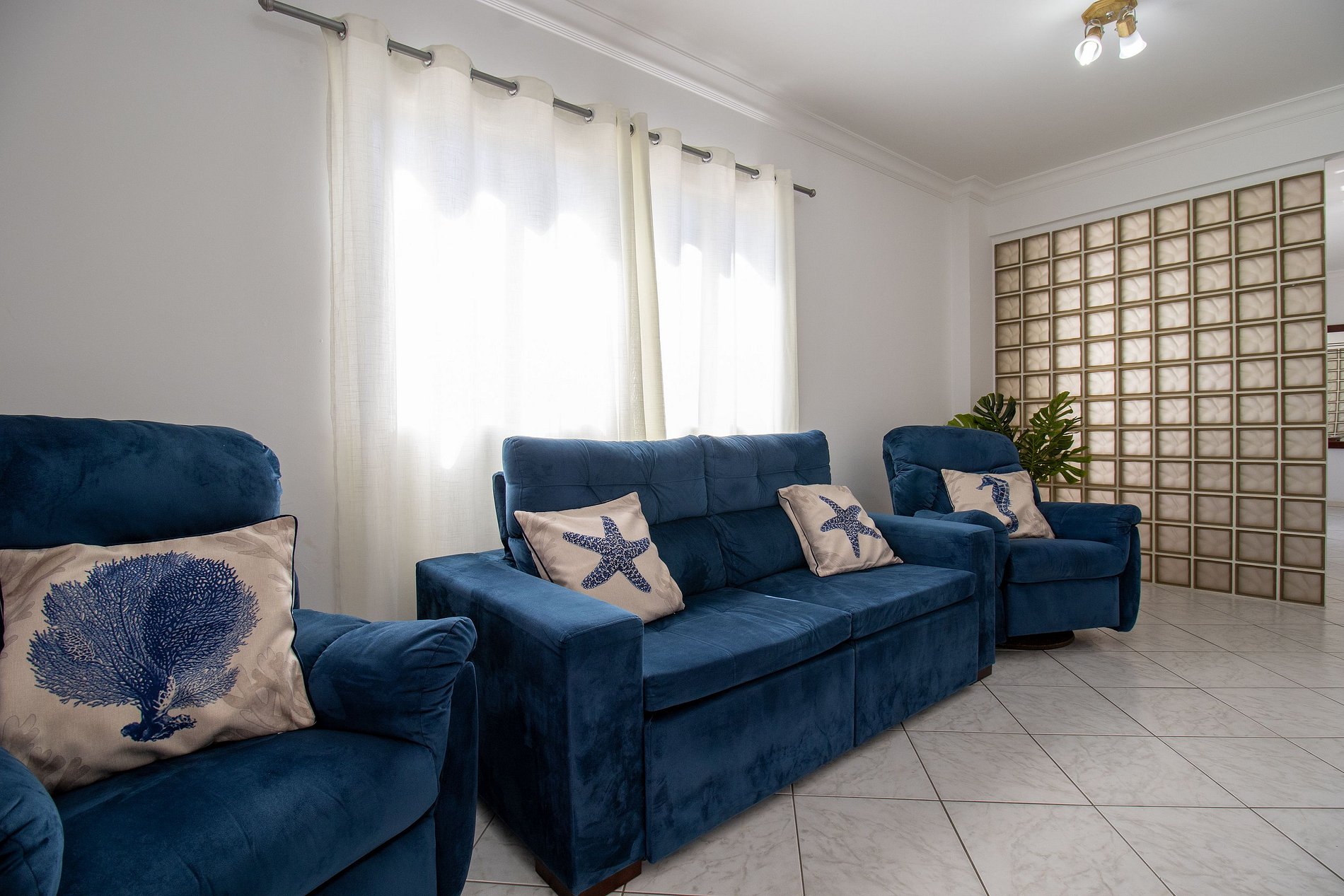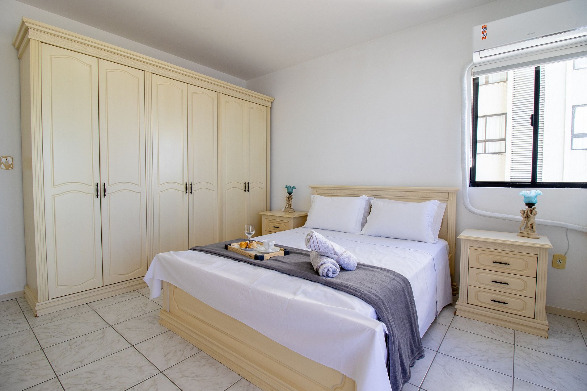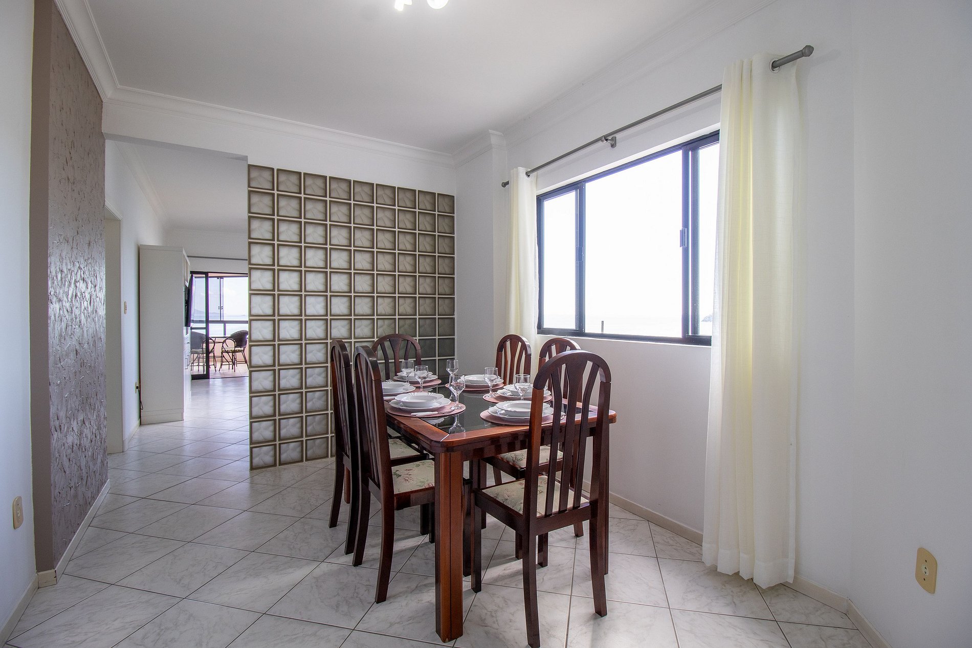 O apartamento oferece três suítes, proporcionando privacidade e conforto para todos os hóspedes. A configuração das acomodações inclui: duas camas queen, uma cama de casal e dois colchões de solteiro avulsos. A sala de estar é aconchegante e equipada com televisão, sofá e poltronas, ideal para momentos de lazer. A sala de jantar conta com uma mesa e cadeiras, perfeito para refeições em grupo. A cozinha completa dispõe de todos os utensílios básicos necessários para preparar suas refeições com praticidade. A varanda ampla é um destaque especial, com vista deslumbrante para o mar, equipada com uma churrasqueira, mesa e cadeiras, criando o ambiente perfeito para momentos de descontração.