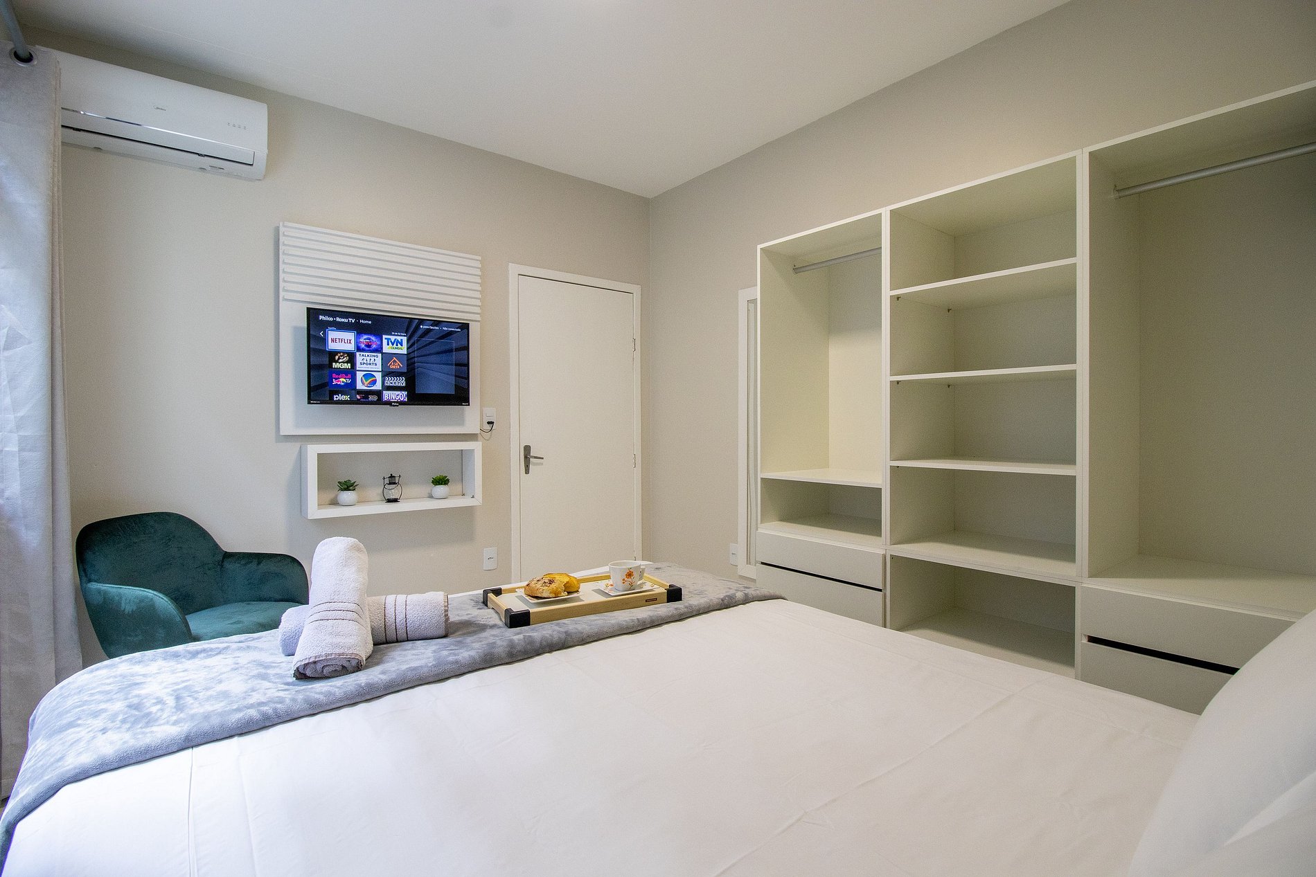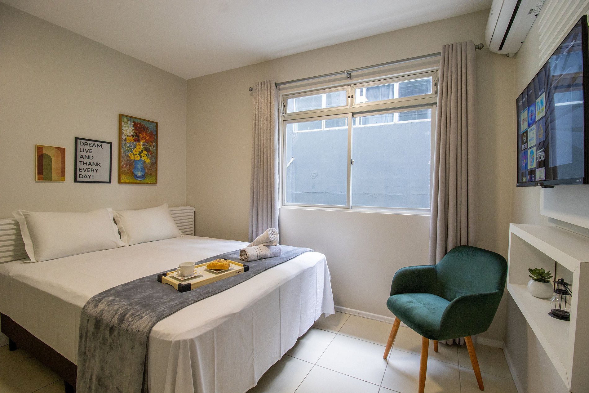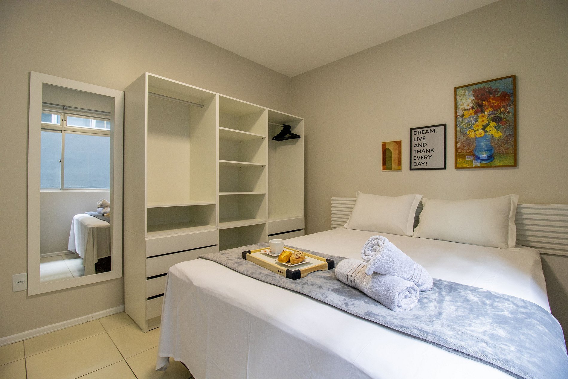 Venha para Balneário Camboriú e hospede-se nesse espaço localizado na região central da cidade. O apartamento possui uma suíte com cama queen e um colchão de solteiro avulso. Ar condicionado e TV na suíte. Cozinha equipada com utensílios para o preparo de refeições básicas, sanduicheira, cafeteira, air fryer, ferro de passar roupa e secador de cabelo.