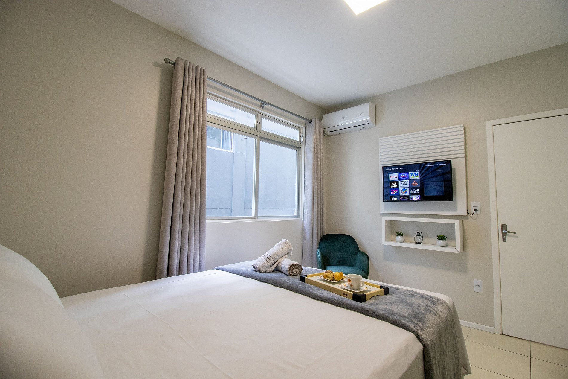 Venha para Balneário Camboriú e hospede-se nesse espaço localizado na região central da cidade. O apartamento possui uma suíte com cama queen e um colchão de solteiro avulso. Ar condicionado e TV na suíte. Cozinha equipada com utensílios para o preparo de refeições básicas, sanduicheira, cafeteira, air fryer, ferro de passar roupa e secador de cabelo.