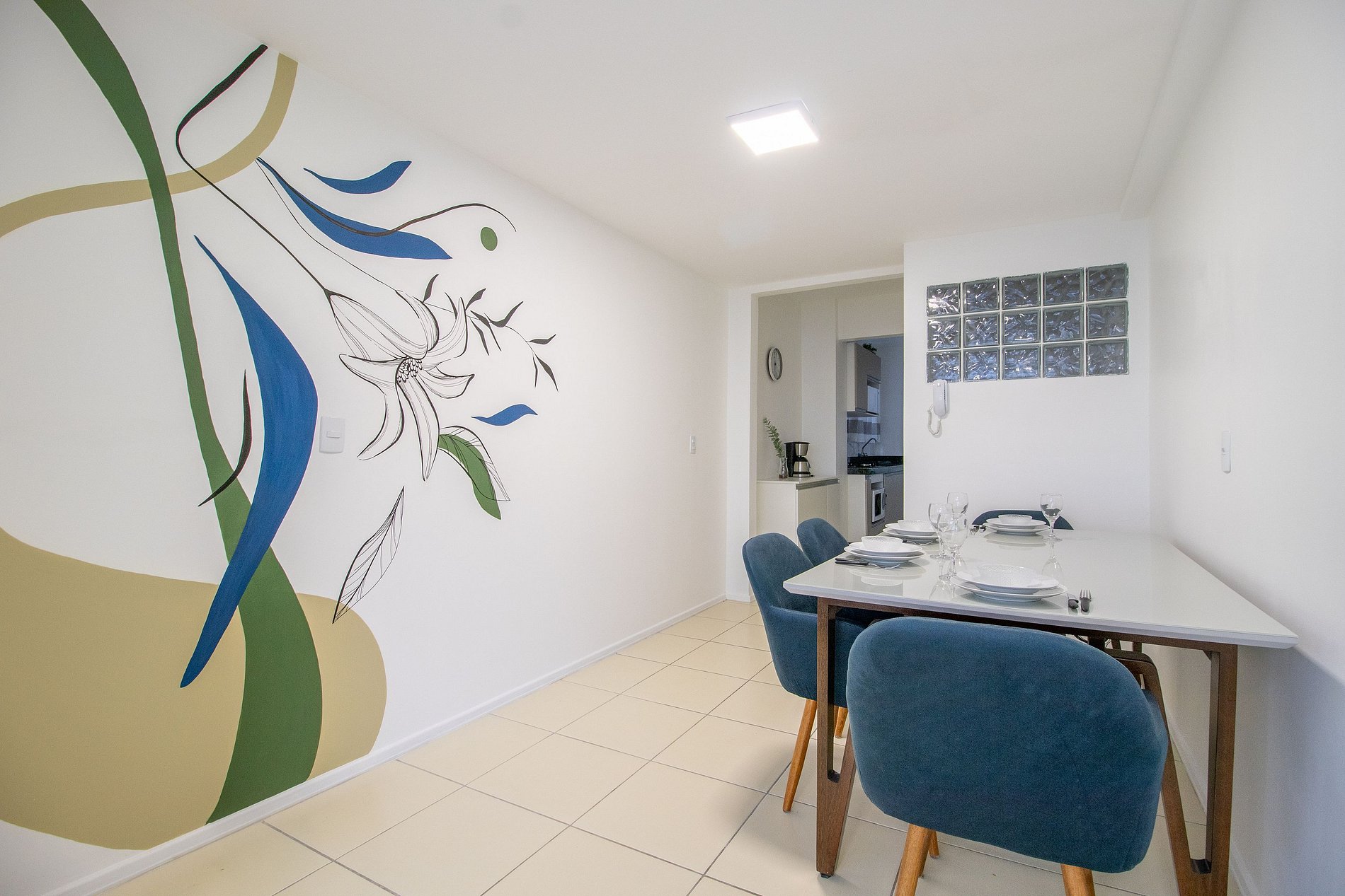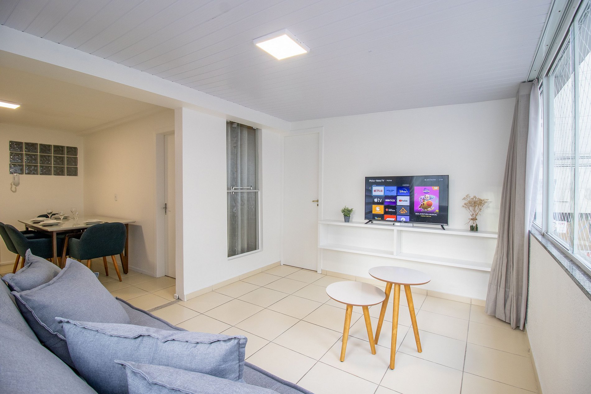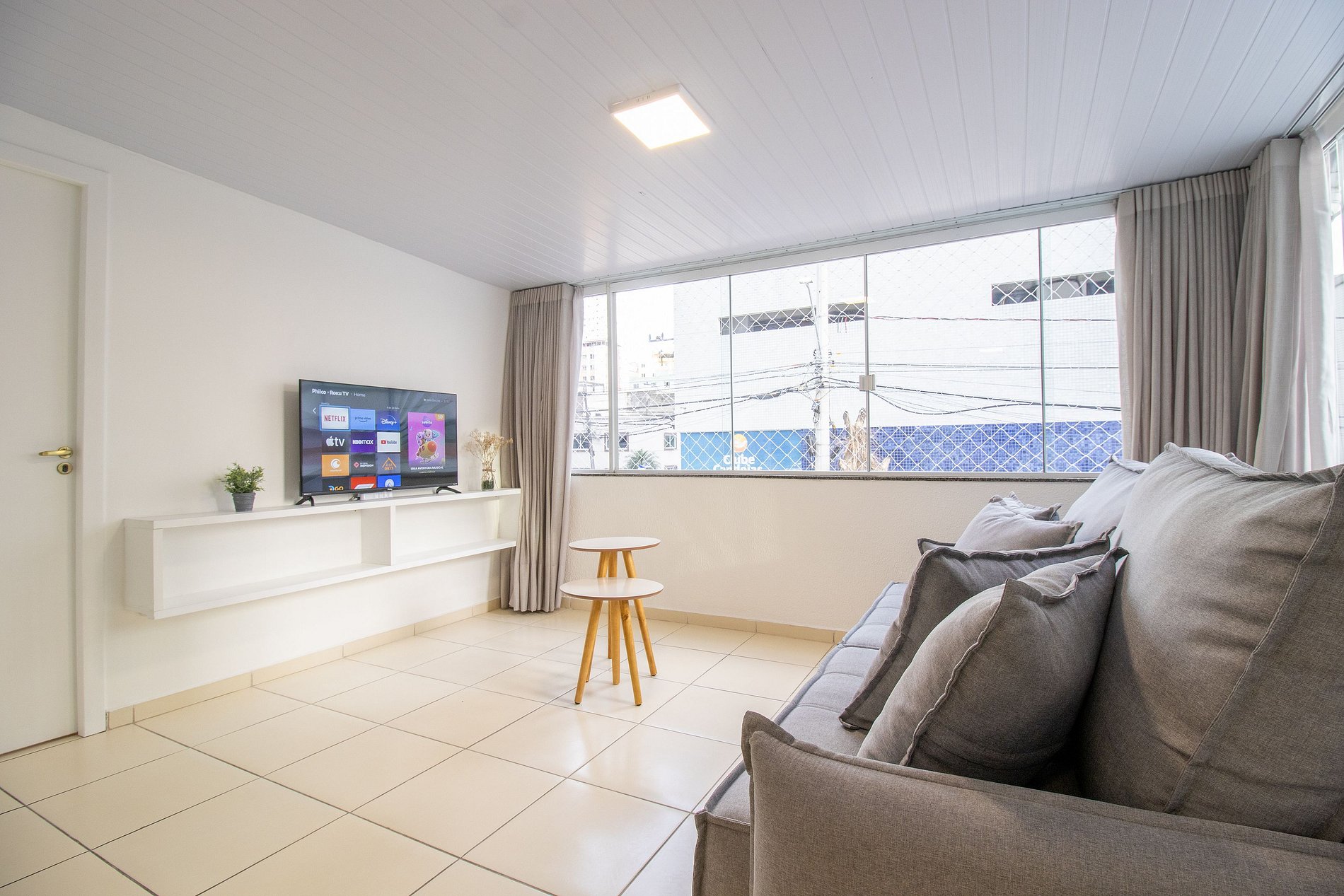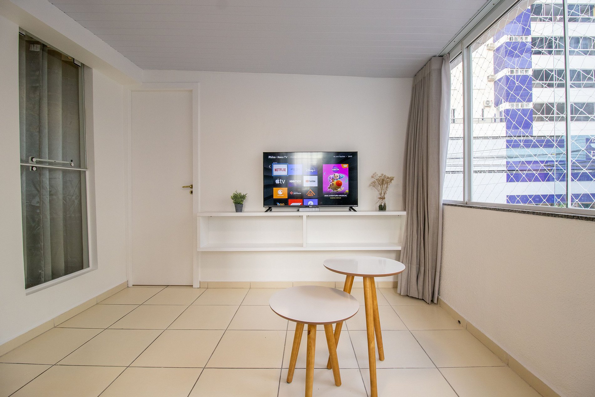 O espaço possui internet wi-fi própria do apartamento e TV Smart na sala.