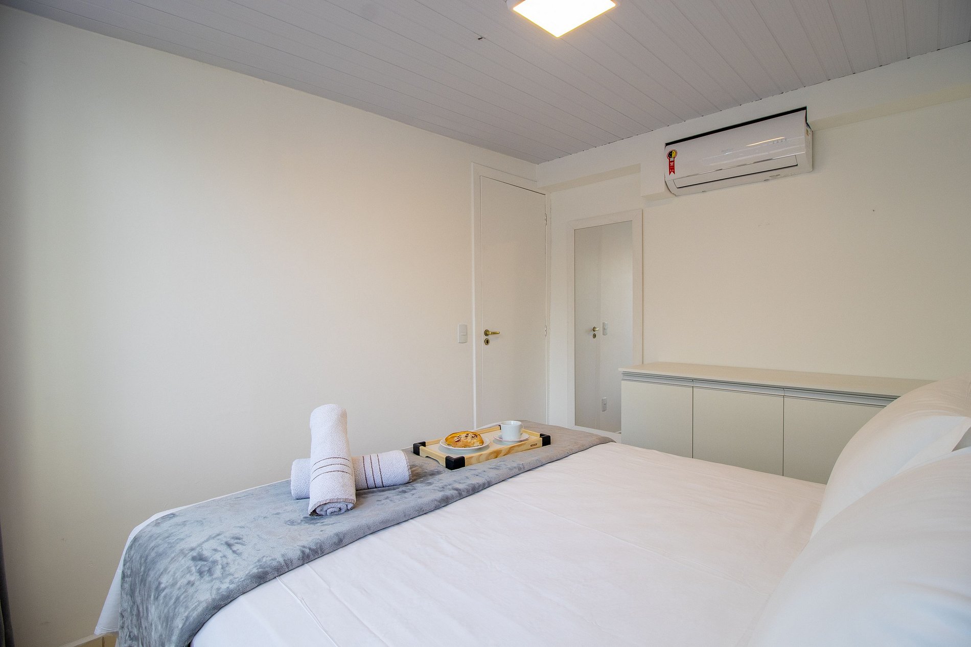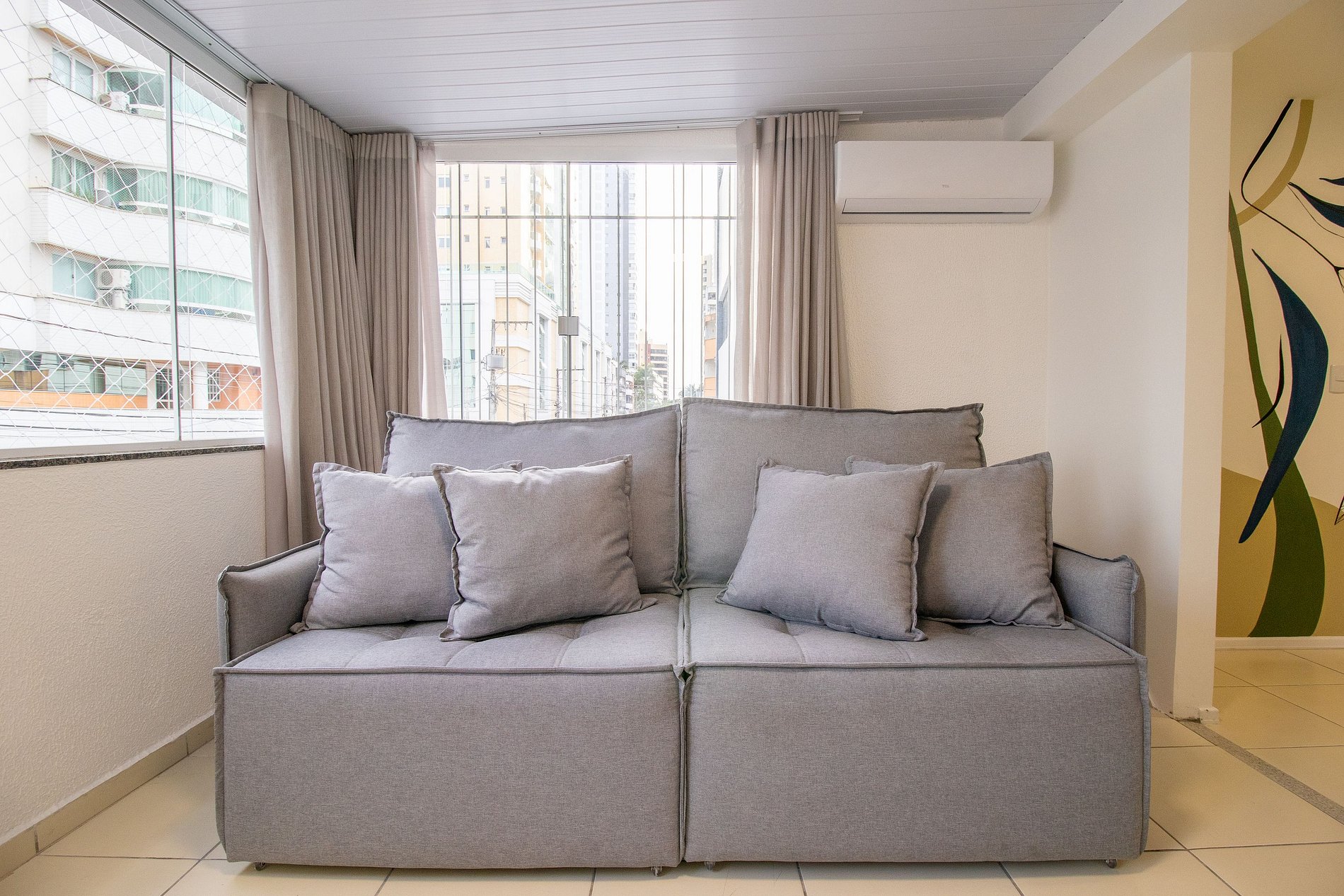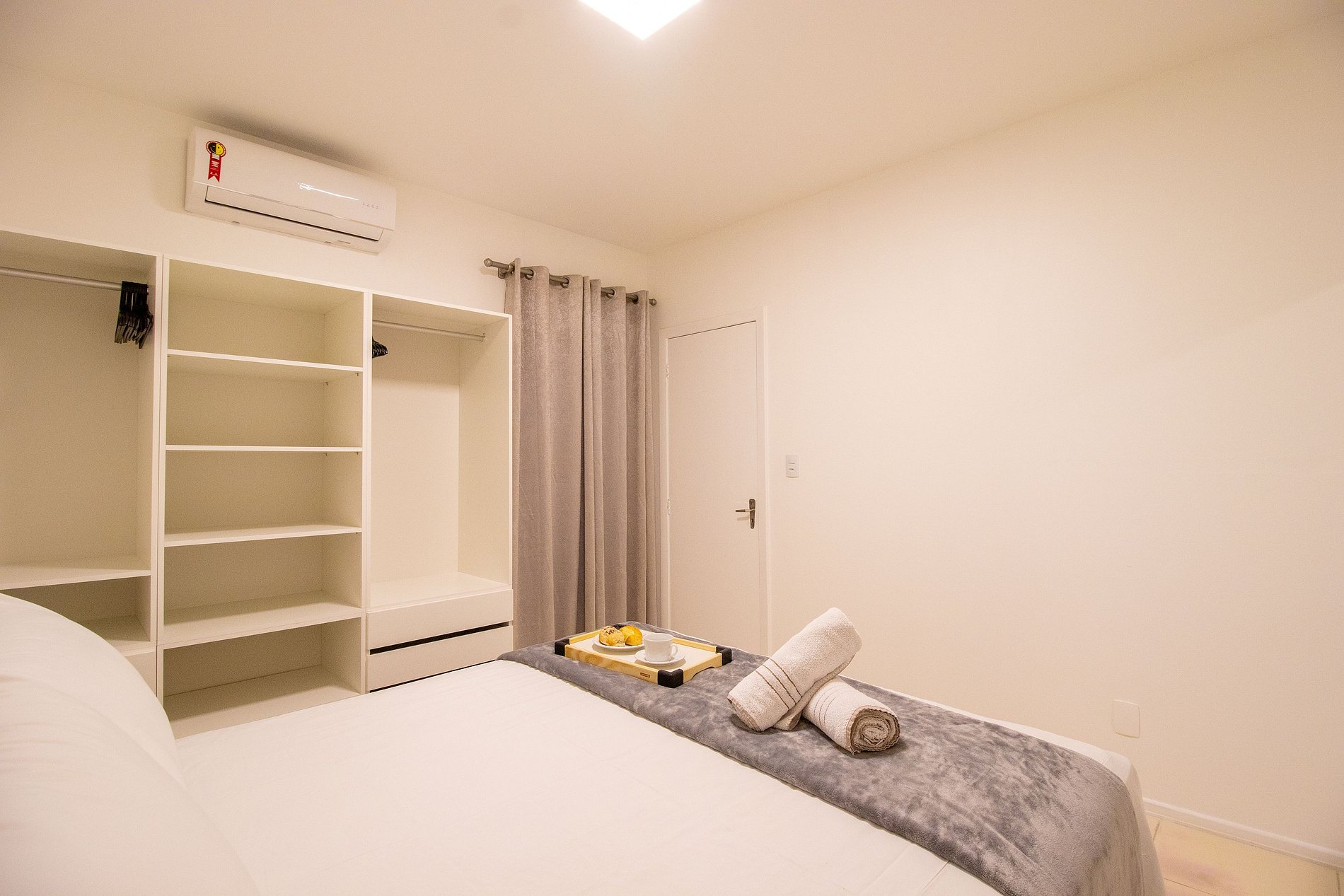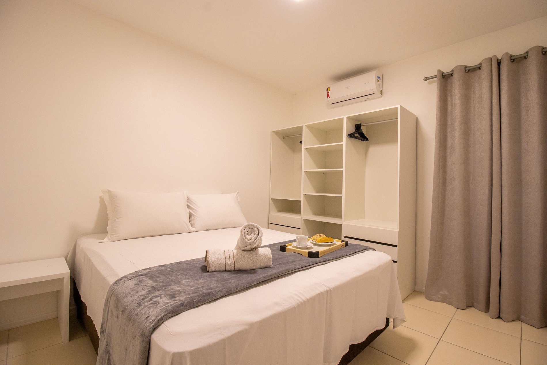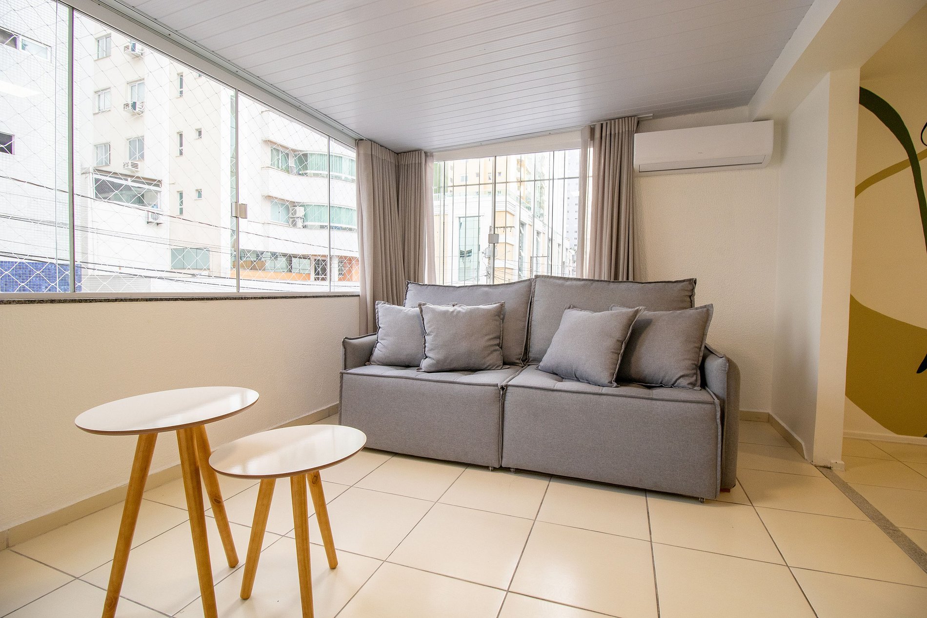 O espaço possui três ares condicionados split, sendo um em cada dormitório e um na sala.
