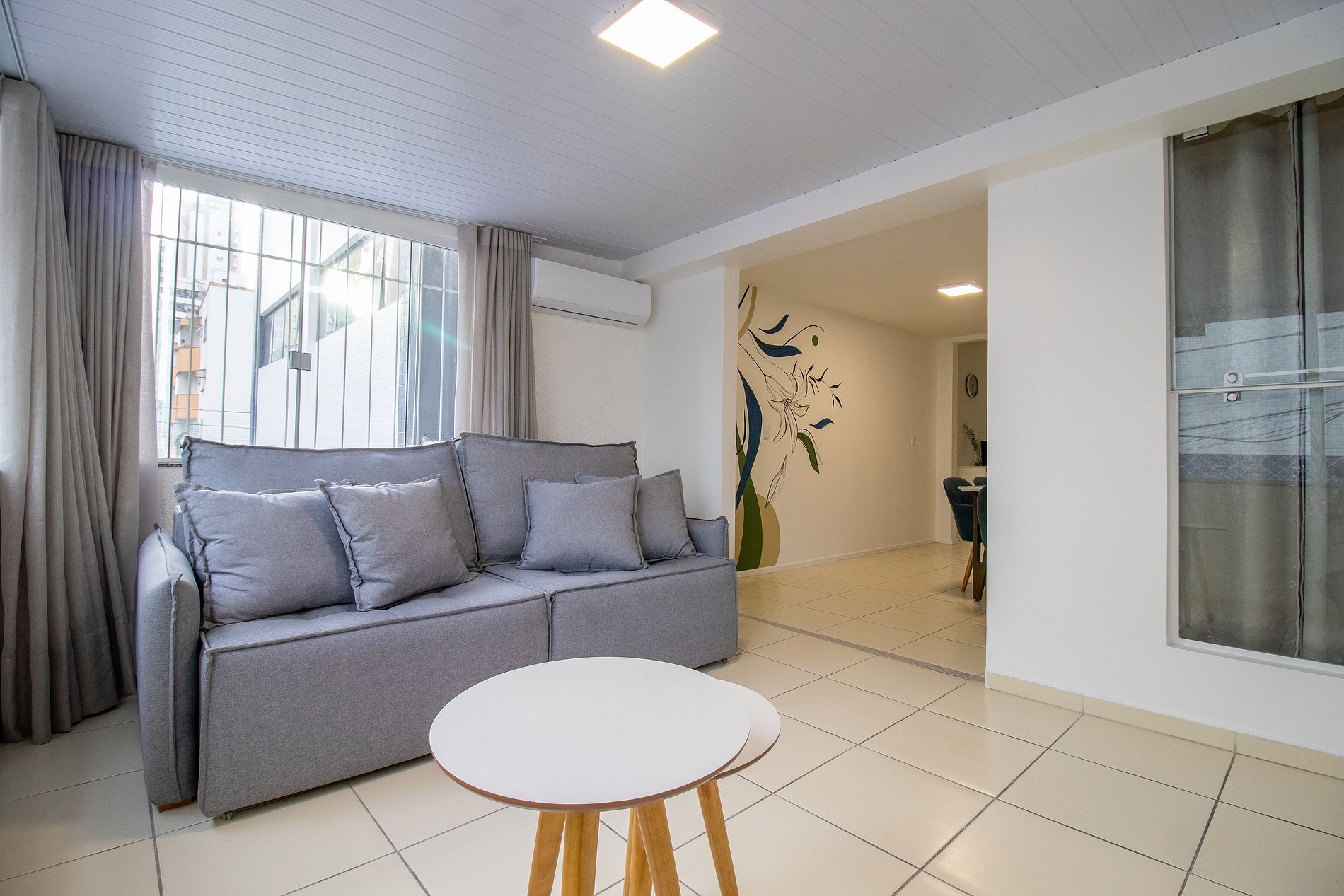 Venha para Balneário Camboriú e hospede-se nesse espaço localizado na região central da cidade. O apartamento possui uma dois dormitórios com cama queen, ambos possuem ar condicionado. Sala climatizada, TV Smart e sofá. Cozinha equipada com utensílios para o preparo de refeições básicas, liquidificador, sanduicheira, cafeteira, máquina de lavar, ferro de passar roupa e secador de cabelo.