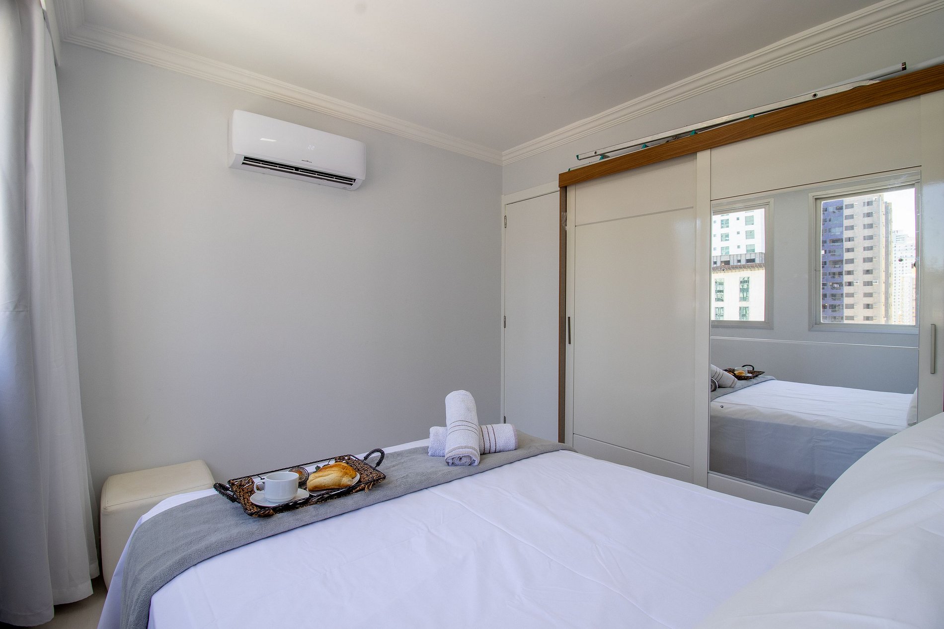 Desfrute da localização privilegiada à beira-mar, a apenas alguns passos da areia, na Barra Norte próximo da Roda Gigante, Mole da Barra Norte e Rua Torta. Este apartamento inclui uma vaga de garagem que acomoda até camionete. Com uma suíte e dois quartos climatizados e sala com TV Smart. Aproveite o melhor de Balneário Camboriú!