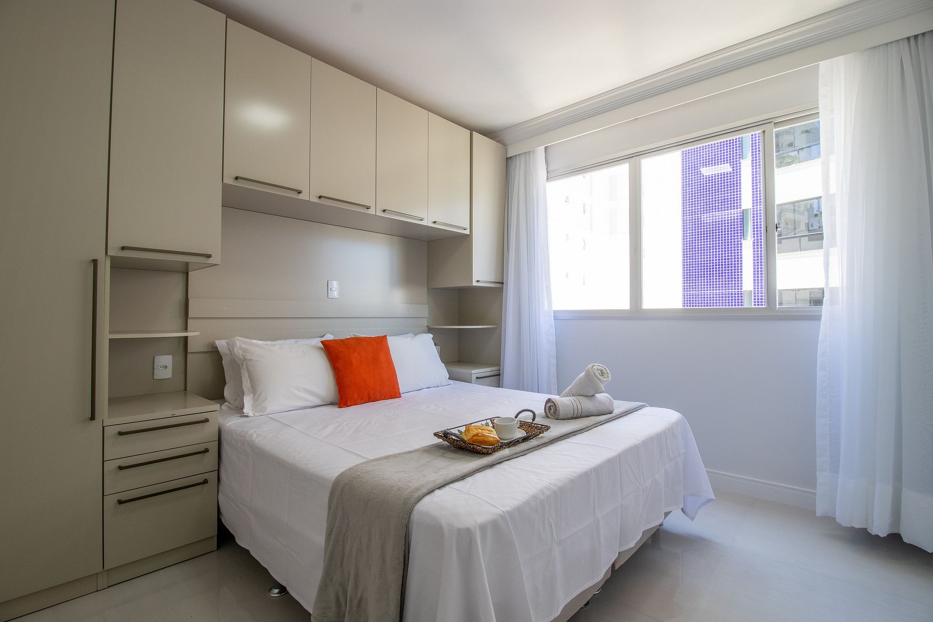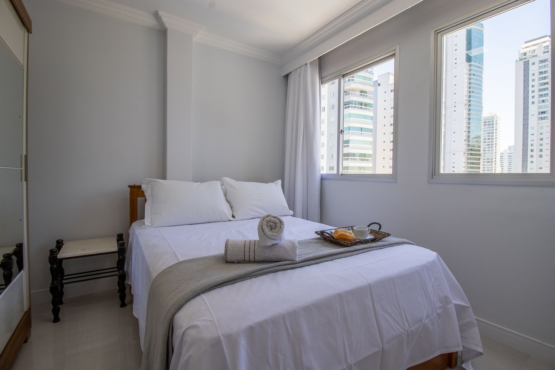 Esse aconchegante apartamento fica no Edifício Alfa Centauro, localizado na rua mil novecentos e um, número cento e trinta e seis. Apenas um minuto caminhando até a areia da praia, dez minutinhos caminhando até o Mole da Barra Norte, onze minutinhos até a Roda Gigante e doze minutinhos até a charmosa rua Torta.