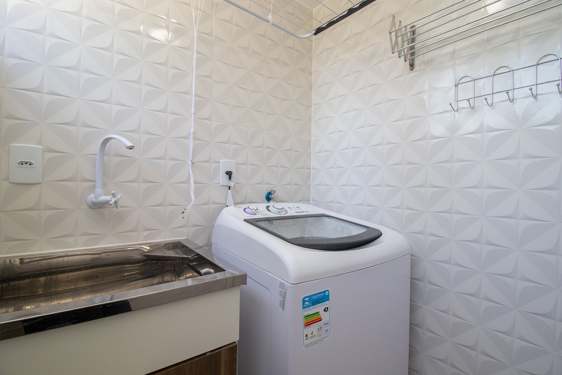 A cozinha é bem equipada com utensílios para o preparo de refeições básicas, sanduicheira, cafeteira, liquidificador e microondas. E a lavanderia com máquina de lavar, ferro de passar e secador de cabelos. Fornecemos roupa de cama, uma toalha de banho por hóspede e uma manta de microfibra para cada cama, garantindo praticidade e conforto durante sua estadia.