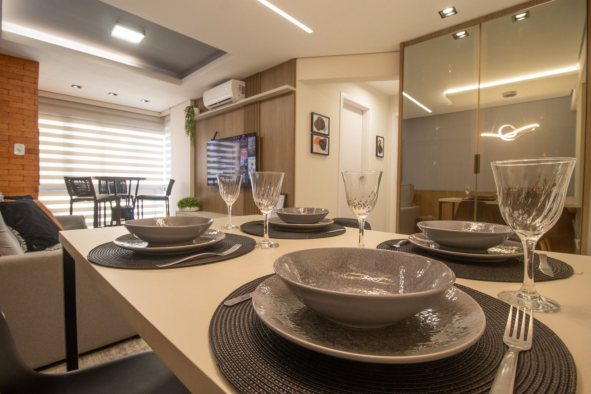 Mantenha-se conectado com nossa internet Wi-Fi de qualidade e própria do apartamento. Conta com uma TV Smart na sala.