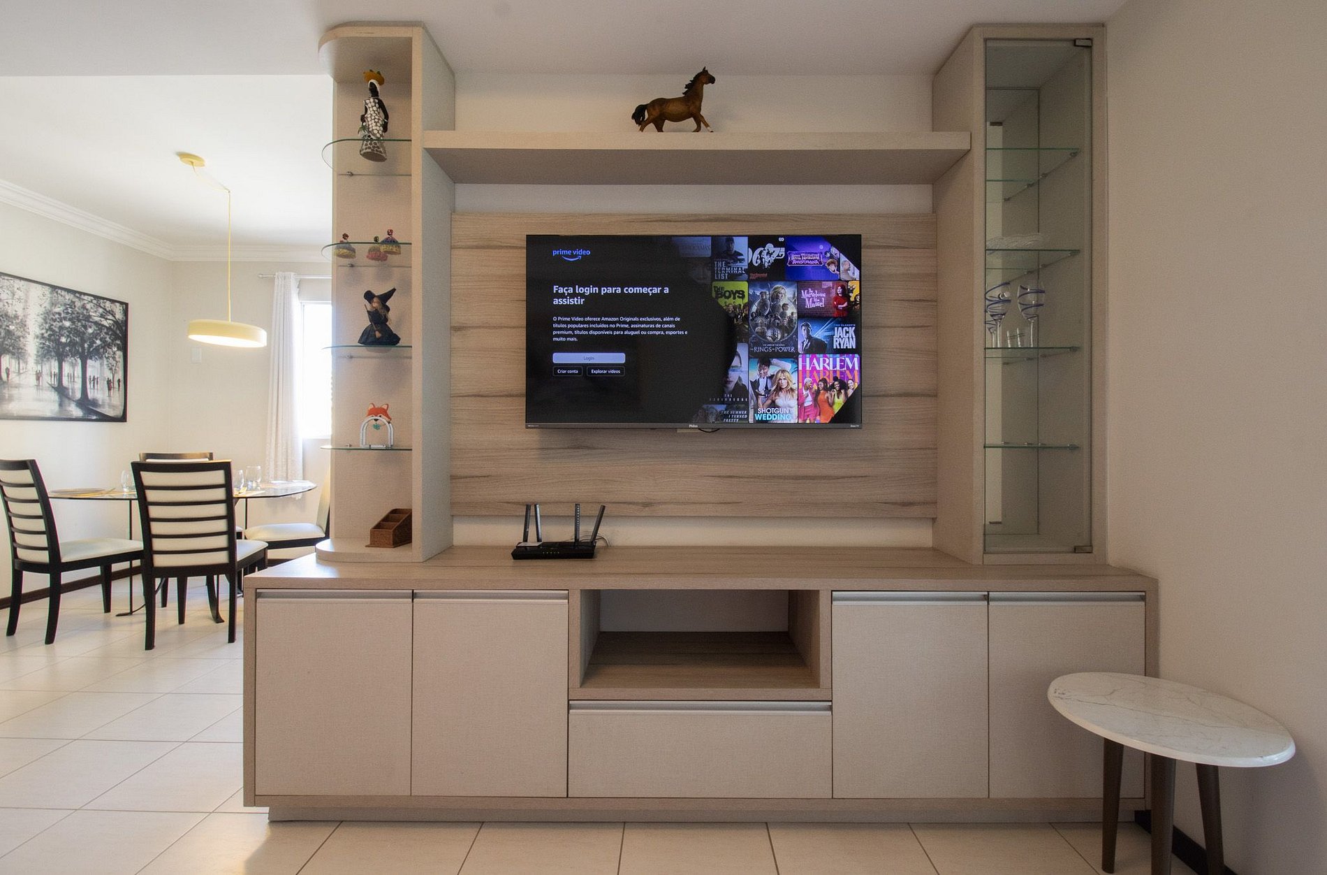 Possui internet própria do espaço e de boa qualidade. Há duas Smart Tv, sendo uma na sala de estar e a outra na suíte.