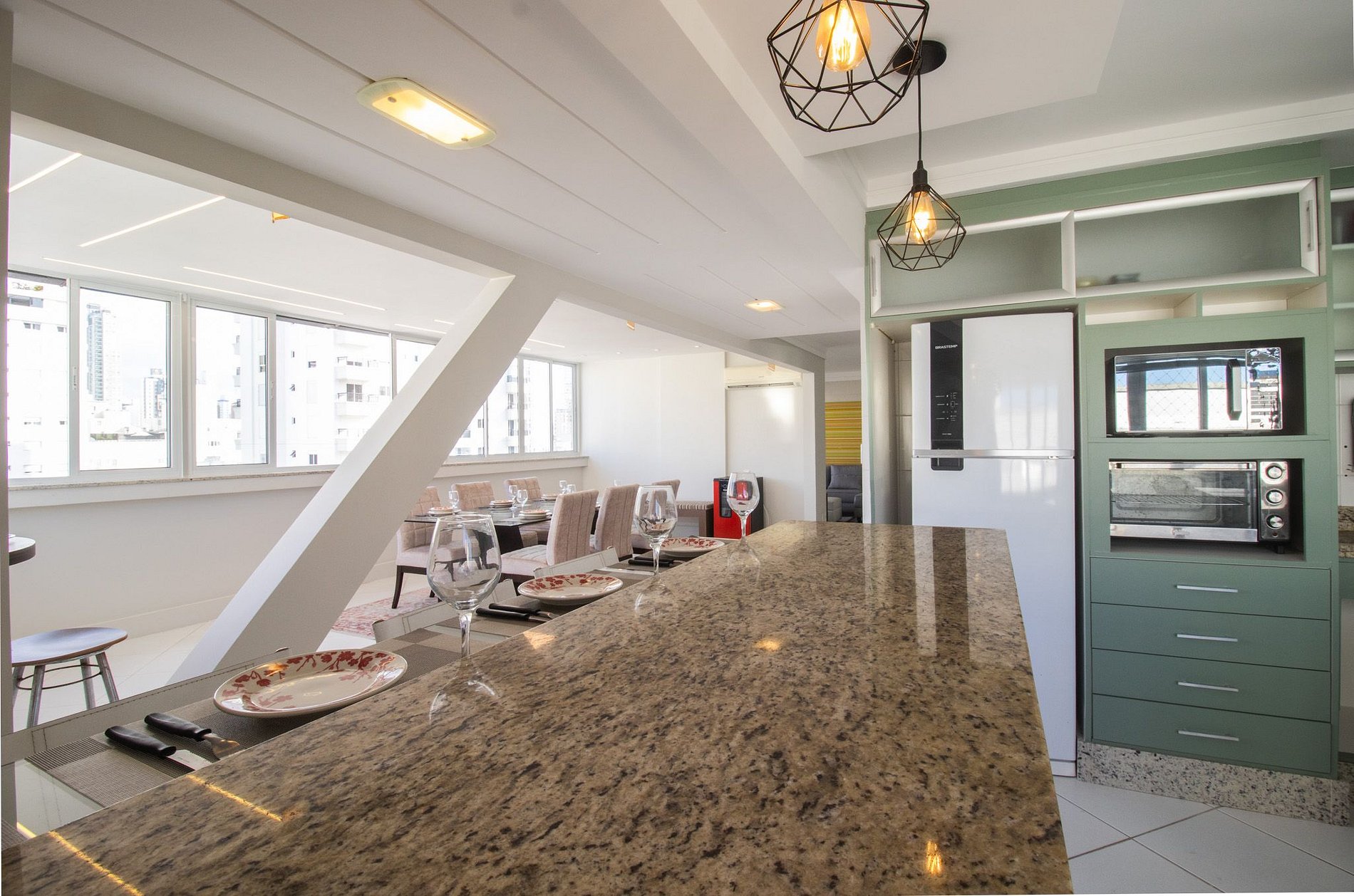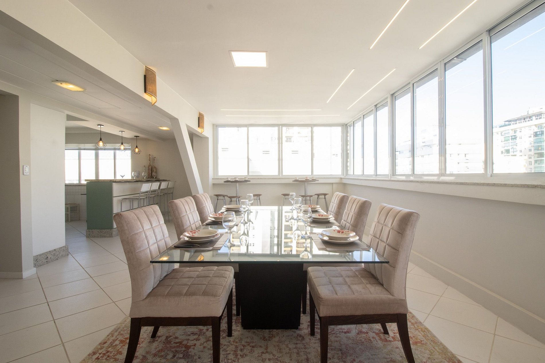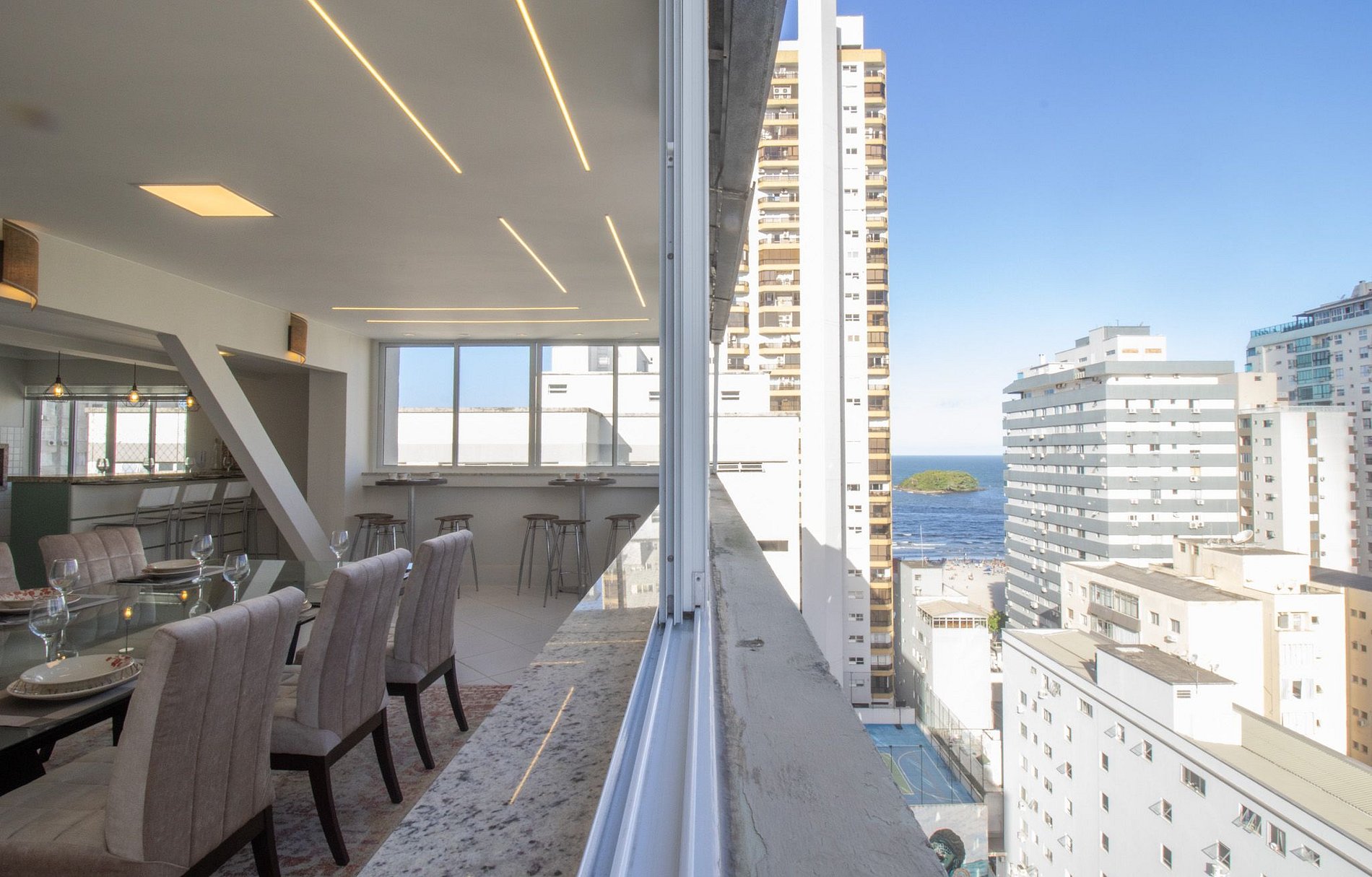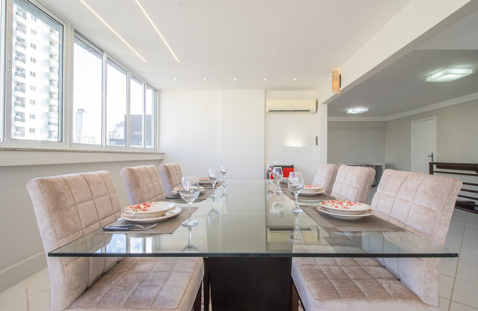 Este belo espaço é uma cobertura duplex na quadra do mar, ideal para famílias e grupos que buscam conforto e amplitude.