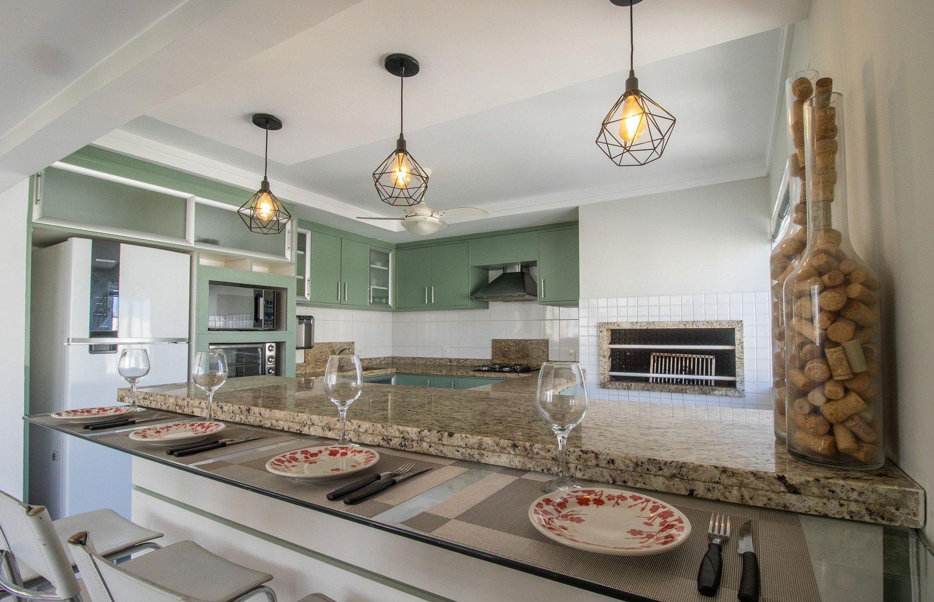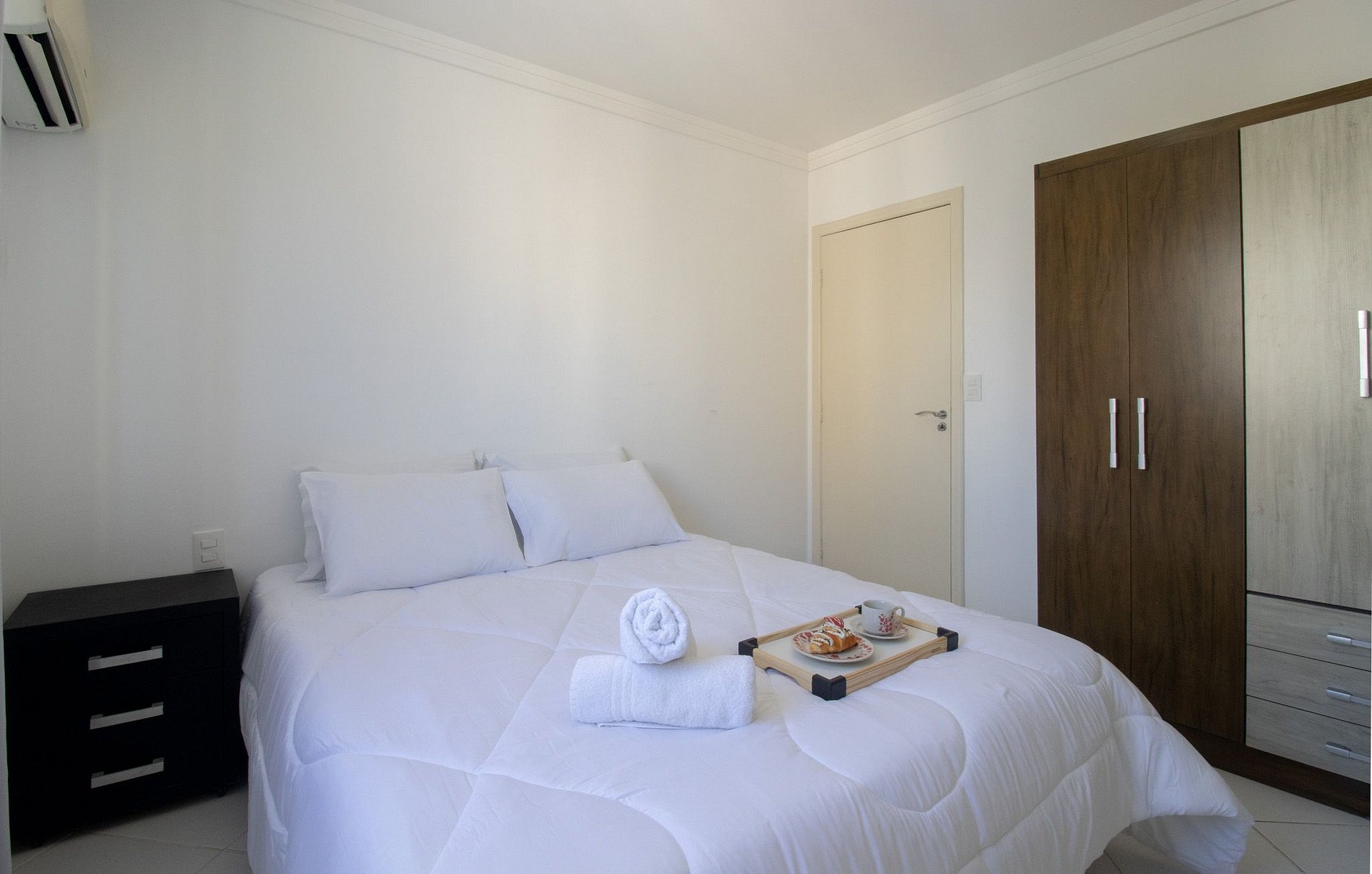 No primeiro andar, o apartamento dispõe de uma sala de estar com Smart TV, área de serviço e cinco dormitórios (sendo duas suítes, uma das suítes é um quarto menor após a área de serviço). Ao todo, as acomodações incluem duas camas queen, duas camas de casal, duas camas de solteiro e um colchão de viúva extra. A área de serviço conta com máquina de lavar roupas e varal de teto. No segundo andar, há uma aconchegante sala de estar com Smart TV, sala de jantar com mesa para seis pessoas e uma cozinha completa integrada à churrasqueira a carvão. A cozinha está equipada com cafeteira elétrica, sanduicheira, liquidificador, forno, fogão, micro-ondas e filtro de água, oferecendo tudo o que você precisa para preparar deliciosas refeições. O imóvel também dispõe de ferro de passar e secador de cabelo para maior comodidade. São quatro banheiros no total, todos com chuveiros a gás. Disponibilizamos roupa de cama básica (lençol com elástico, sobrelençol e travesseiros com fronha) e uma toalha de banho por hóspede. Para maior conforto, fornecemos um edredom para cada cama de casal/queen e uma manta de microfibra para as camas de solteiro e para colchão de casal avulso.