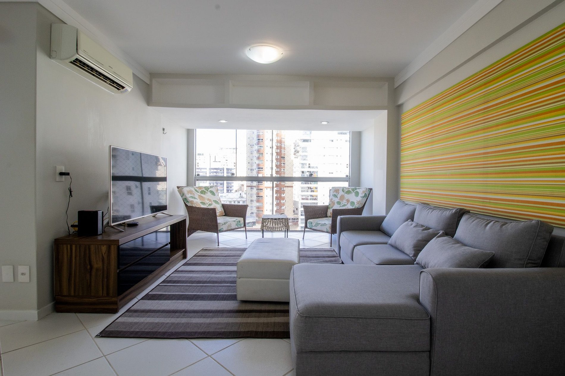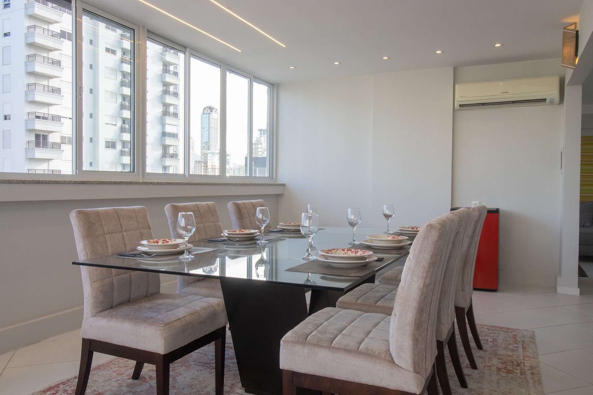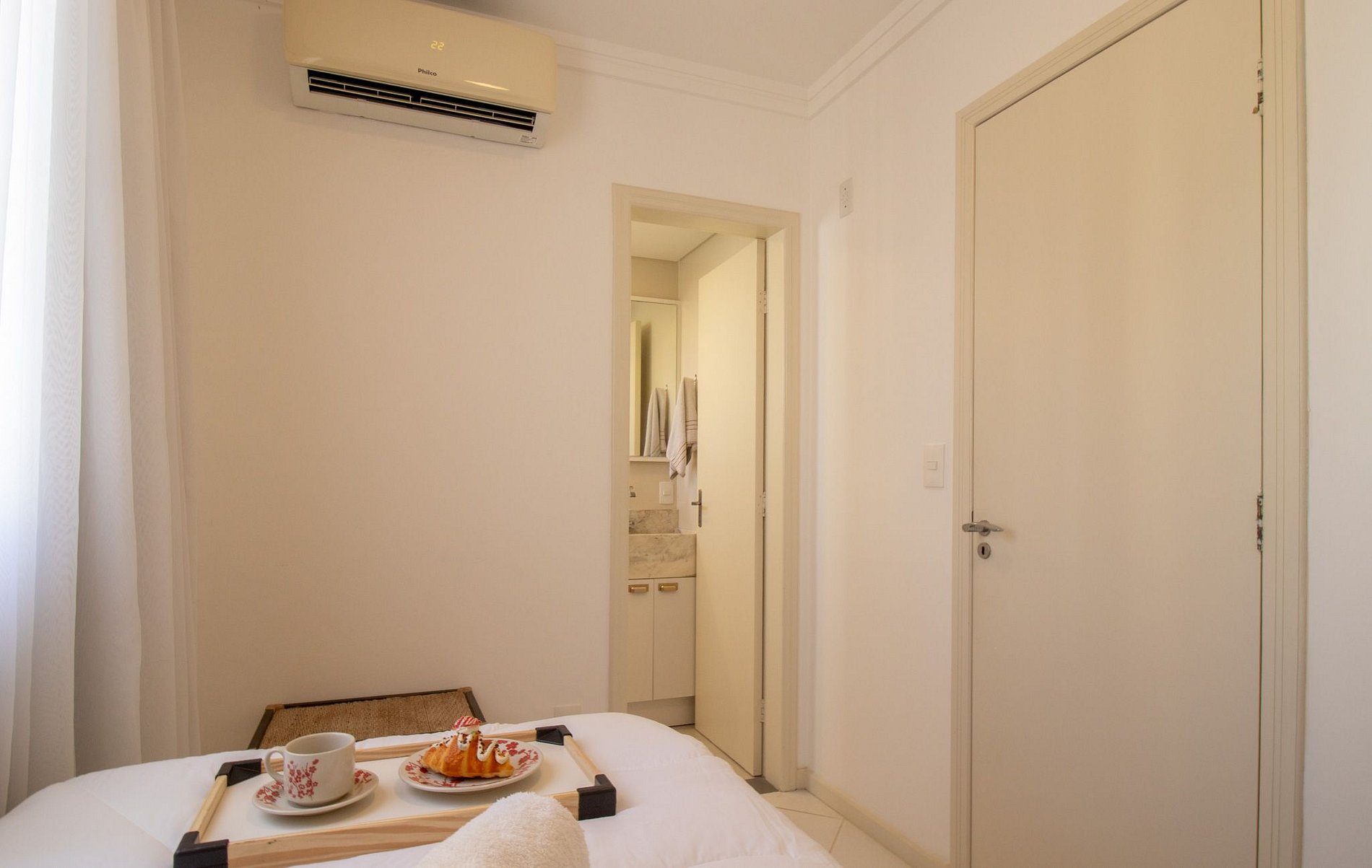 O apartamento conta com seis aparelhos de ar-condicionado split que funcionam na função quente/frio. Quatro estão instalados nos dormitórios (um dos dormitórios possui apenas um ventilador de mesa), e os outros dois ficam no segundo andar, na sala de estar e na sala de jantar.