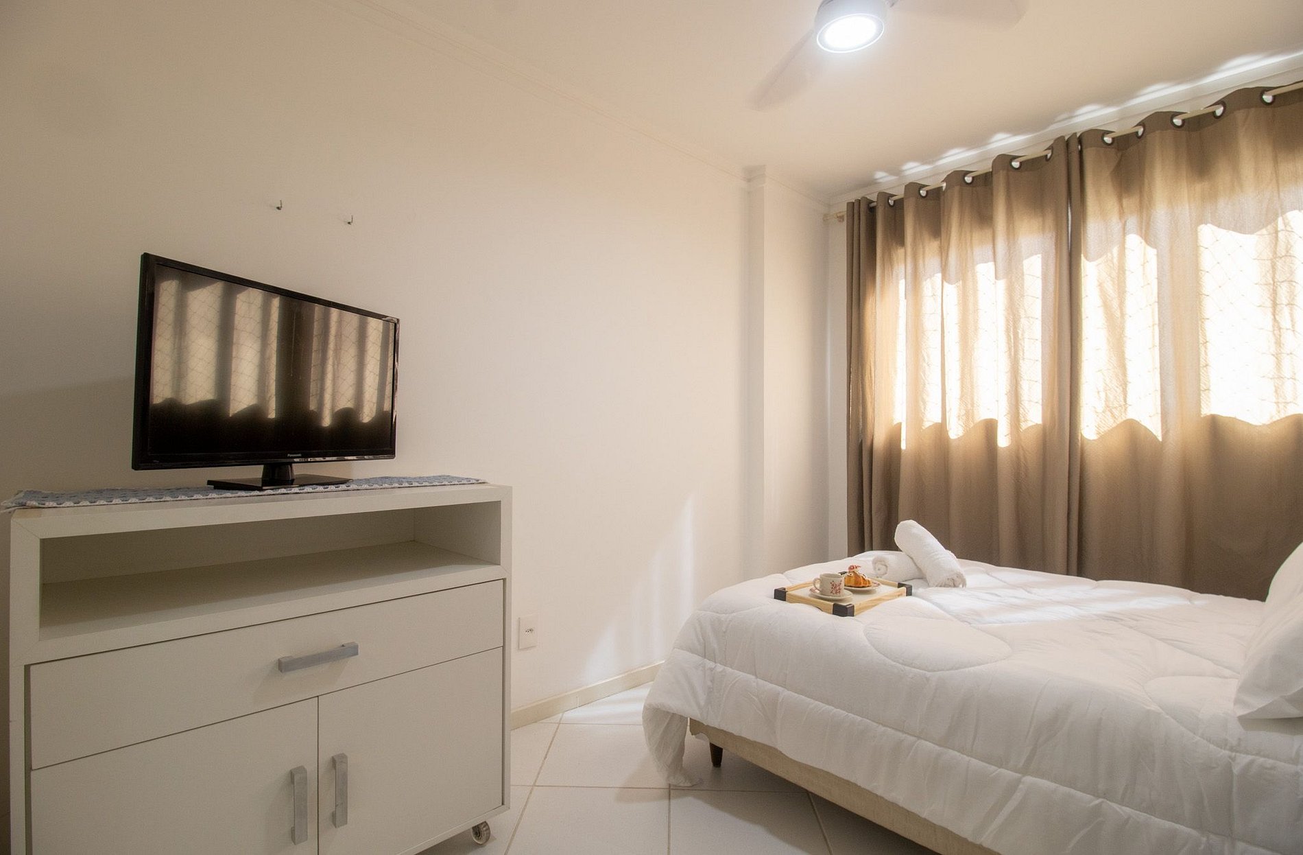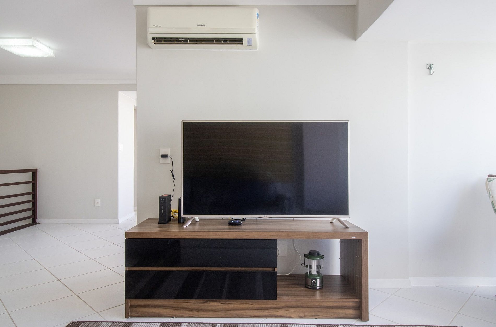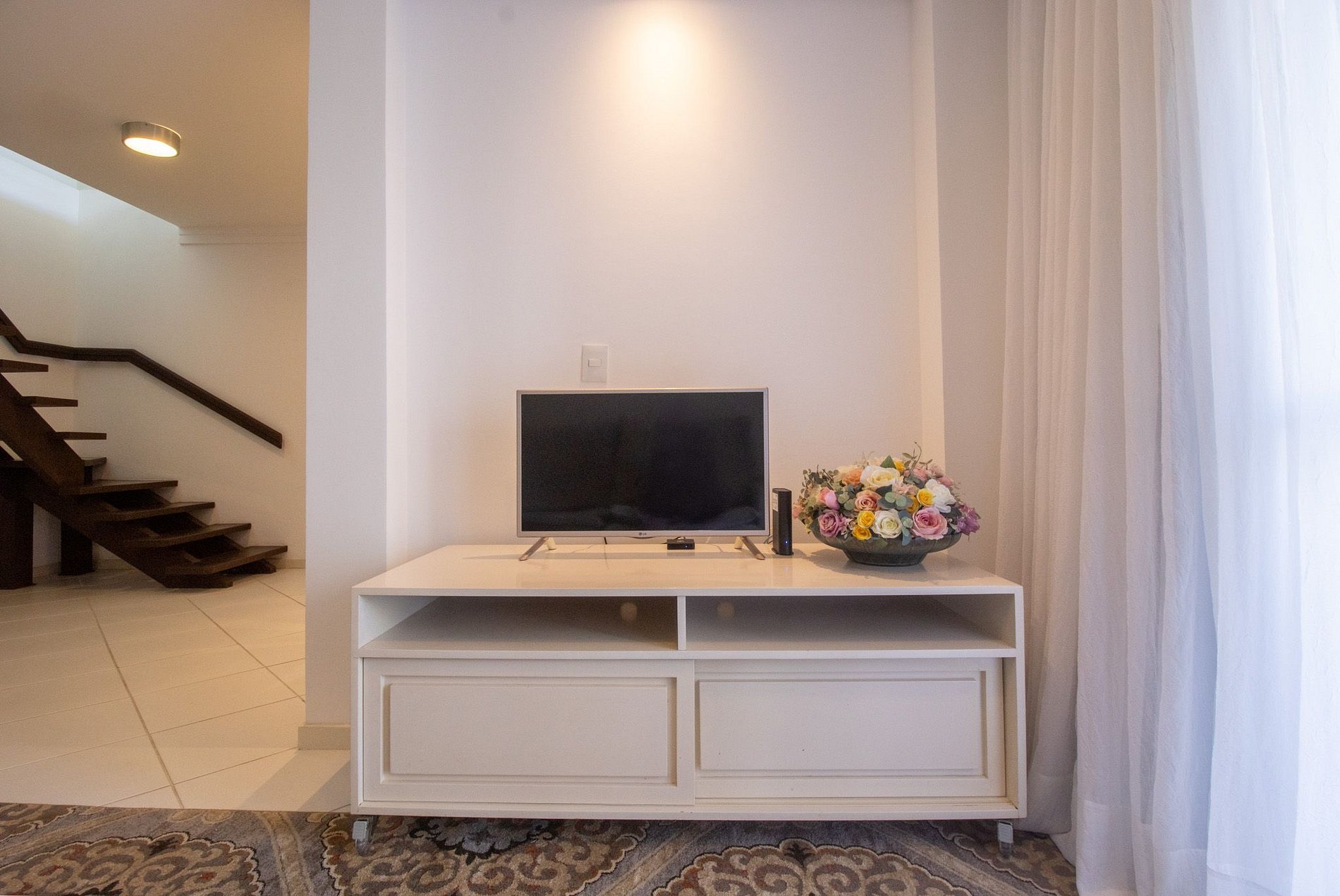 O espaço dispõe de internet Wi-Fi exclusiva do apartamento. São quatro televisões no total: duas Smart TVs nas salas de estar do primeiro e do segundo andar, e as outras duas TVs localizadas em dois dormitórios que possuem acesso aos canais abertos.