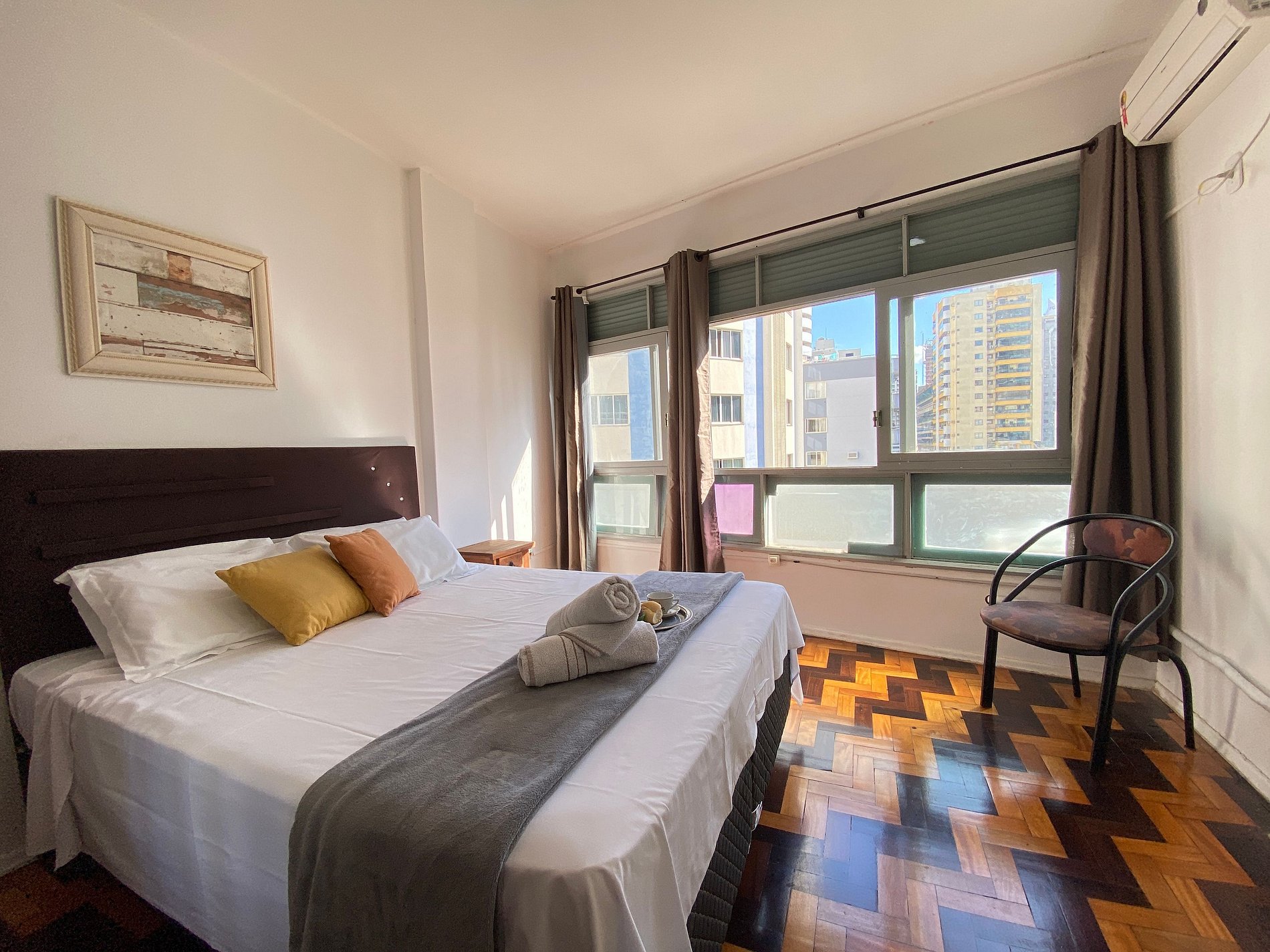 Venha para Balneário Camboriú com sua família e amigos e hospede-se nesse apartamento único na esquina icônica da Avenida Brasil com a Avenida Central, em Balneário Camboriú. Com dois dormitórios climatizados, sala de dois ambientes, cozinha bem equipada e banheiro. Incluímos comodidades como máquina de lavar roupa, cafeteira, liquidificador, sanduicheira, ferro de passar e secador de cabelo.
