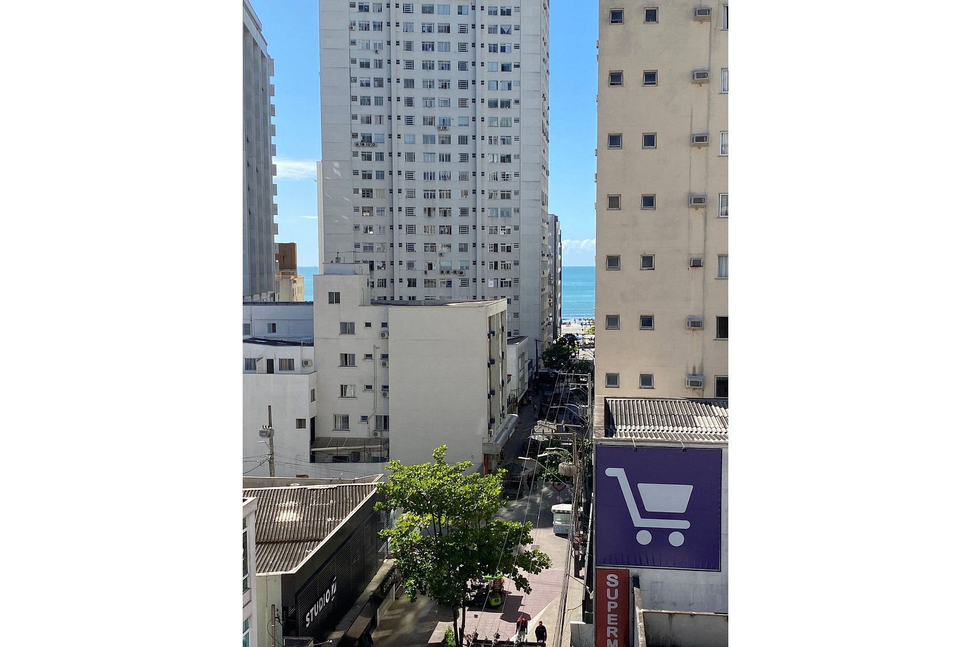 A Avenida Brasil esquina com a Avenida Central fica reta ao mar passando pelo Calçadão da Avenida Central. Esse espaço bem iluminado fica a menos de dois minutinhos caminhando até a areia da praia e cinco minutinhos caminhando até o Shopping Atlântico.
