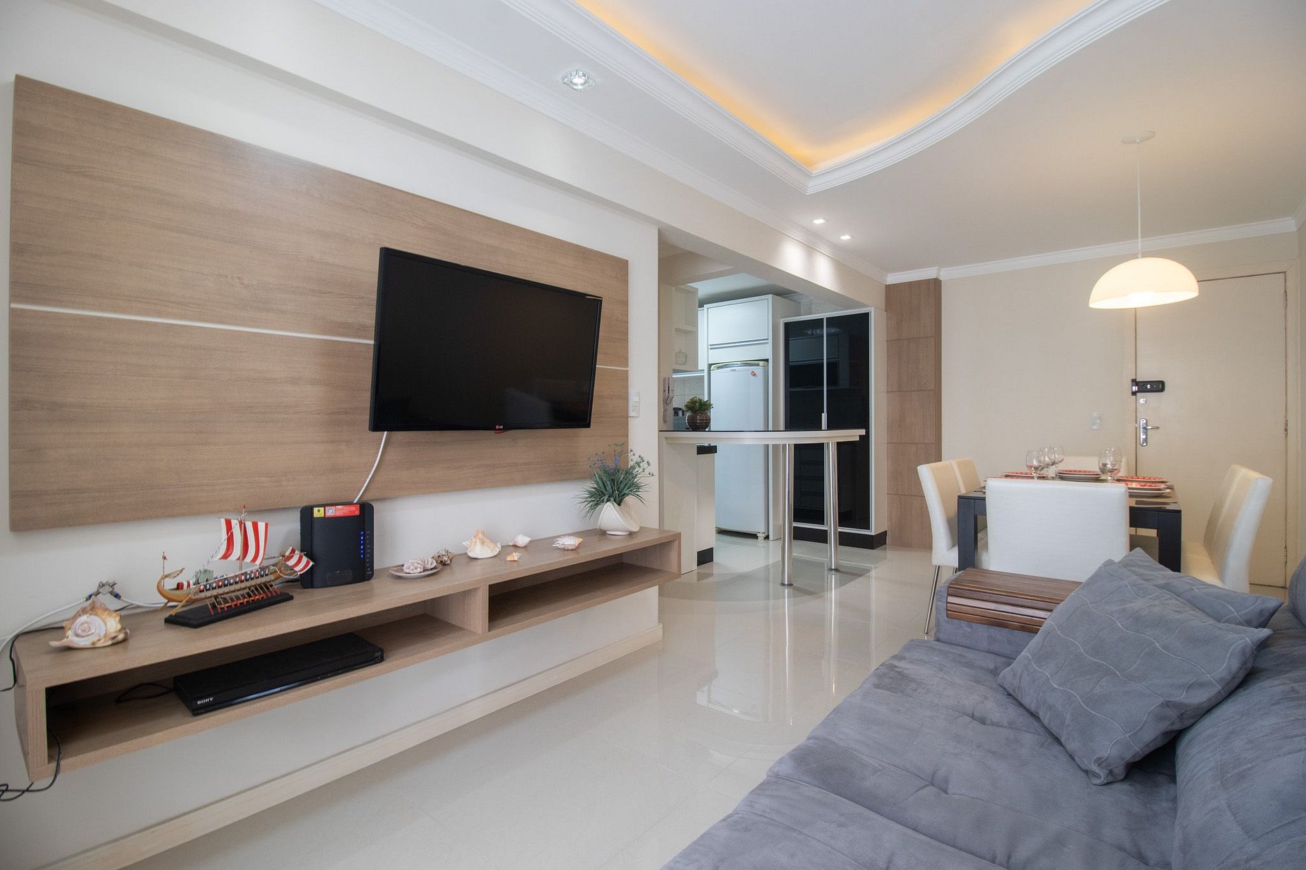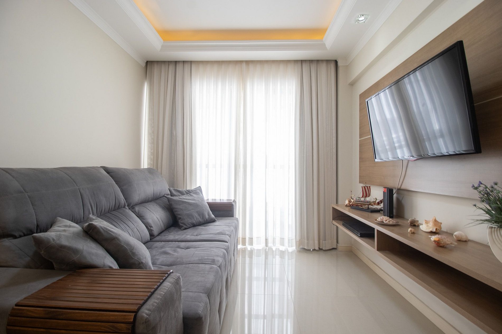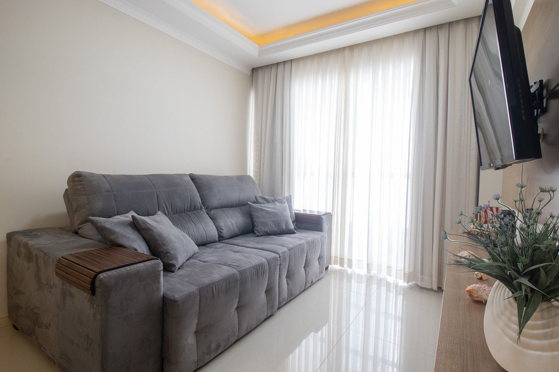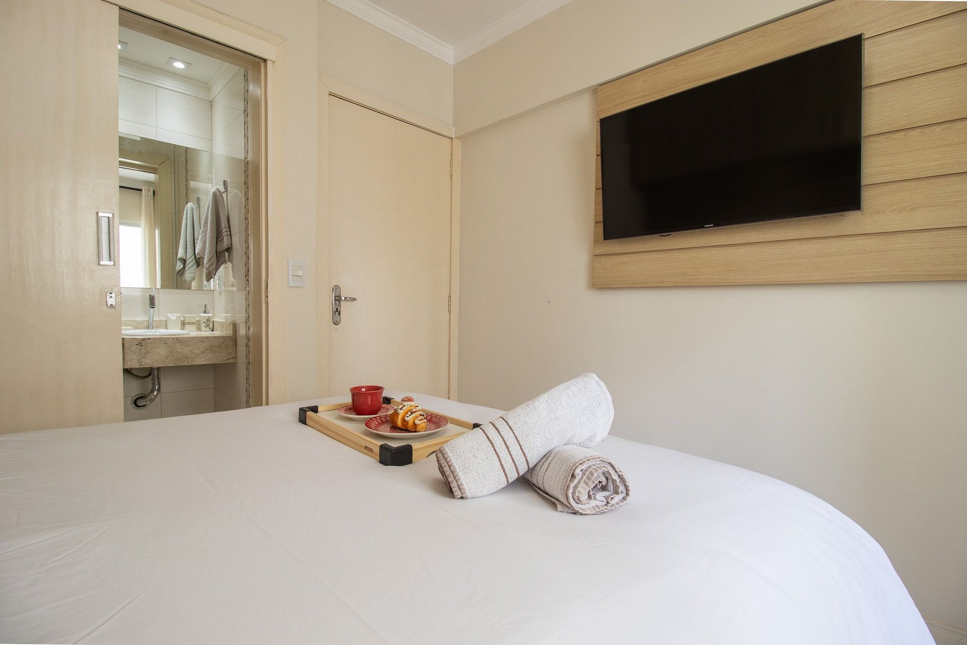 Oferecemos internet Wi-Fi de qualidade, exclusiva para o apartamento. Para seu entretenimento, há uma Smart TV na sala e outra TV na suíte.