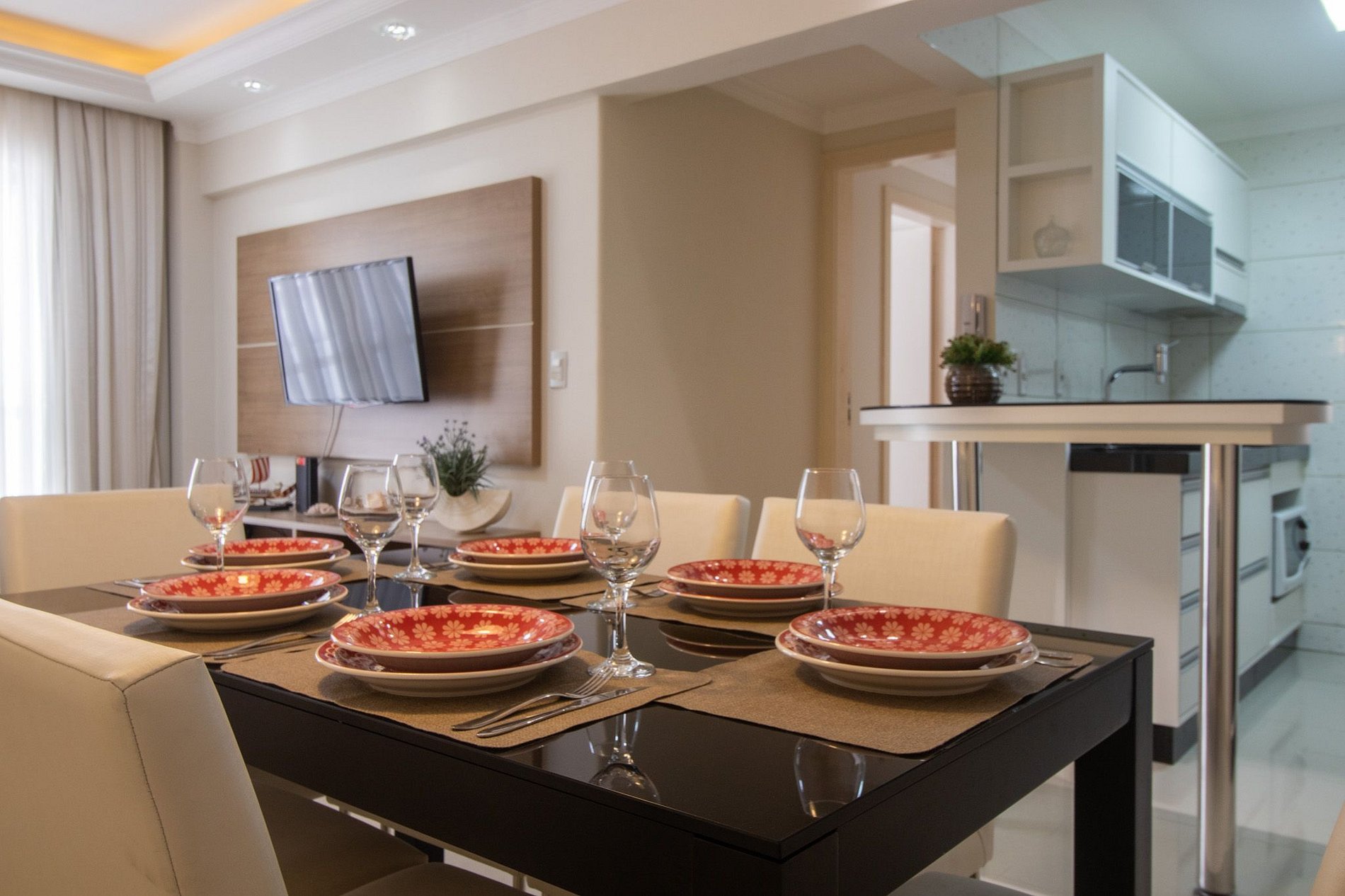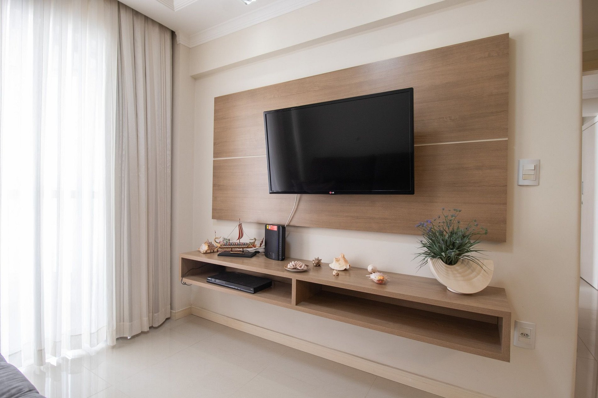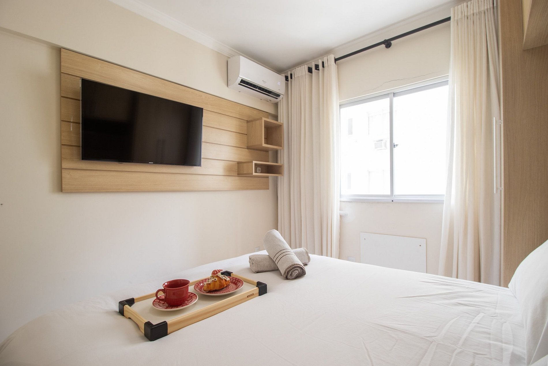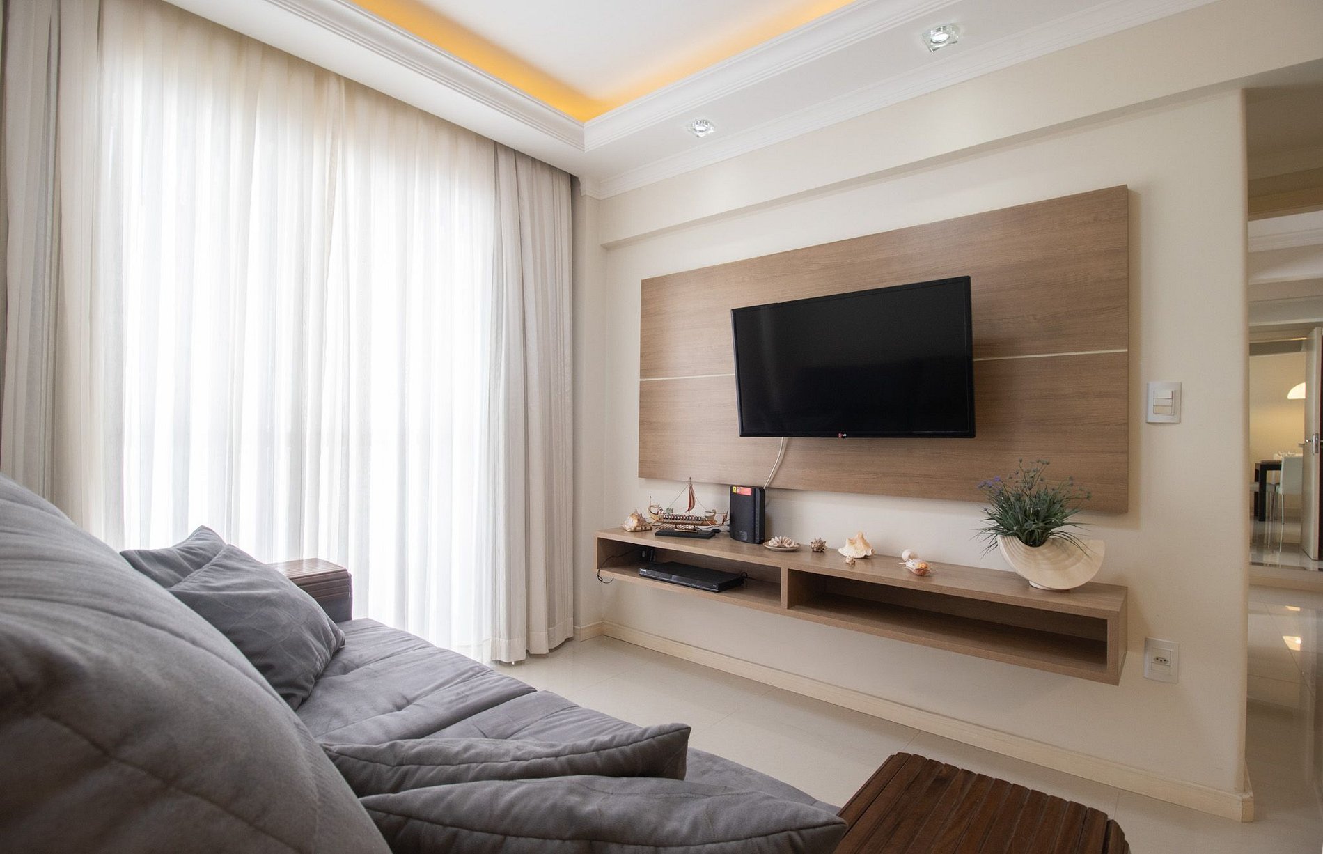 Oferecemos internet Wi-Fi de qualidade, exclusiva para o apartamento. Para seu entretenimento, há uma Smart TV na sala e outra TV na suíte.