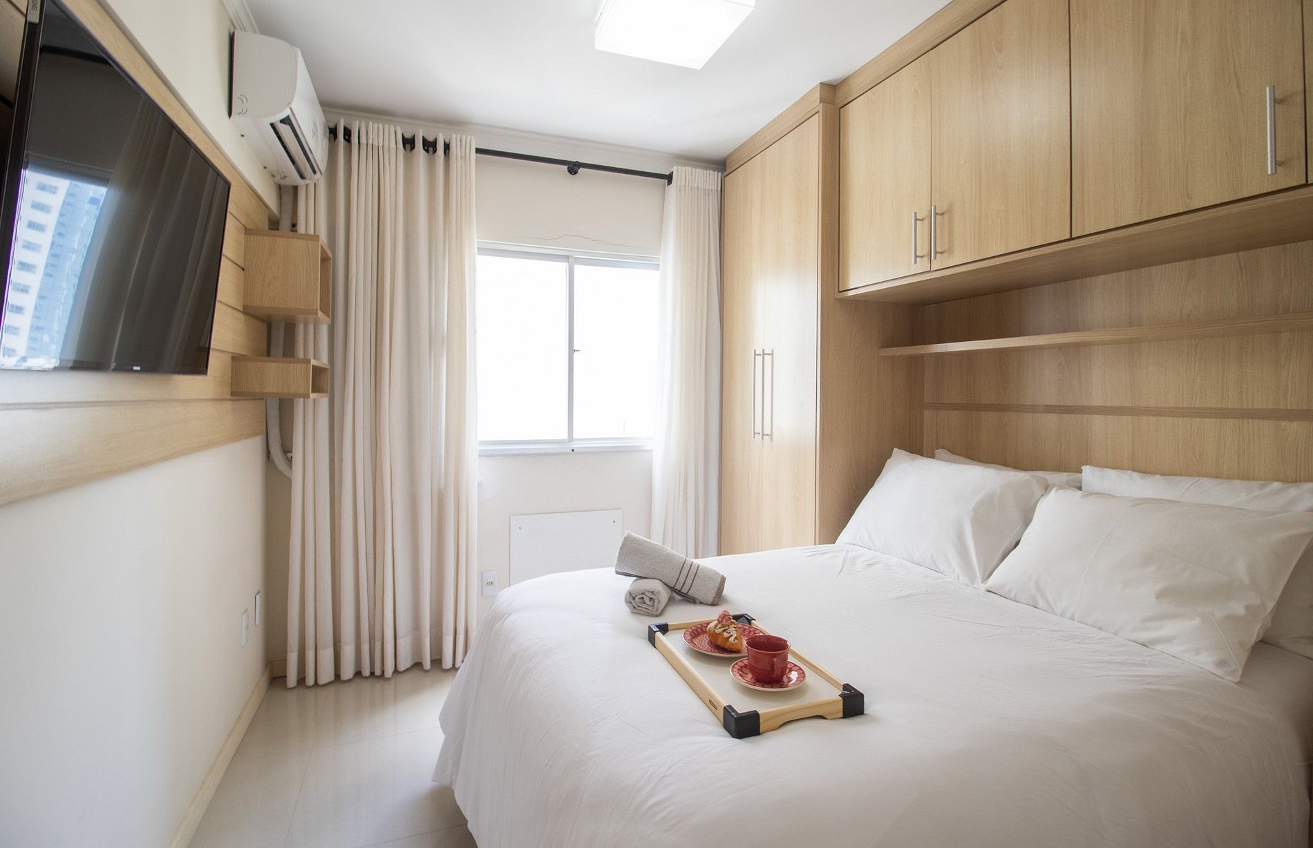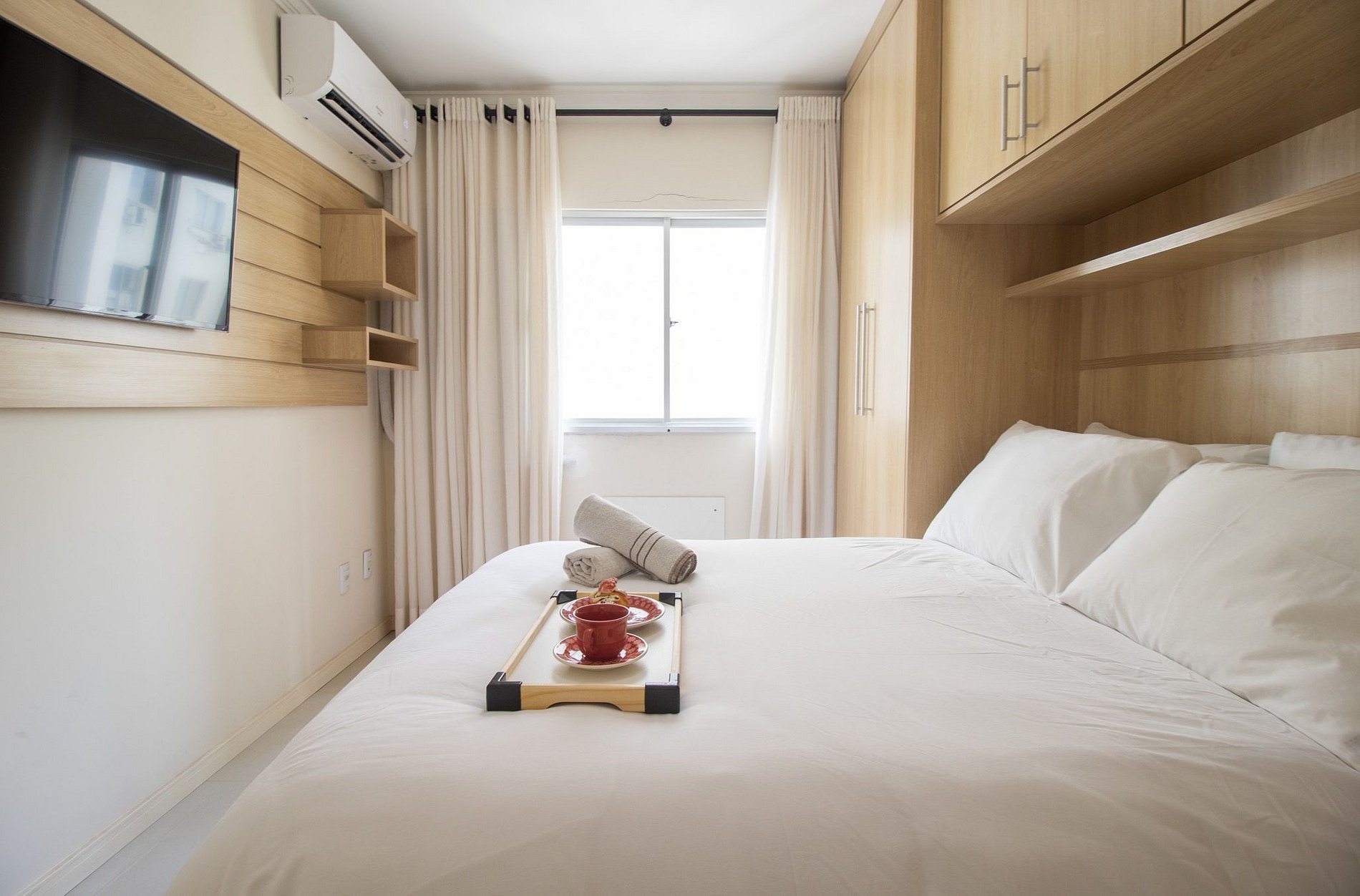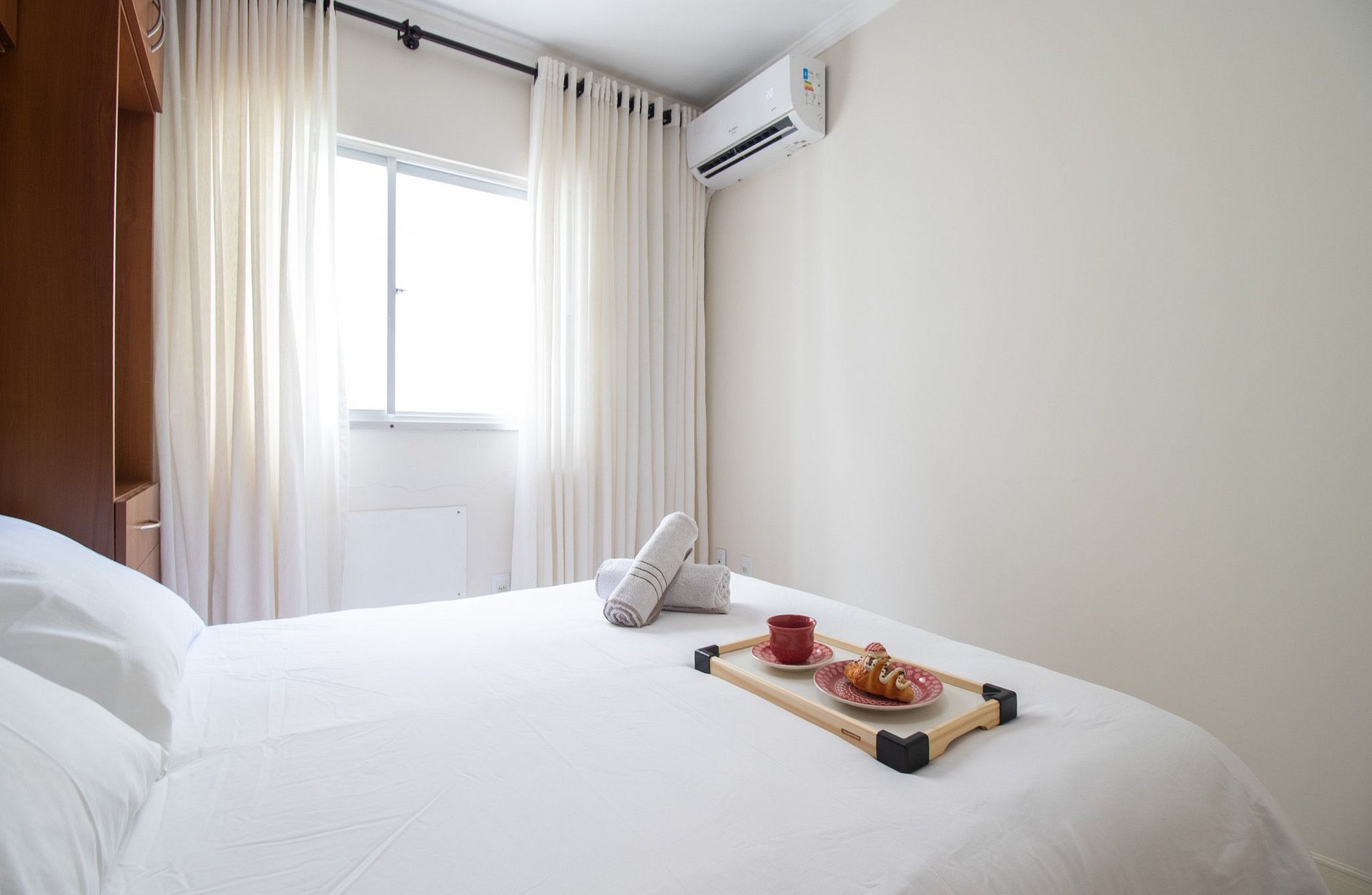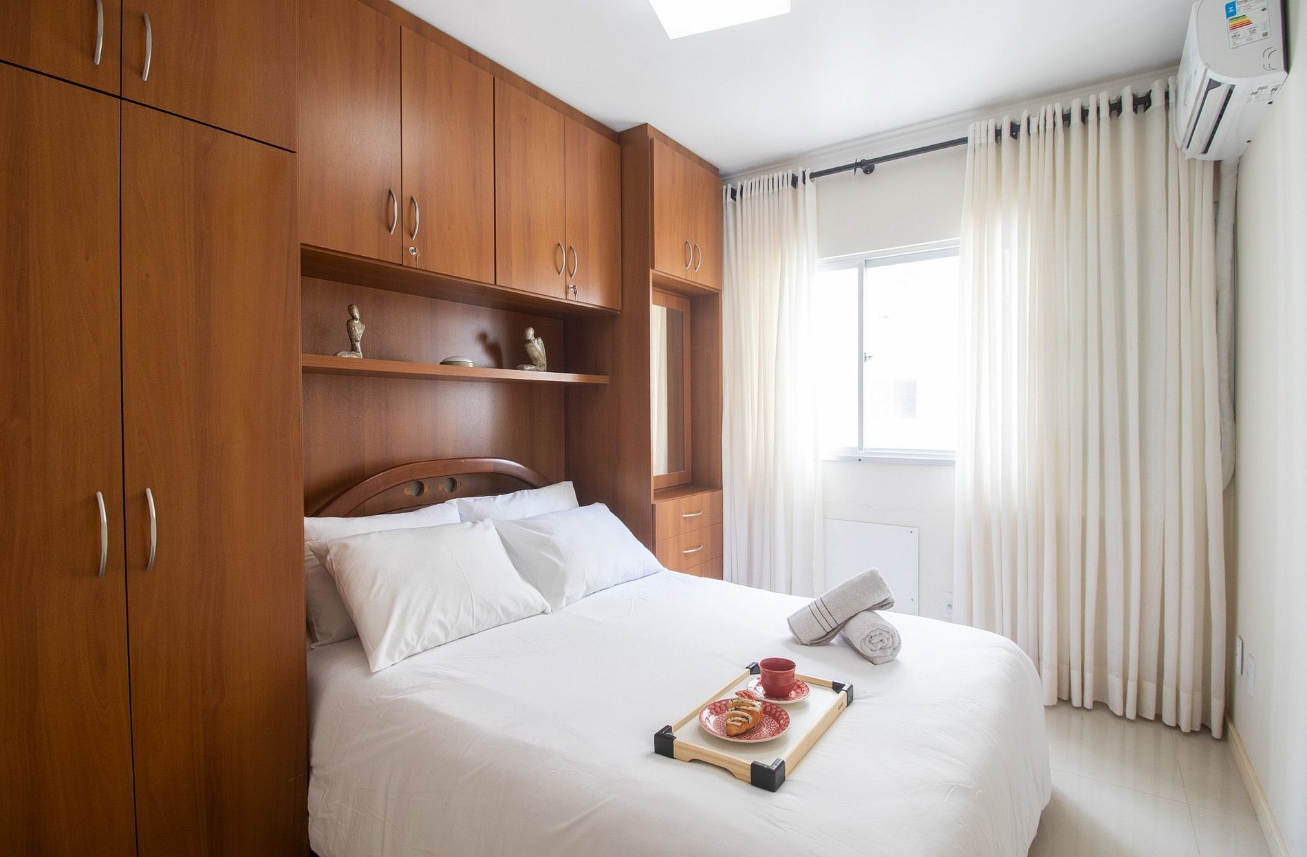 O apartamento conta com dois aparelhos de ar-condicionado split, sendo um em cada dormitório.