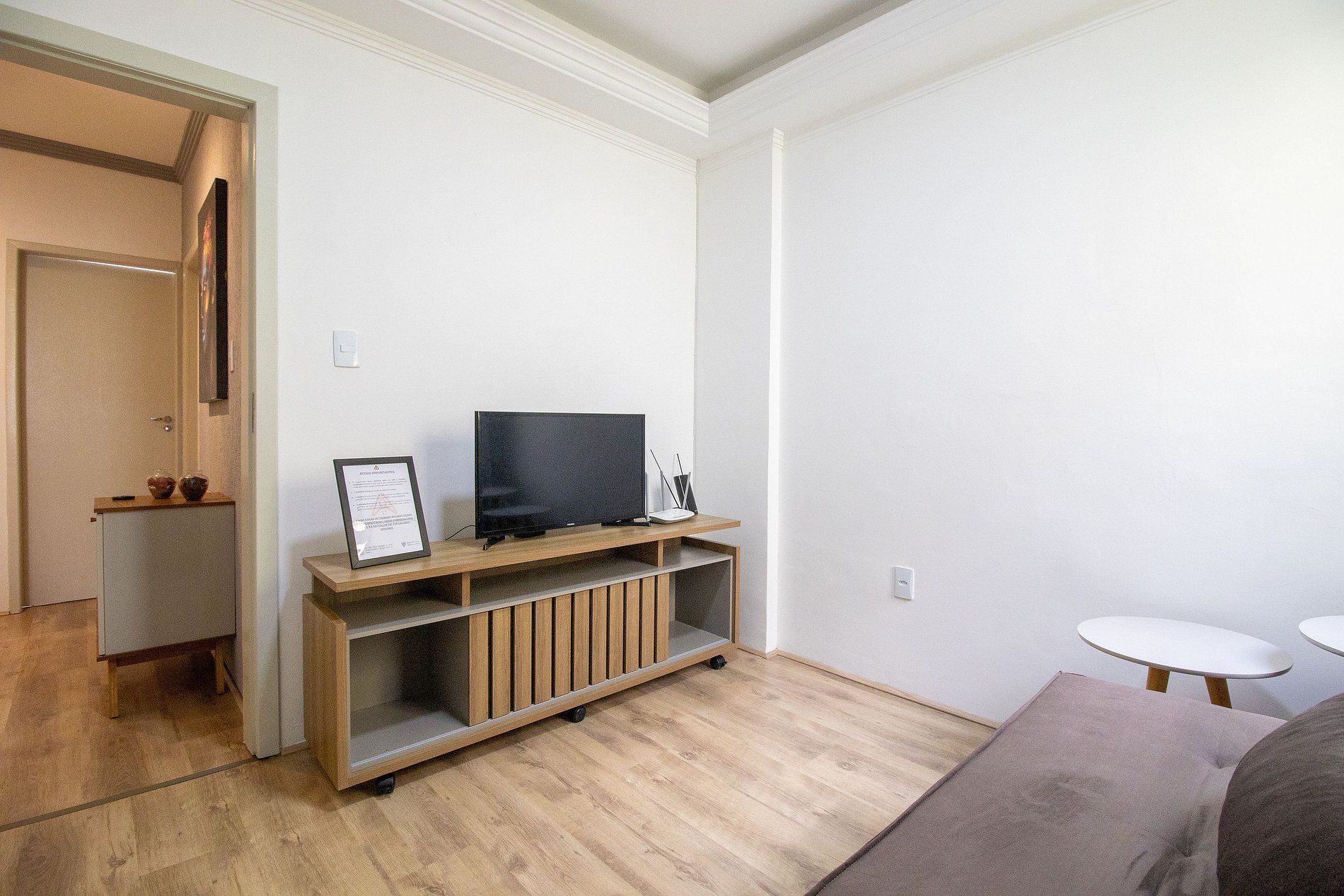 O espaço conta com internet wi-fi de 300mb própria do apartamento.. Podendo desfrutar de entretenimento com a TV Smart na sala.