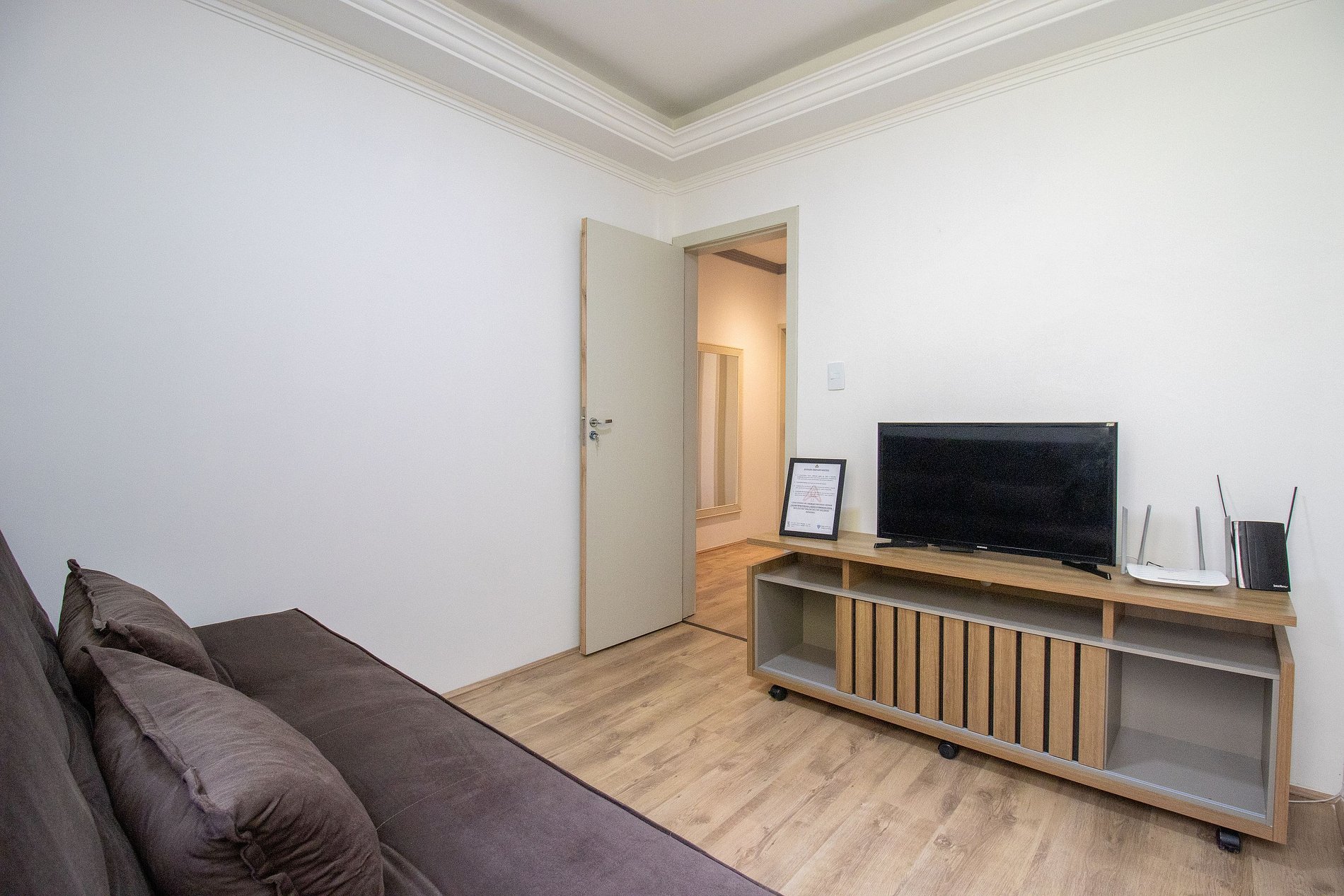 O espaço conta com internet wi-fi de 300mb própria do apartamento.. Podendo desfrutar de entretenimento com a TV Smart na sala.