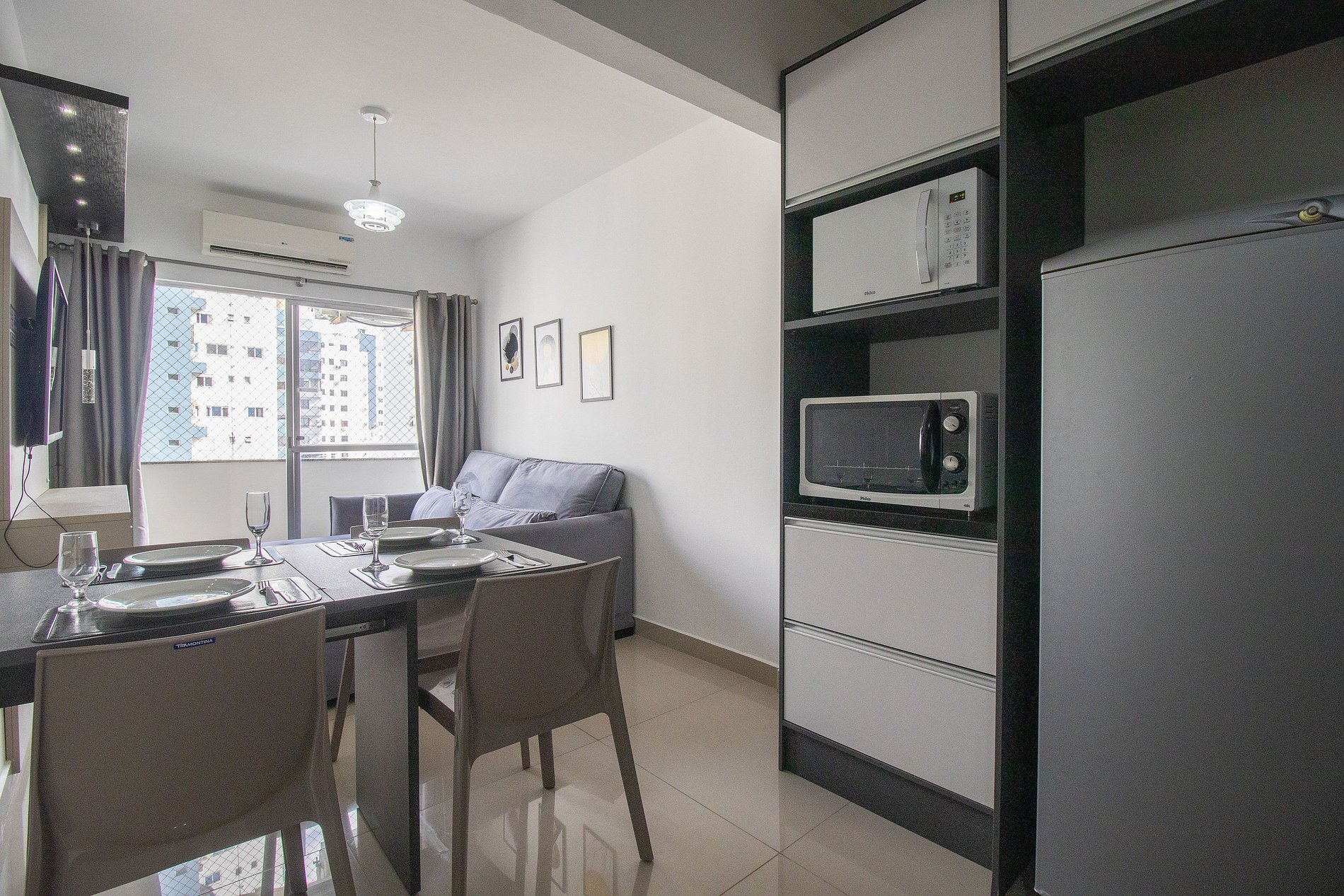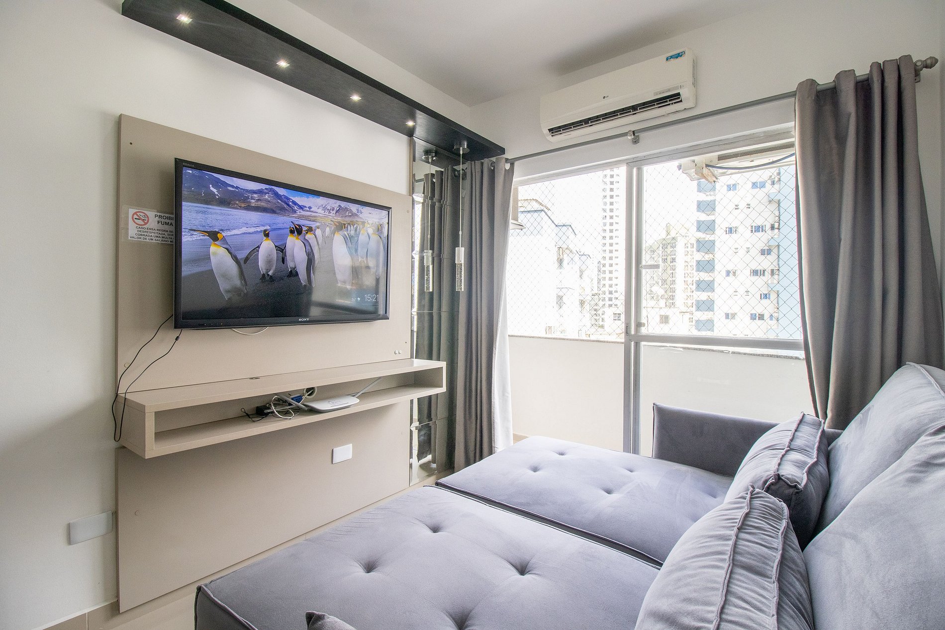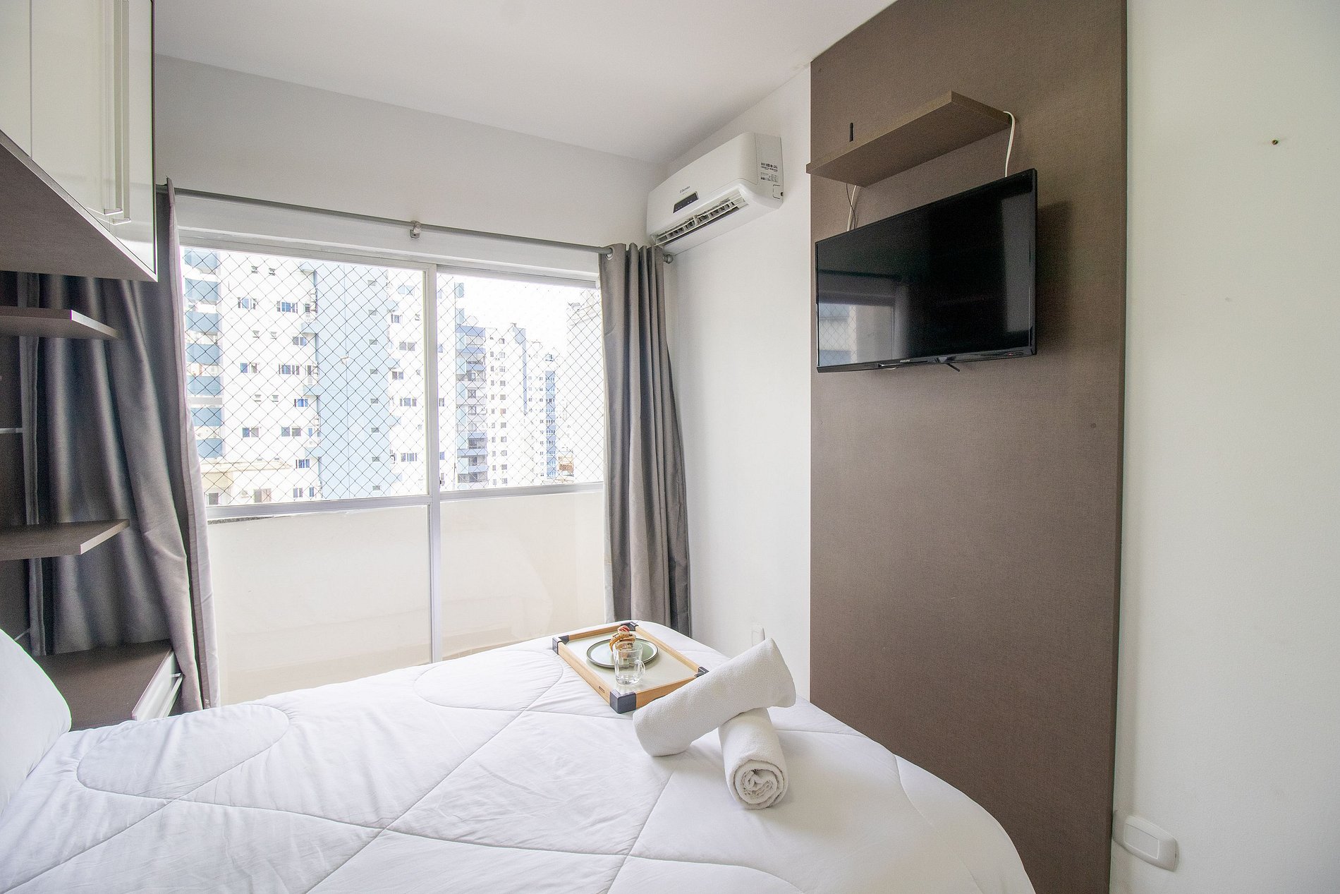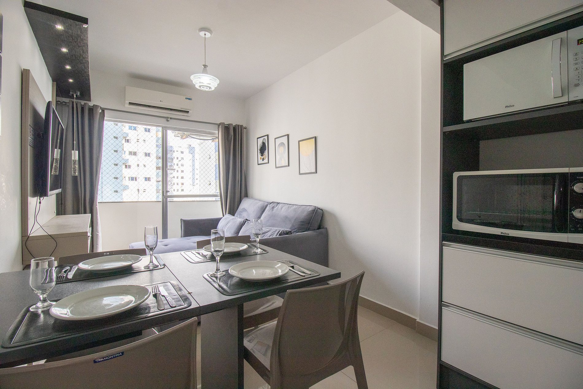 Explore Balneário Camboriú e se hospede nesse apartamento equipado e climatizado com ótima localização, próximo ao Shopping Atlântico. Sendo um dormitório com cama de casal, um colchão de solteiro avulso e um sofá cama. Ambos ambientes climatizados com ar condicionado split, Internet wifi, TV com Chromecast na sala, com uma vaga de garagem privativa.