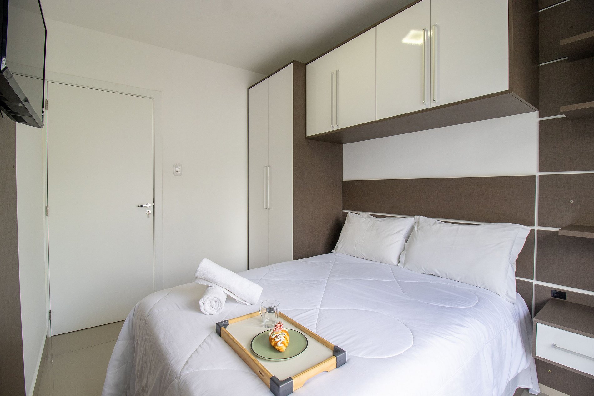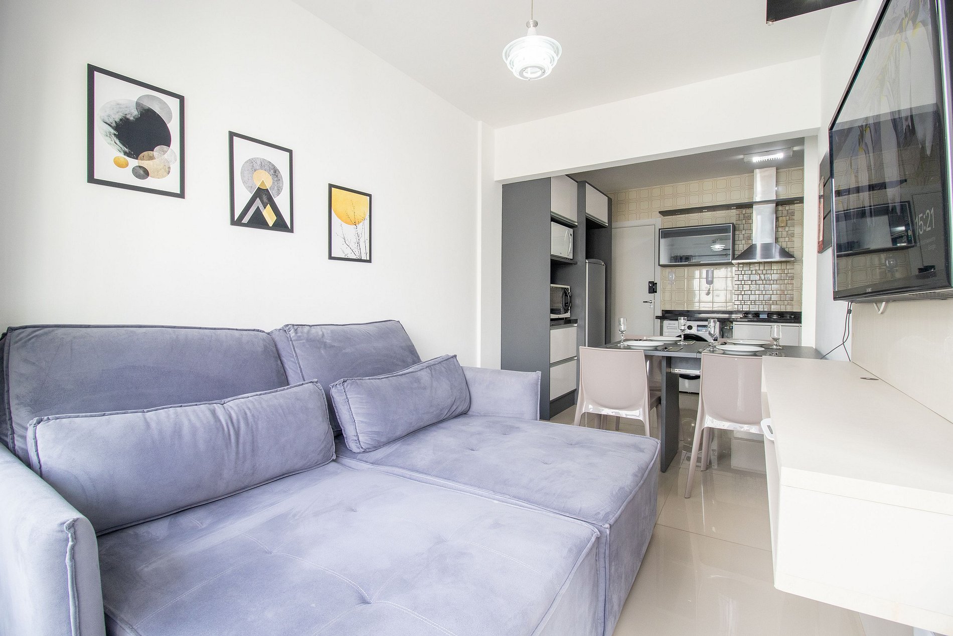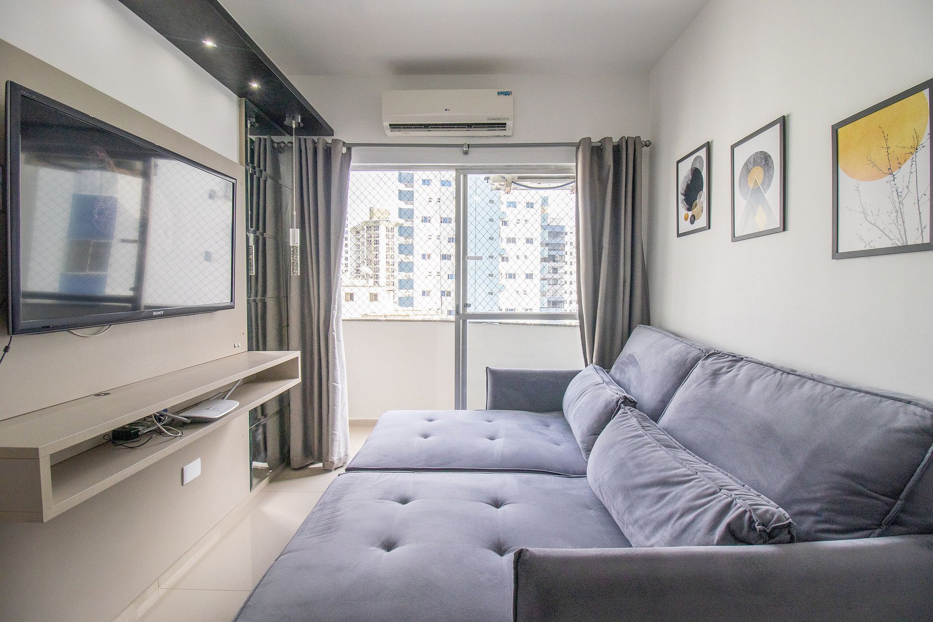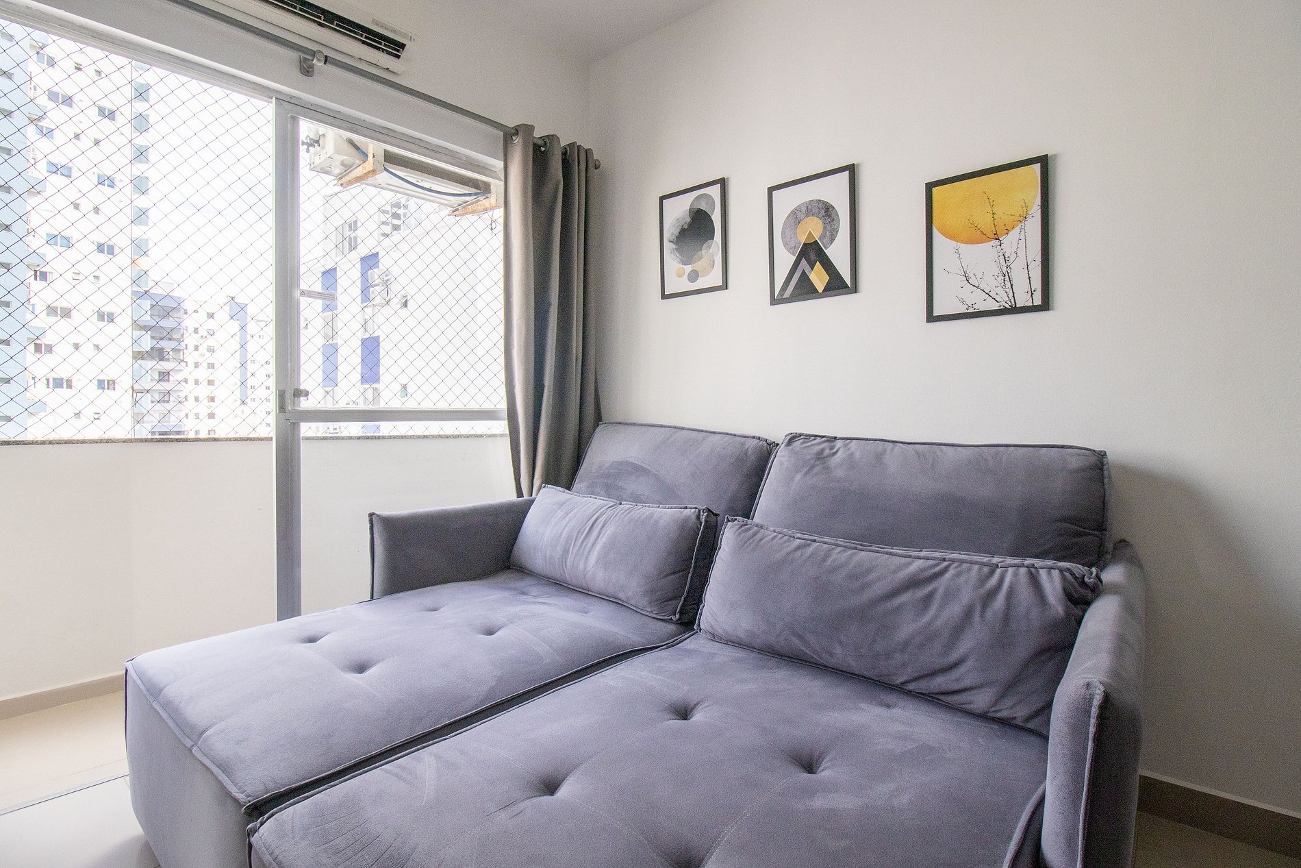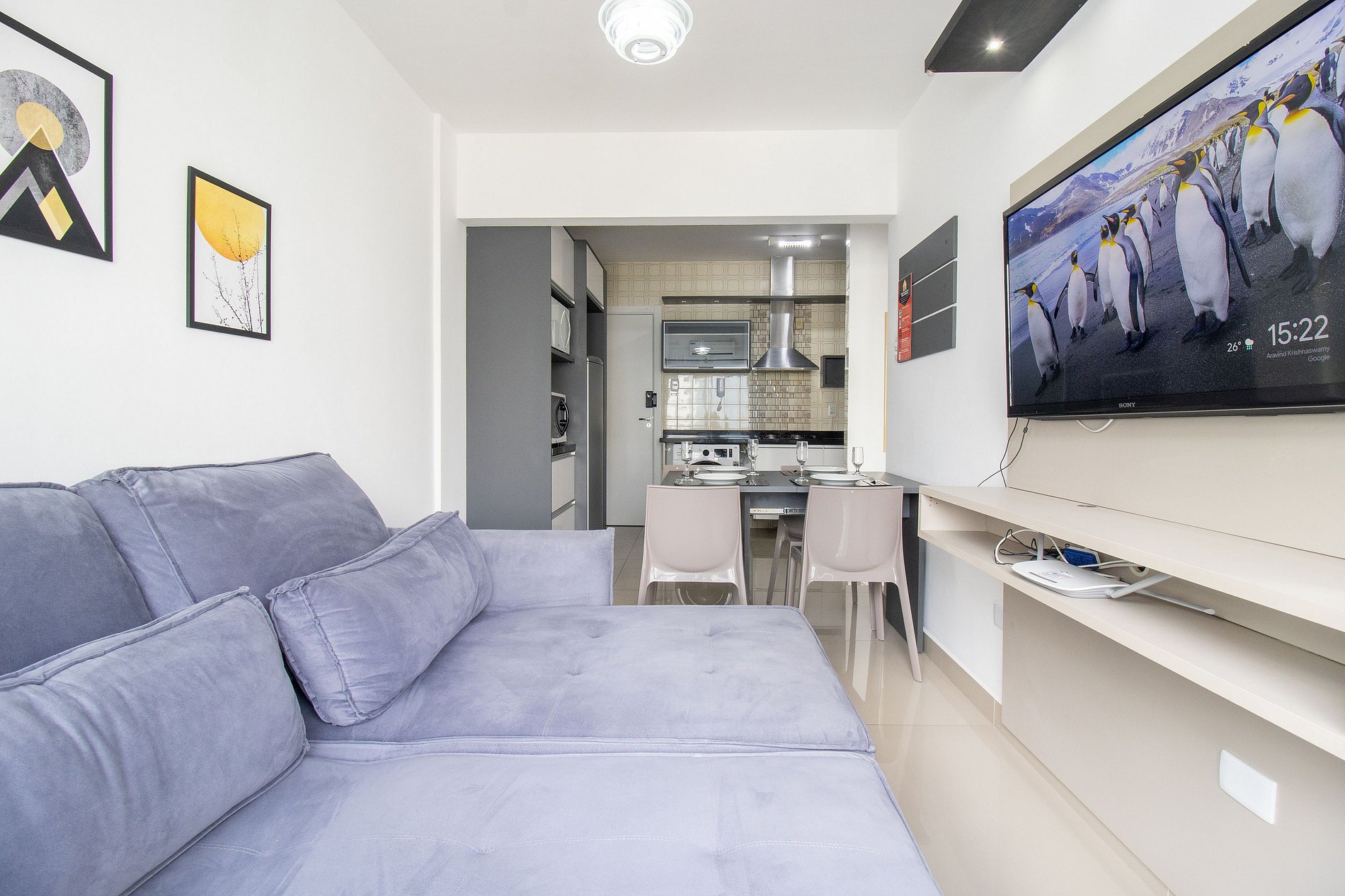 Explore Balneário Camboriú e se hospede nesse apartamento equipado e climatizado com ótima localização, próximo ao Shopping Atlântico. Sendo um dormitório com cama de casal, um colchão de solteiro avulso e um sofá cama. Ambos ambientes climatizados com ar condicionado split, Internet wifi, TV com Chromecast na sala, com uma vaga de garagem privativa.