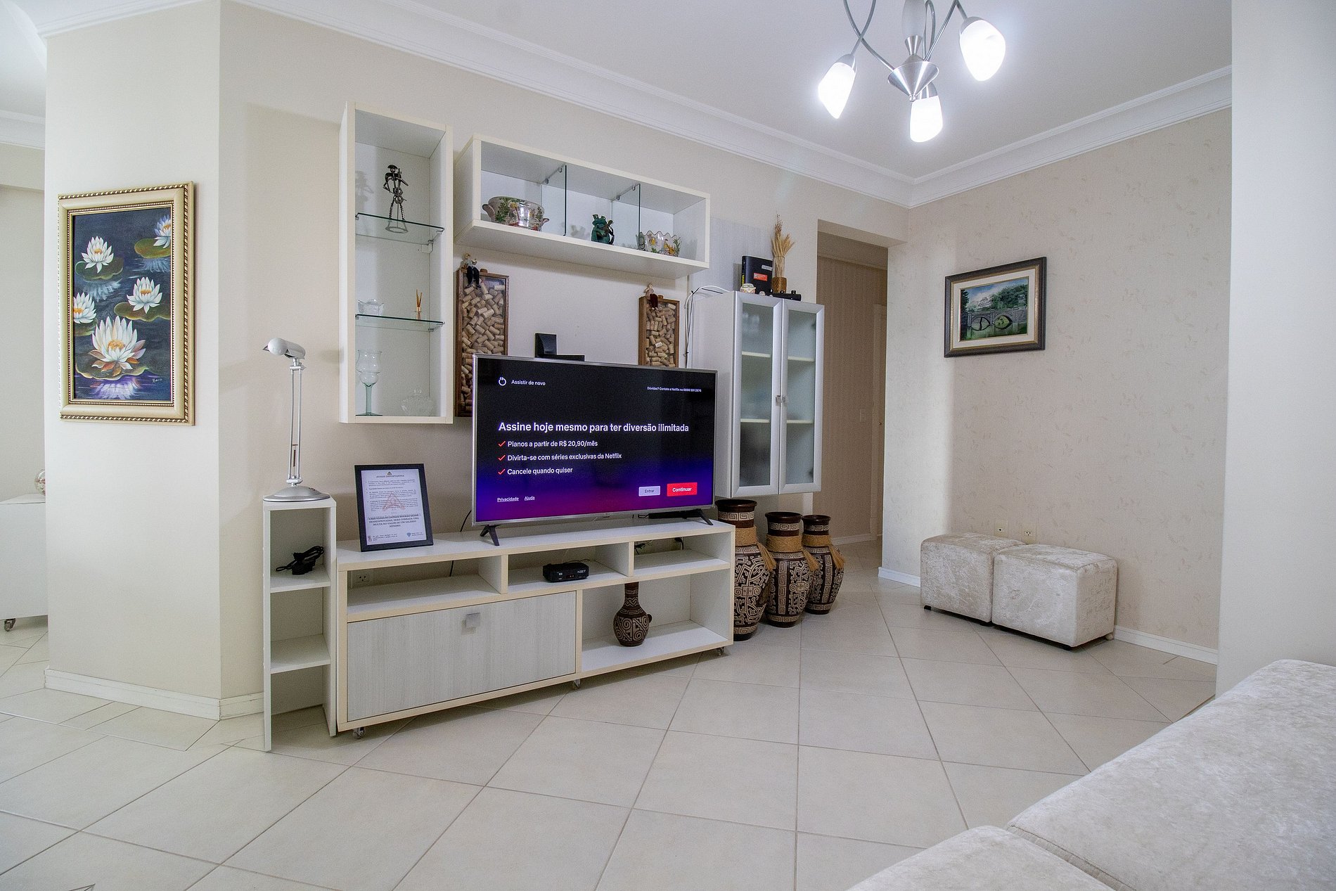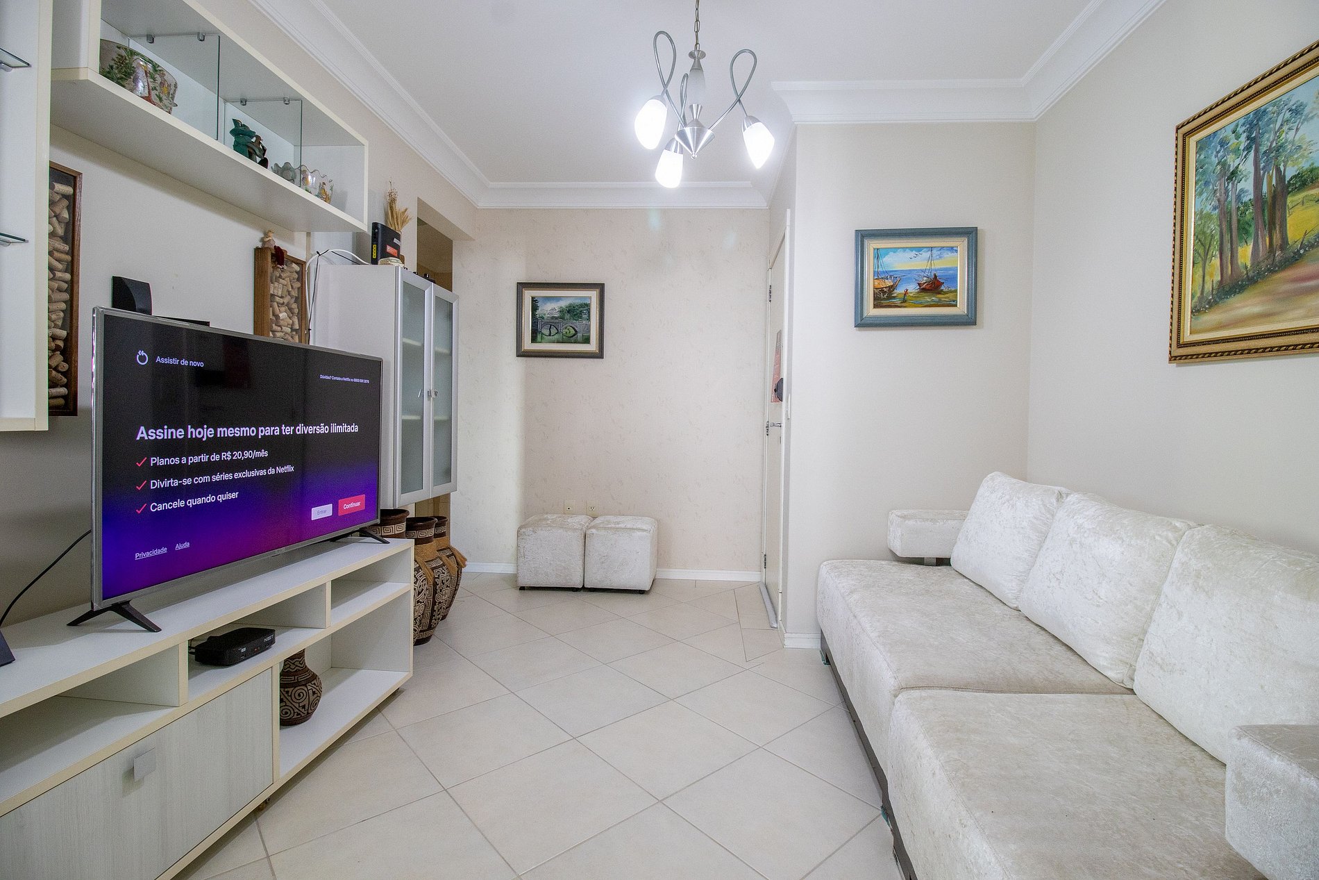 OBS: A TV da suíte possui alguns riscos na tela, mas não atrapalha a imagem.