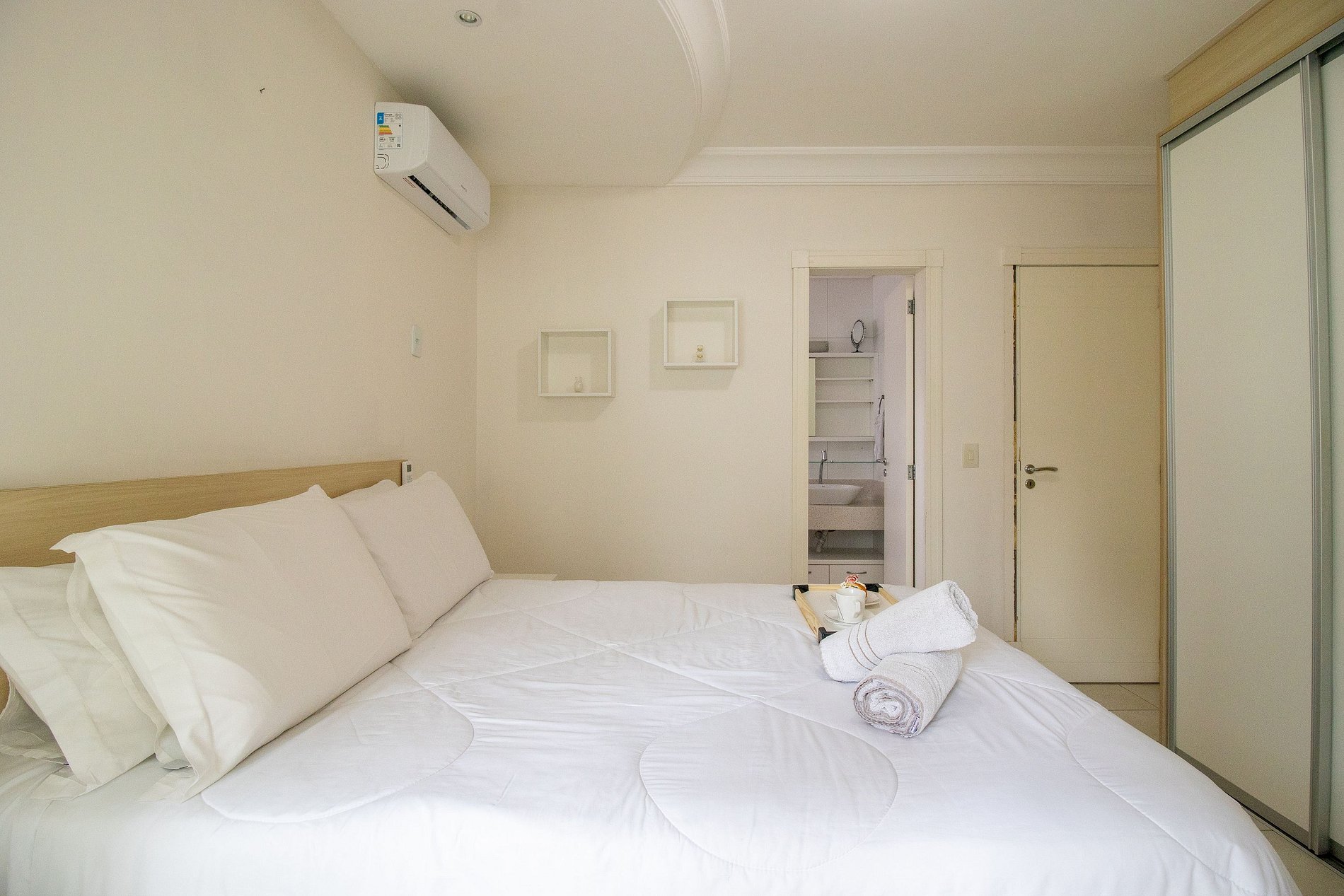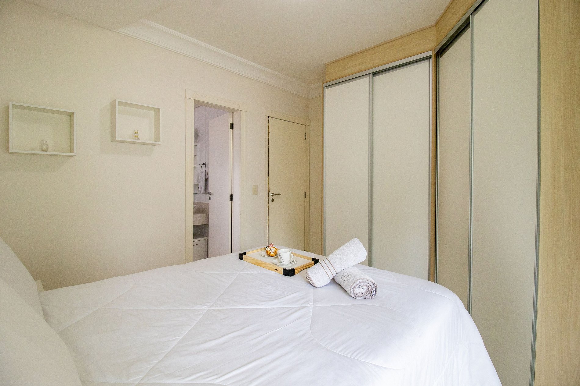 Mantenha-se conectado com internet Wi-Fi de qualidade e própria do apartamento, desfrute de entretenimento com TVs na suíte e na sala.