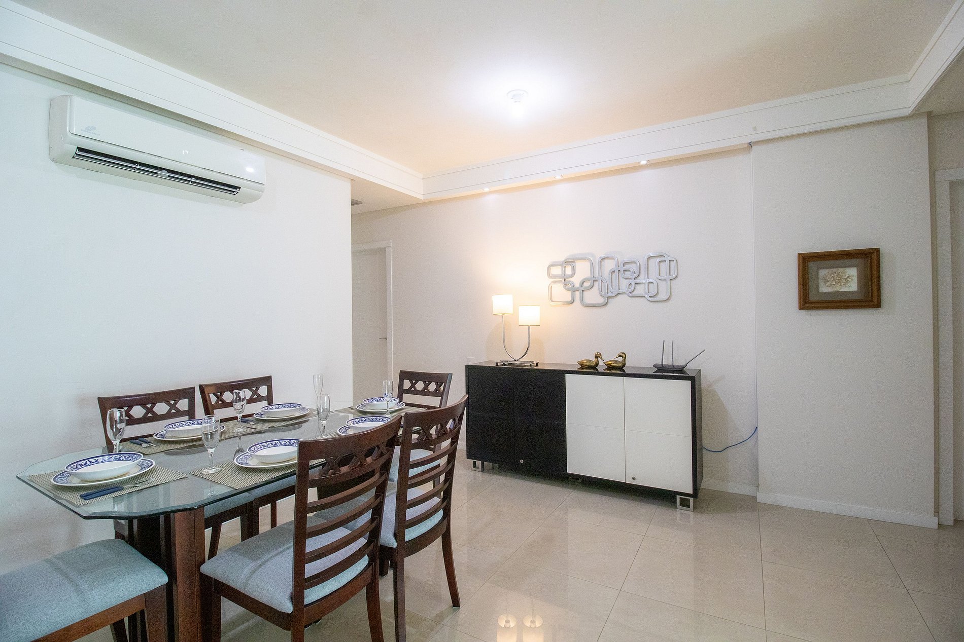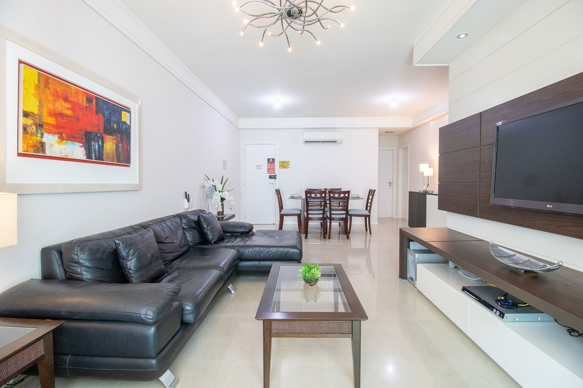 Ao total são três ares condicionados split quente e frio, sendo um em cada suíte e um na sala.