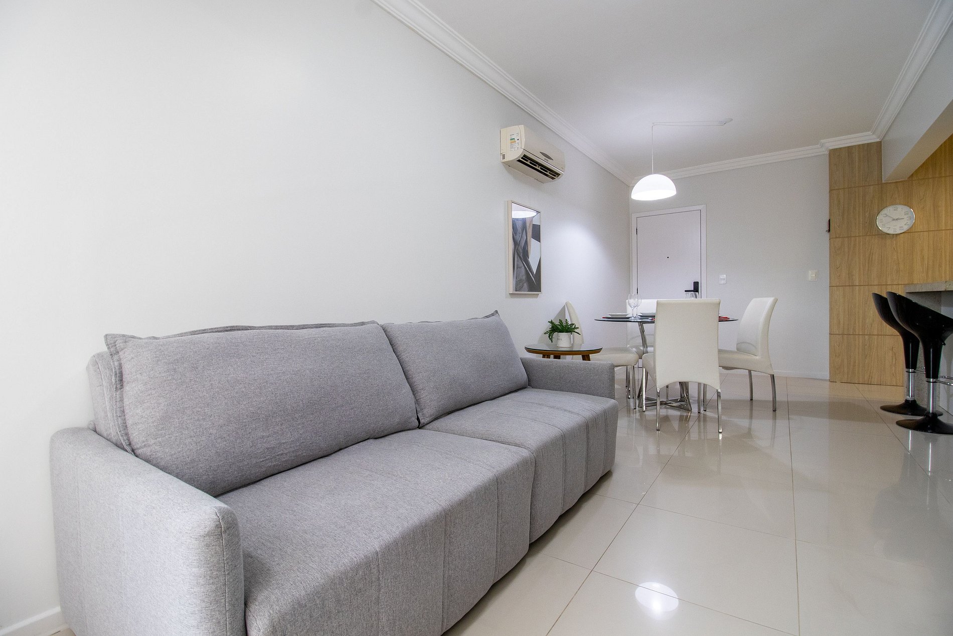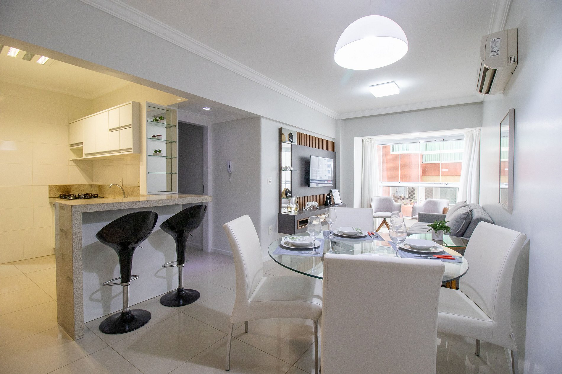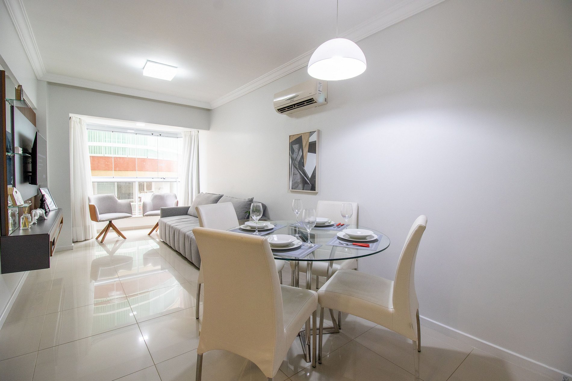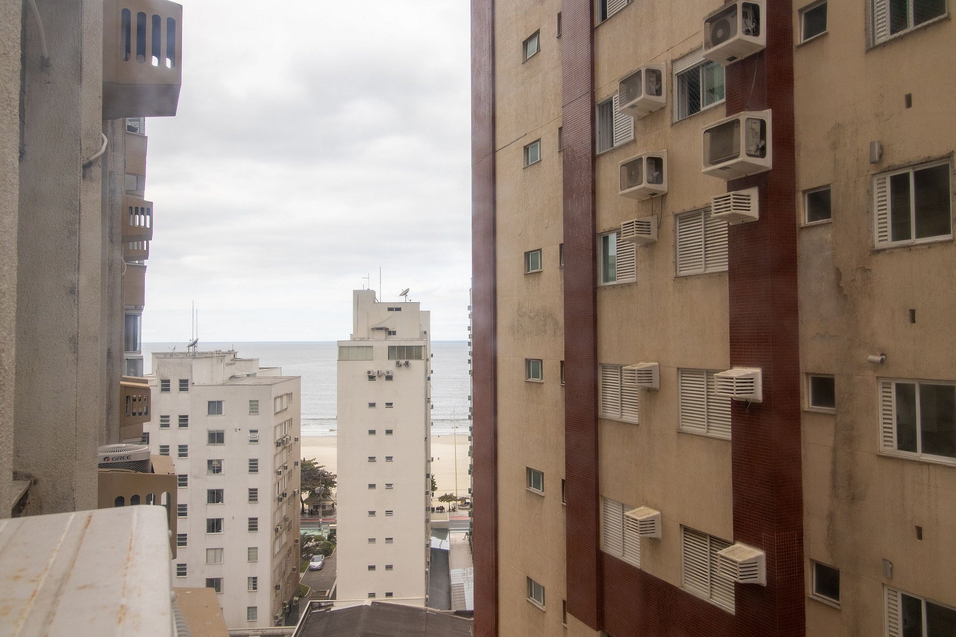 O apartamento possui três ares condicionados, sendo um em cada dormitório (quente/frio) e na sala.