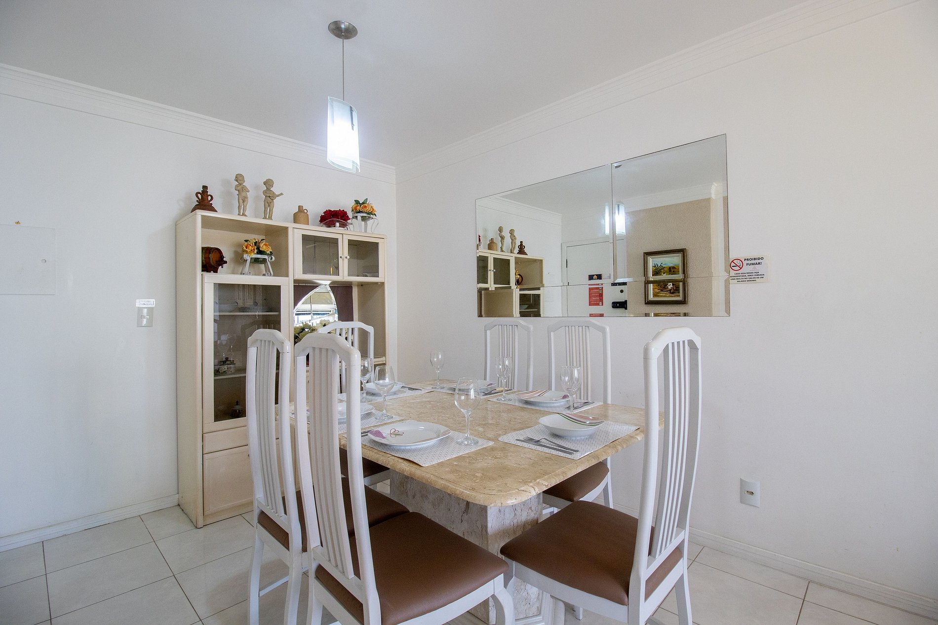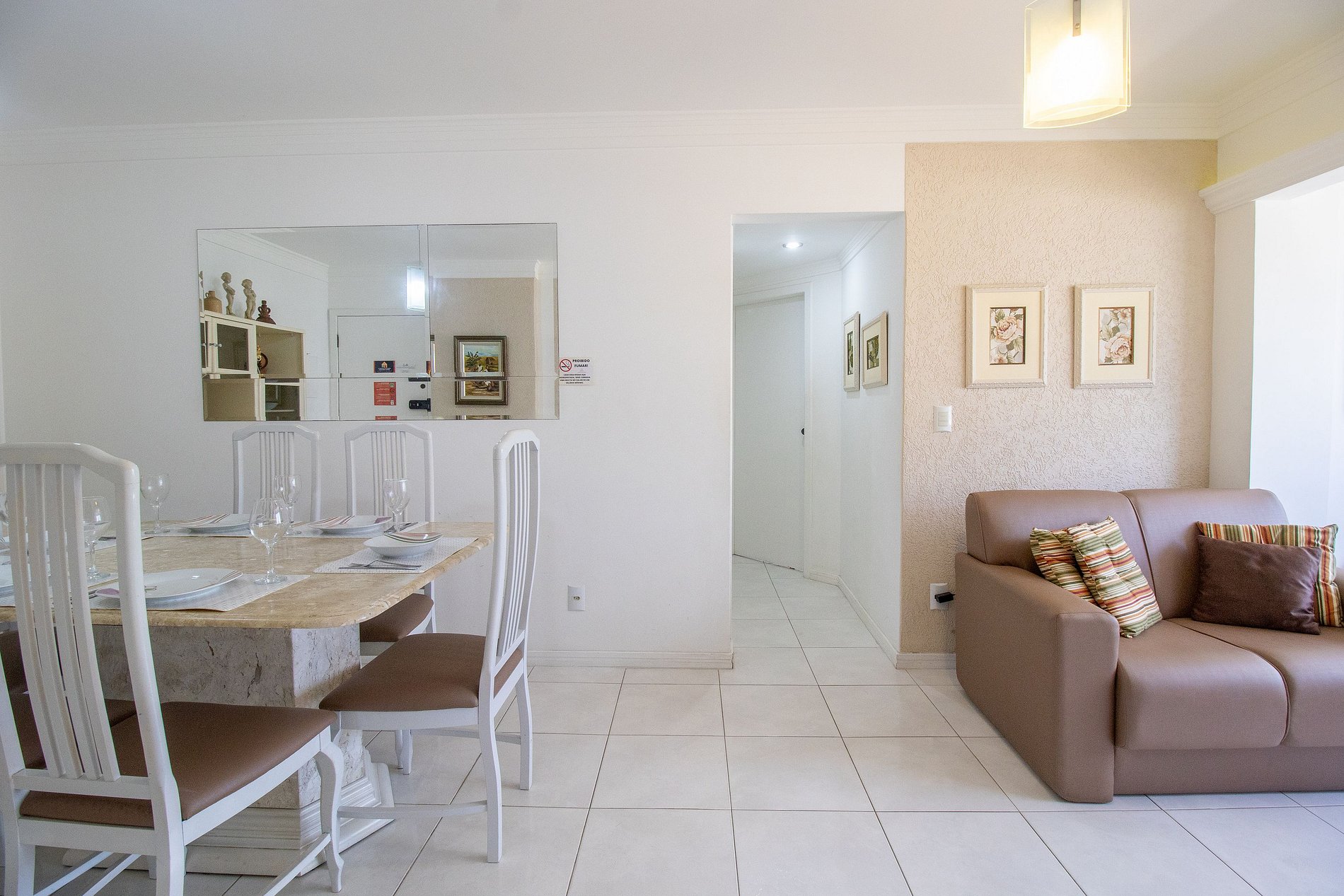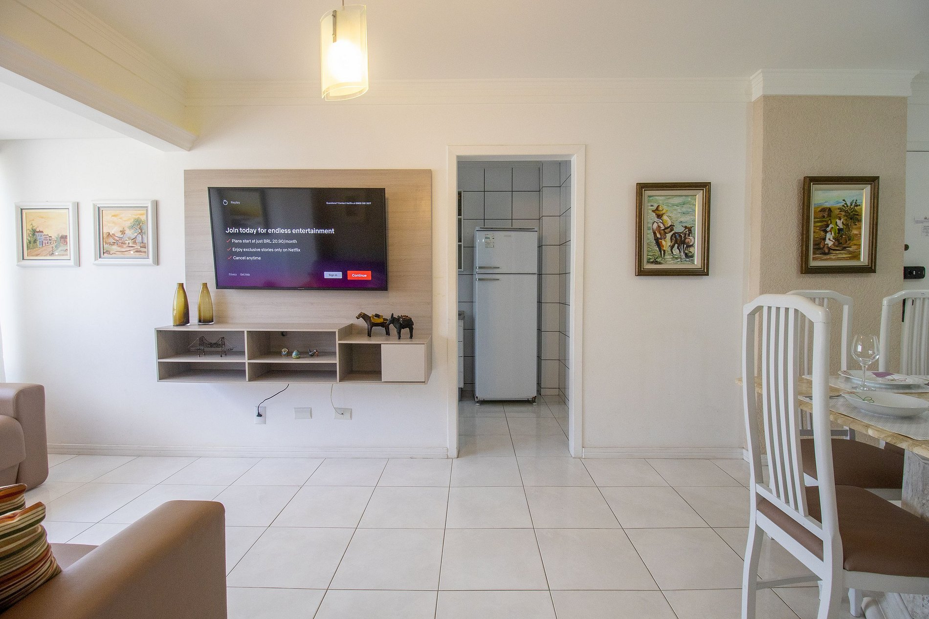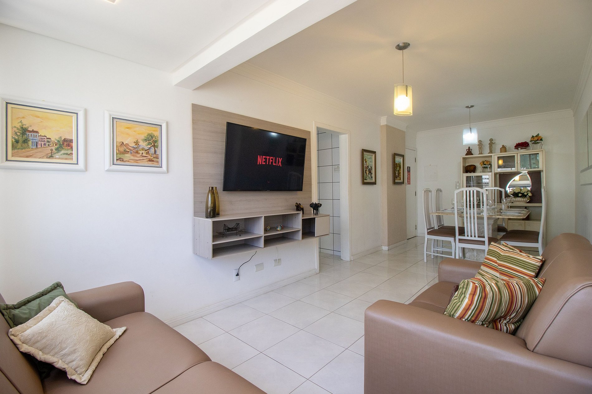 Com dois dormitórios, incluindo uma suíte, este espaço oferece uma cama de casal, duas de solteiro e dois colchões avulsos. Dois banheiros com chuveiros elétricos. A sala que conta com um sofá, mesa de janta e uma TV SMART, e sacada fechada. A cozinha completa e a área de serviço com máquina de lavar e varal, garantem praticidade durante sua estadia.