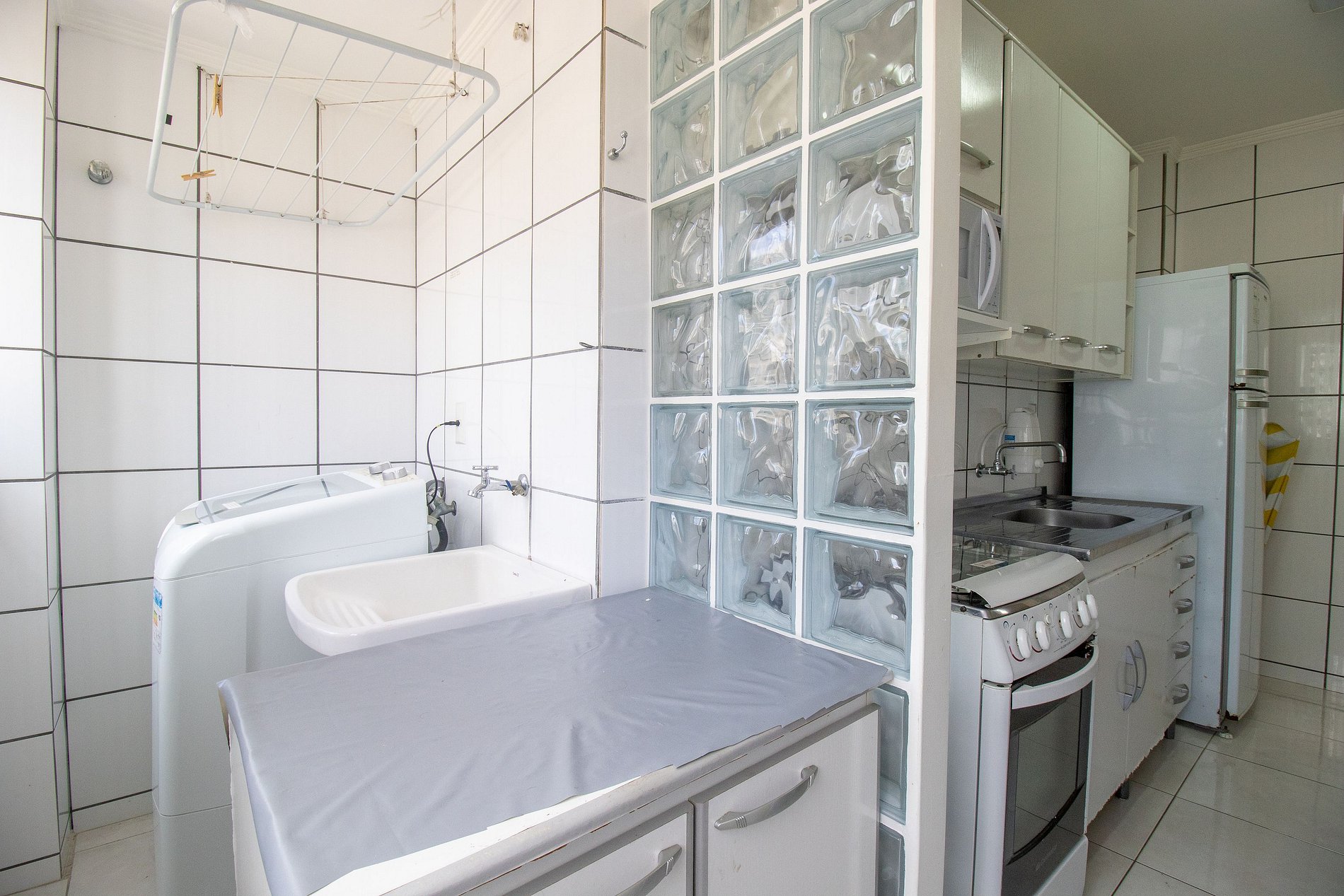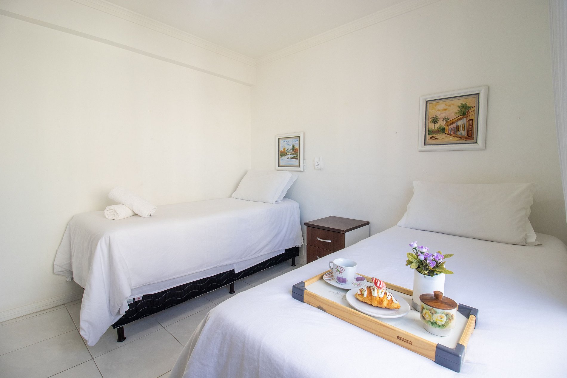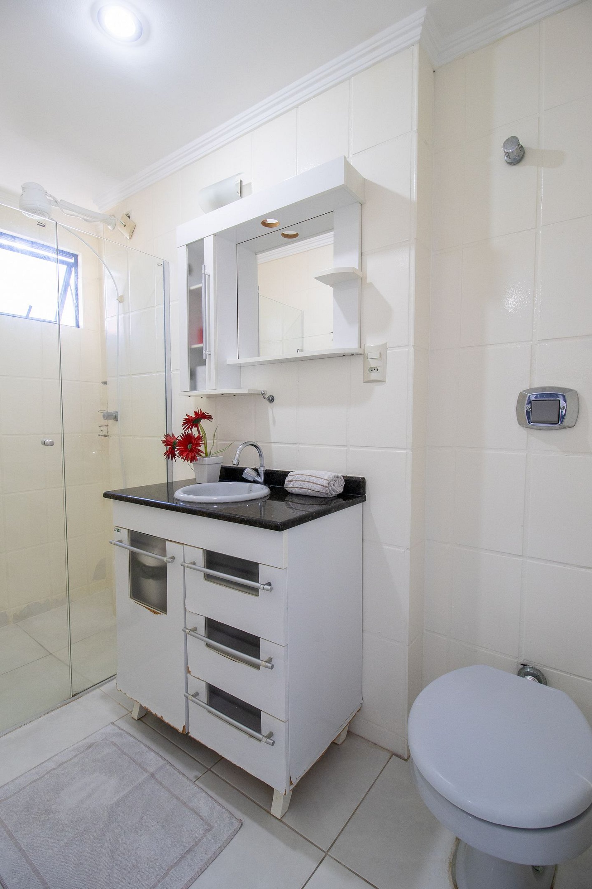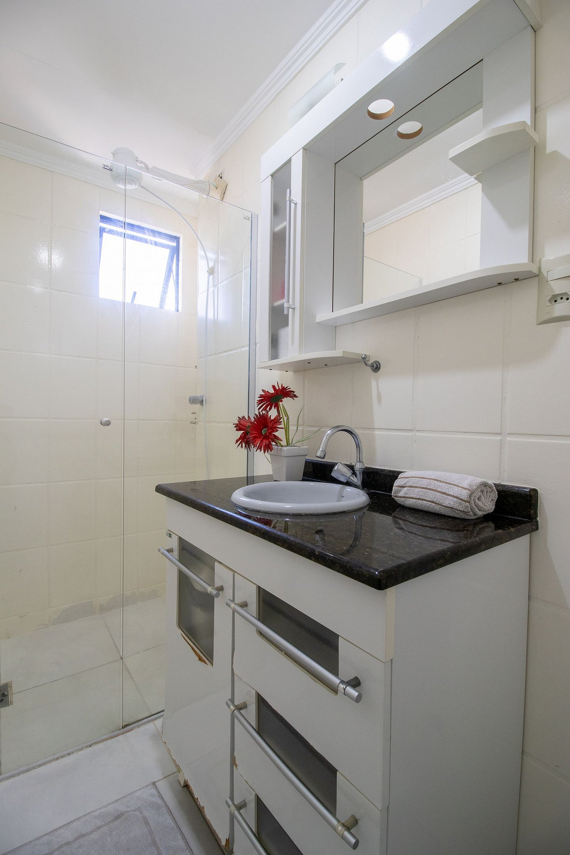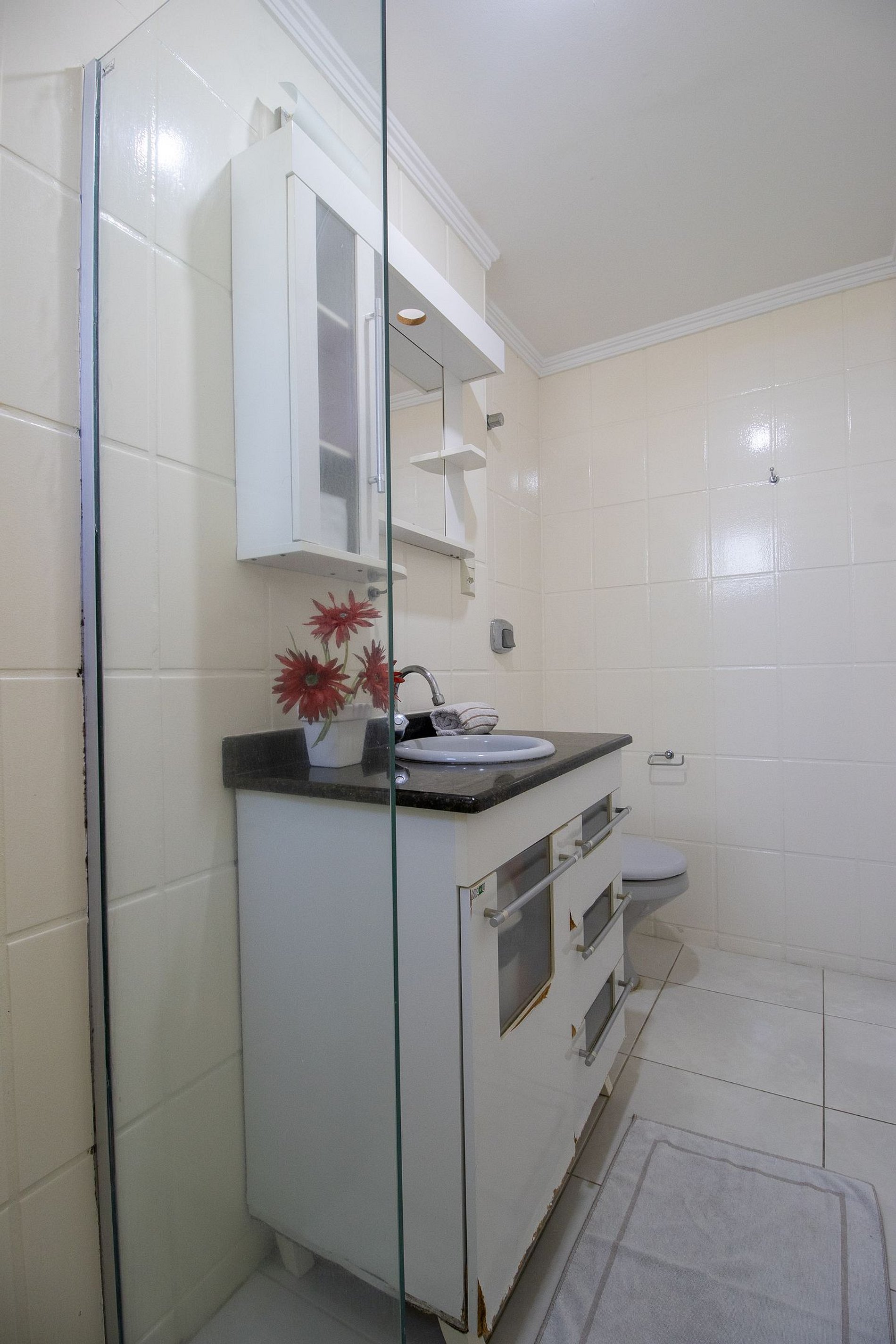 Com dois dormitórios, incluindo uma suíte, este espaço oferece uma cama de casal, duas de solteiro e dois colchões avulsos. Dois banheiros com chuveiros elétricos. A sala que conta com um sofá, mesa de janta e uma TV SMART, e sacada fechada. A cozinha completa e a área de serviço com máquina de lavar e varal, garantem praticidade durante sua estadia.