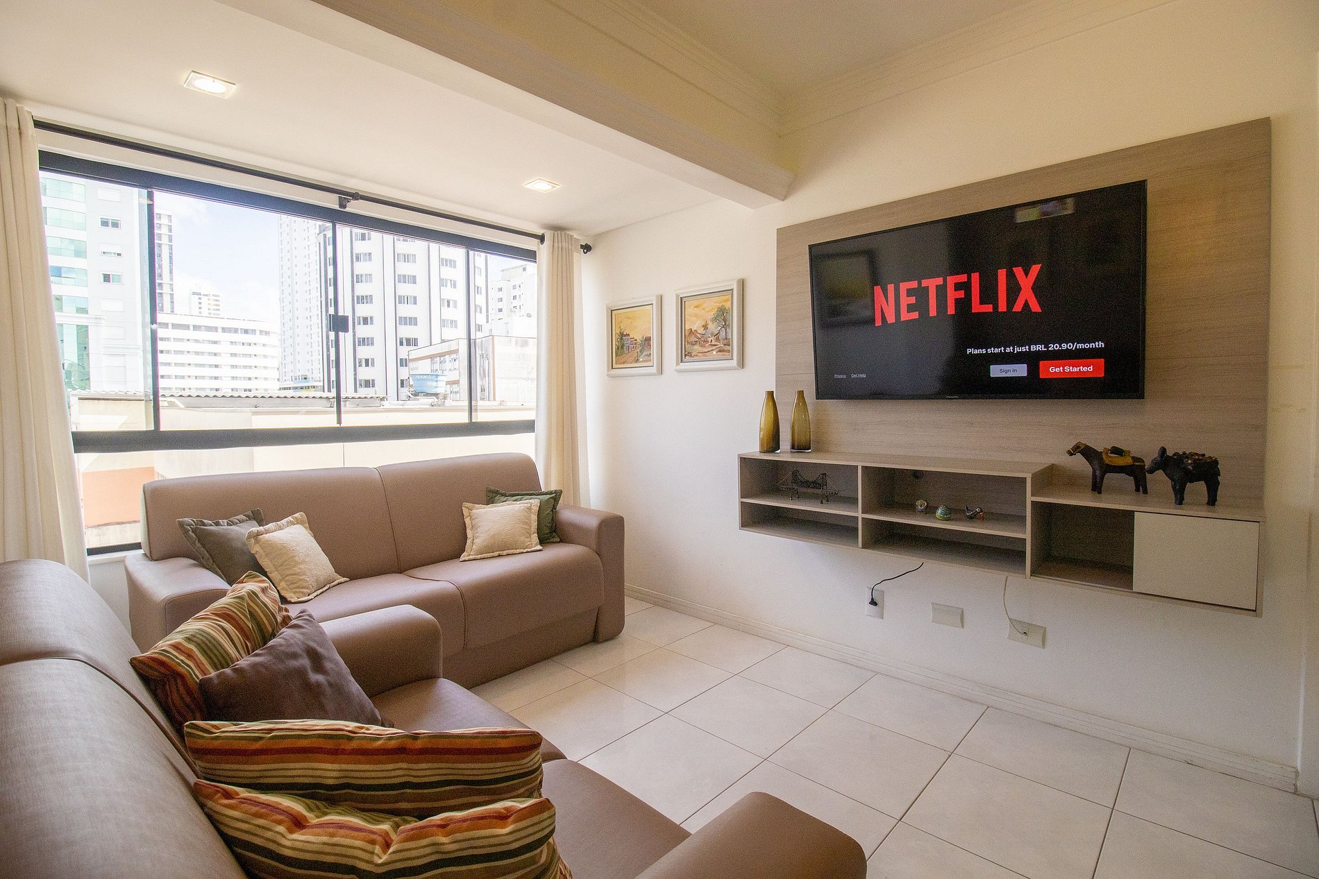 O espaço conta com internet wi-fi de 300mb, TV Smart na sala e TV com acesso a serviços de streaming na suíte.