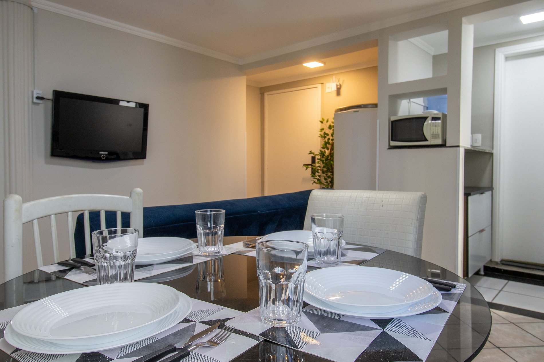 Desfrute deste apartamento situado no calçadão da Avenida Central em Balneário Camboriú, apenas um minuto a pé da praia. Perfeito para viajantes, o espaço inclui um dormitório com ar-condicionado, cozinha equipada (cafeteira, liquidificador, sanduicheira), ferro de passar, secador de cabelo, Wi-Fi e uma vaga de garagem privativa em prédio próximo.