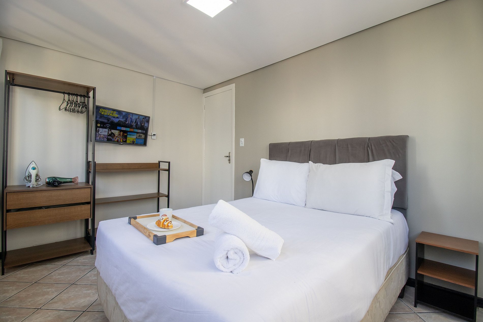 Internet WI-FI de boa velocidade e TV na sala e no quarto com acesso a serviços de streaming.