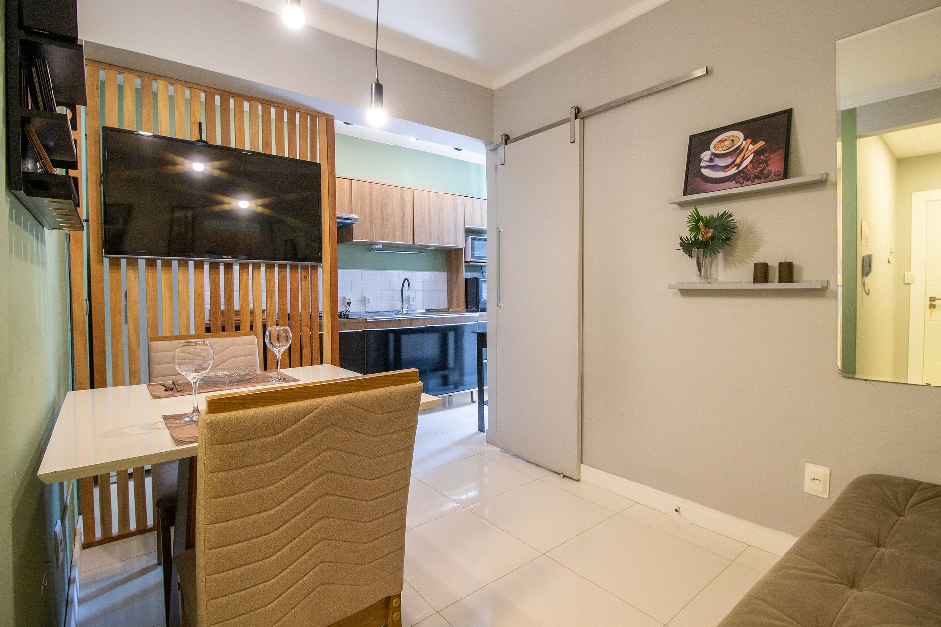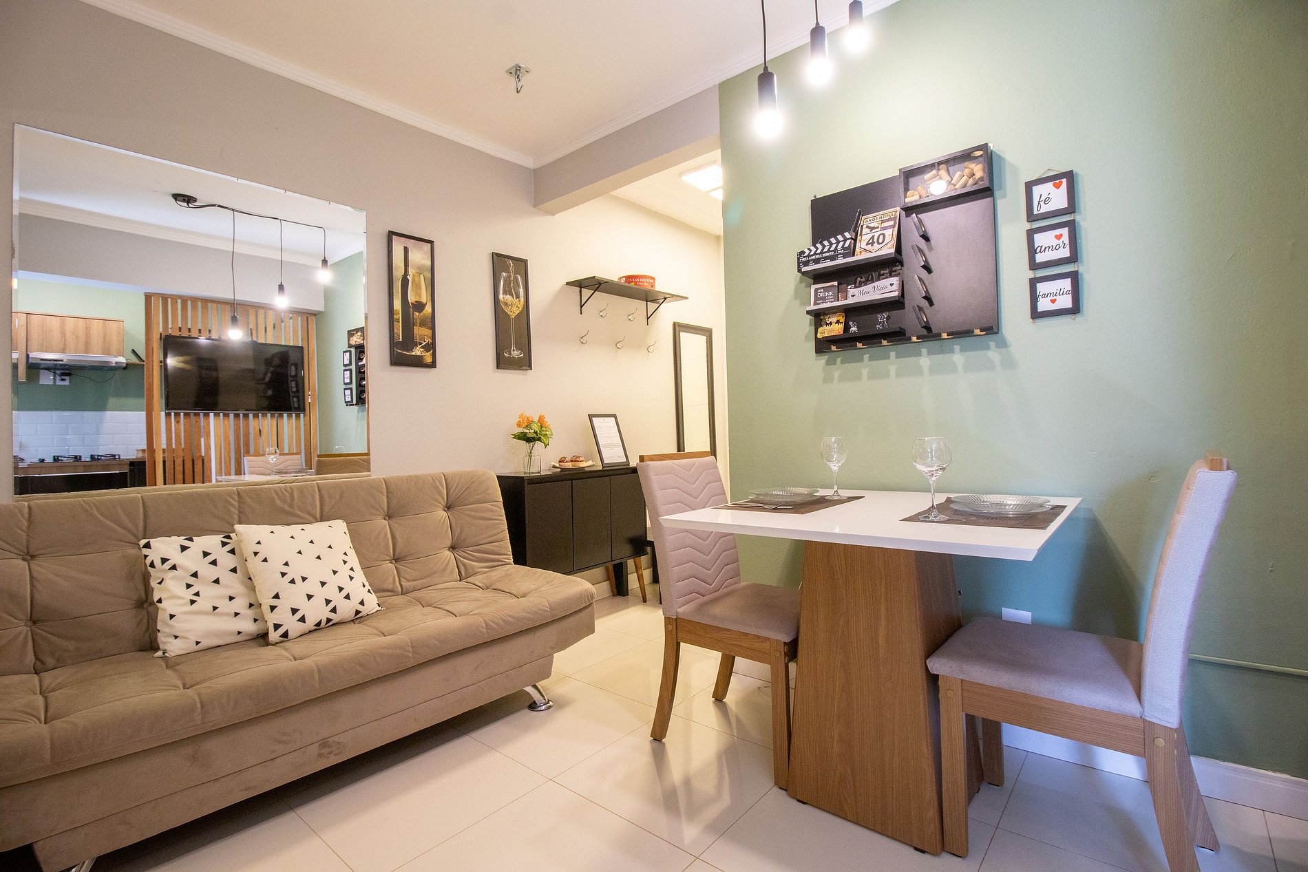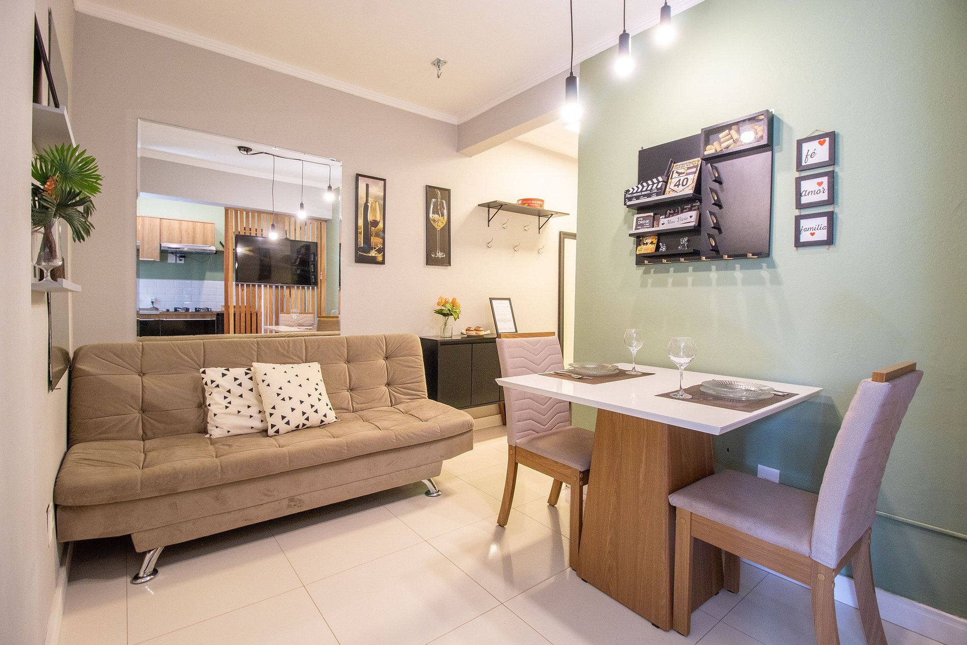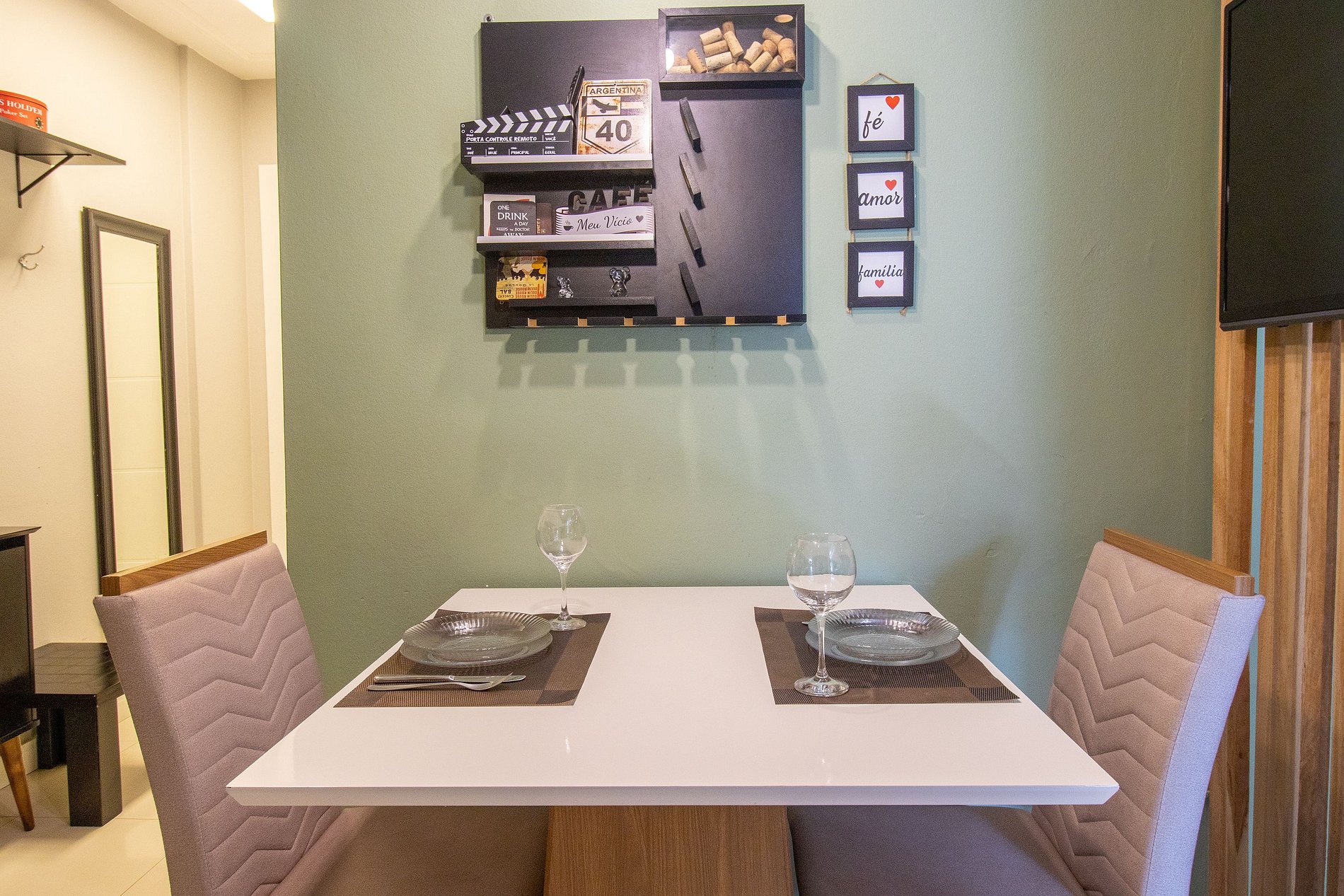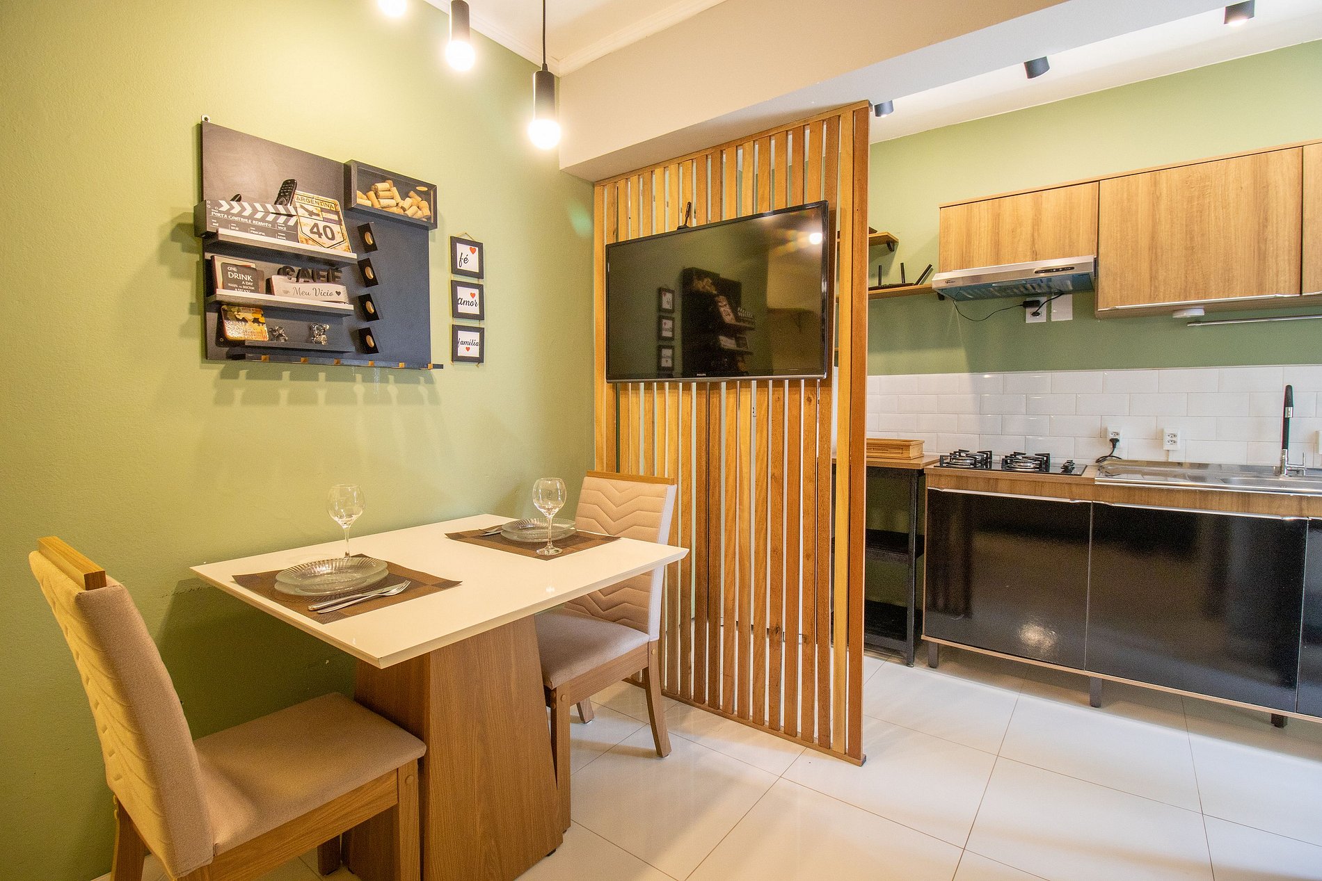 Internet WI-FI de boa qualidade e TV na sala com acesso a serviços de streaming.