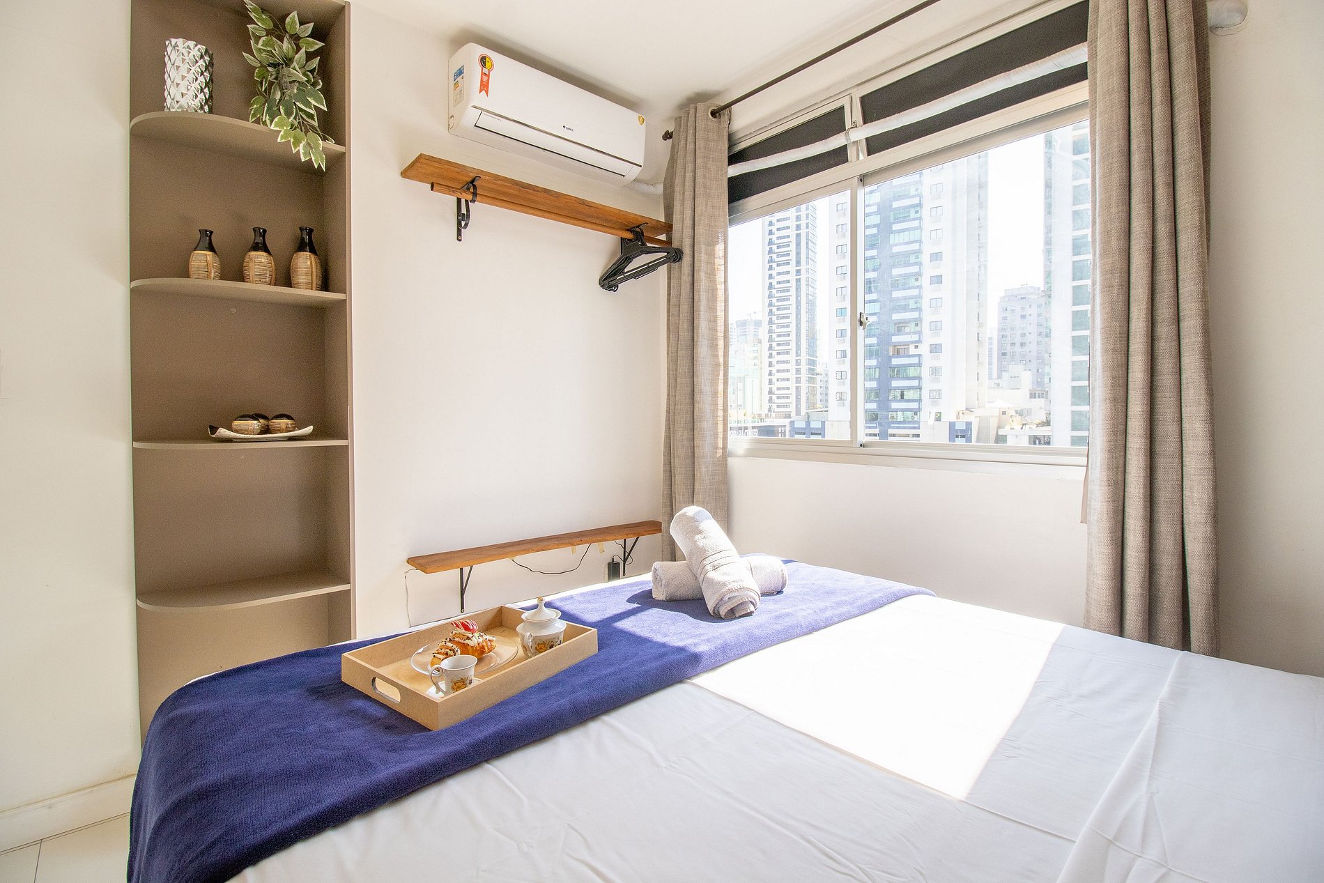 Desfrute deste apartamento situado no calçadão da Avenida Central em Balneário Camboriú, apenas um minuto a pé da praia. Perfeito para viajantes, o espaço inclui um dormitório com ar-condicionado, cozinha equipada para realizar as refeições cotidianas. Para sua maior comodidade disponibilizamos ferro de passar, secador de cabelo, máquina de lavar roupas, Wi-Fi.