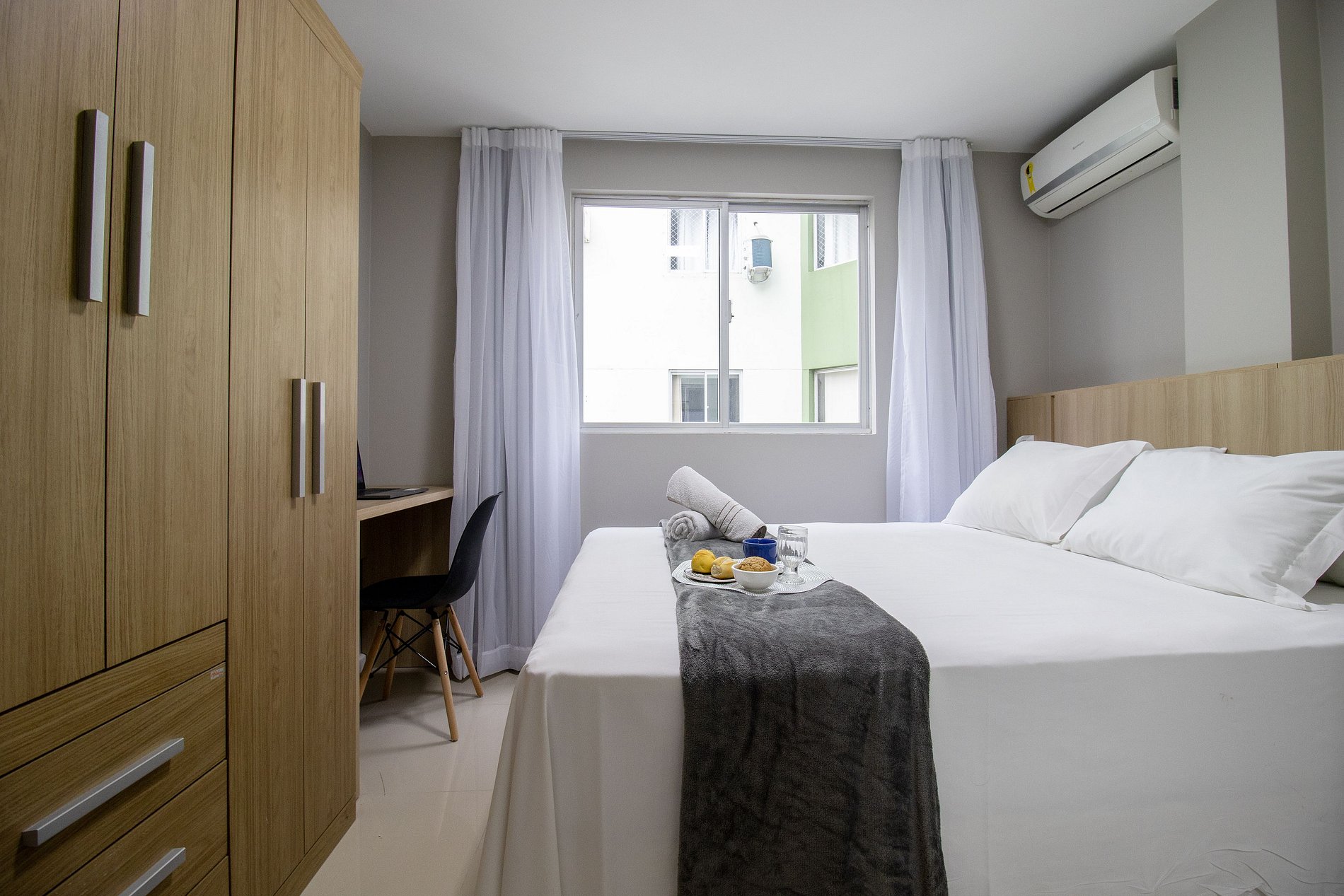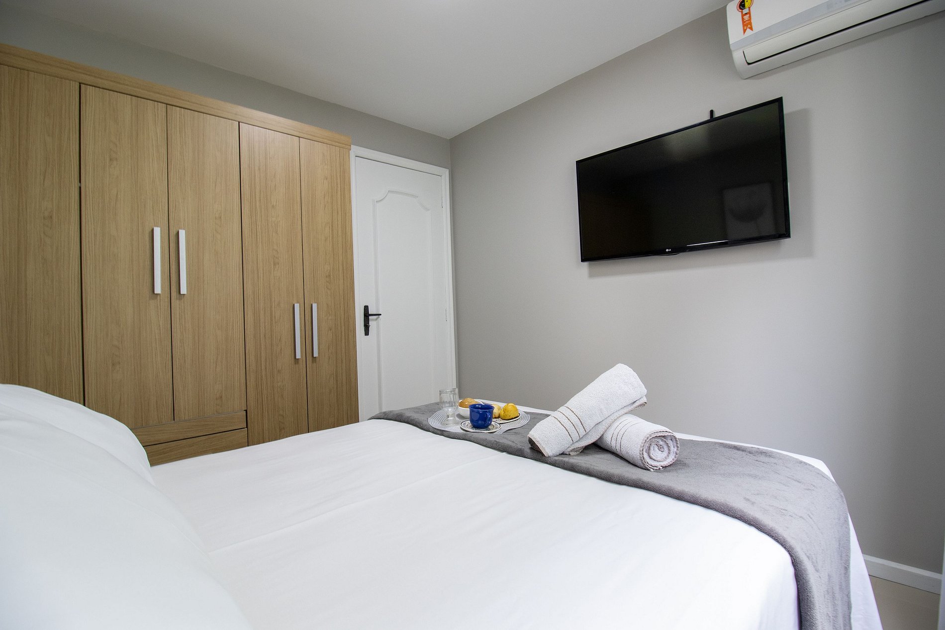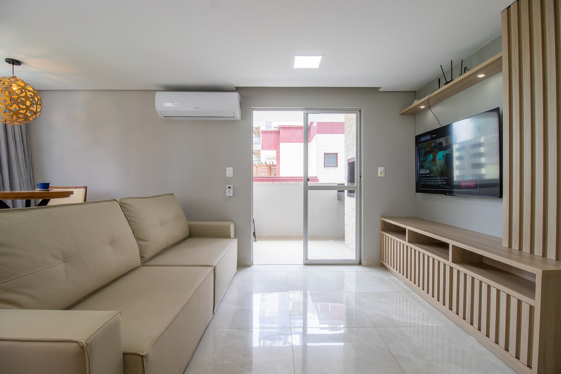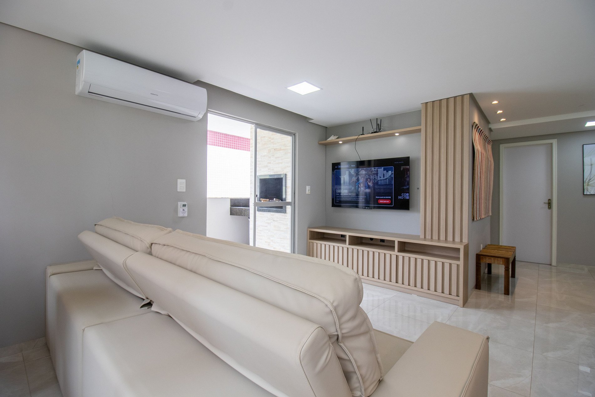 Ao total são três ares condicionados split, sendo um em cada quarto e um na sala.