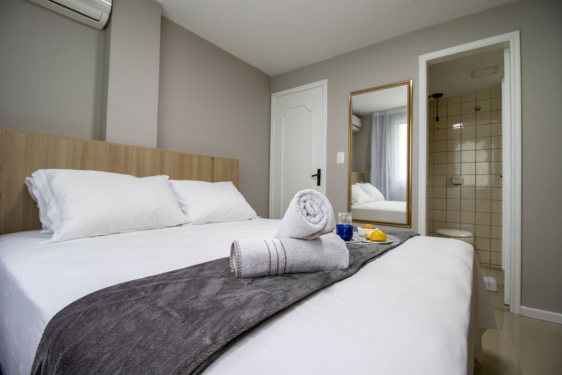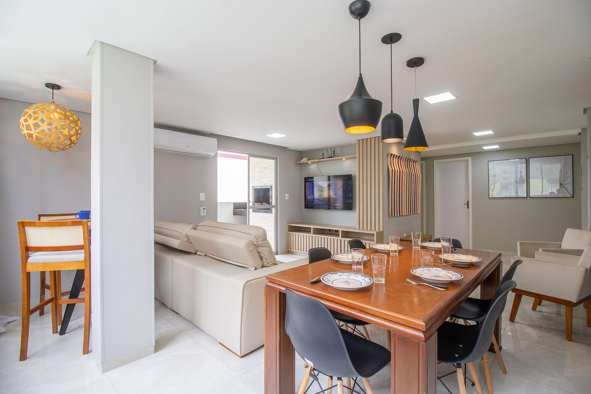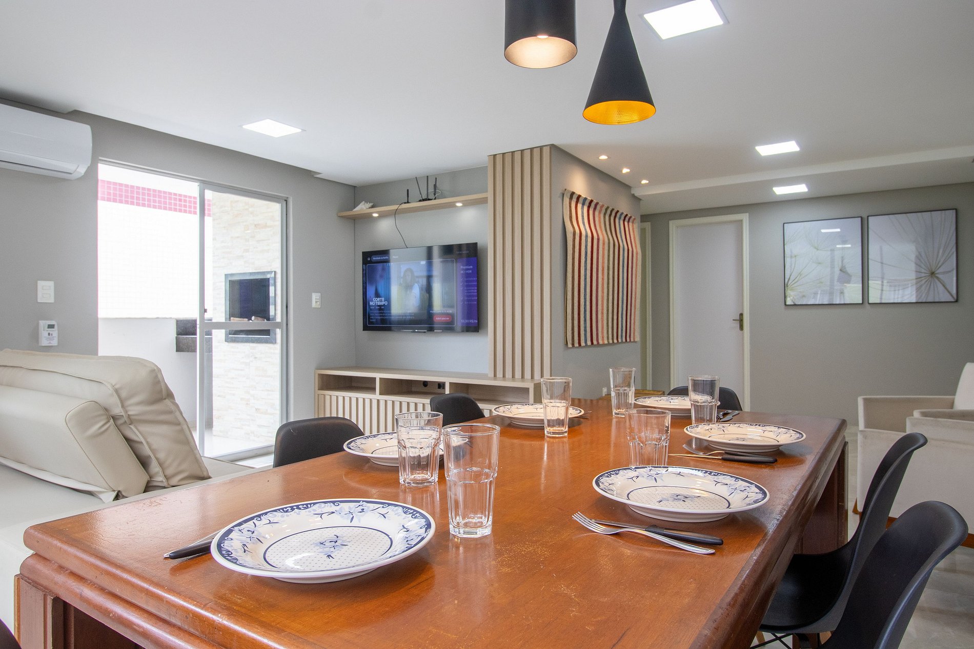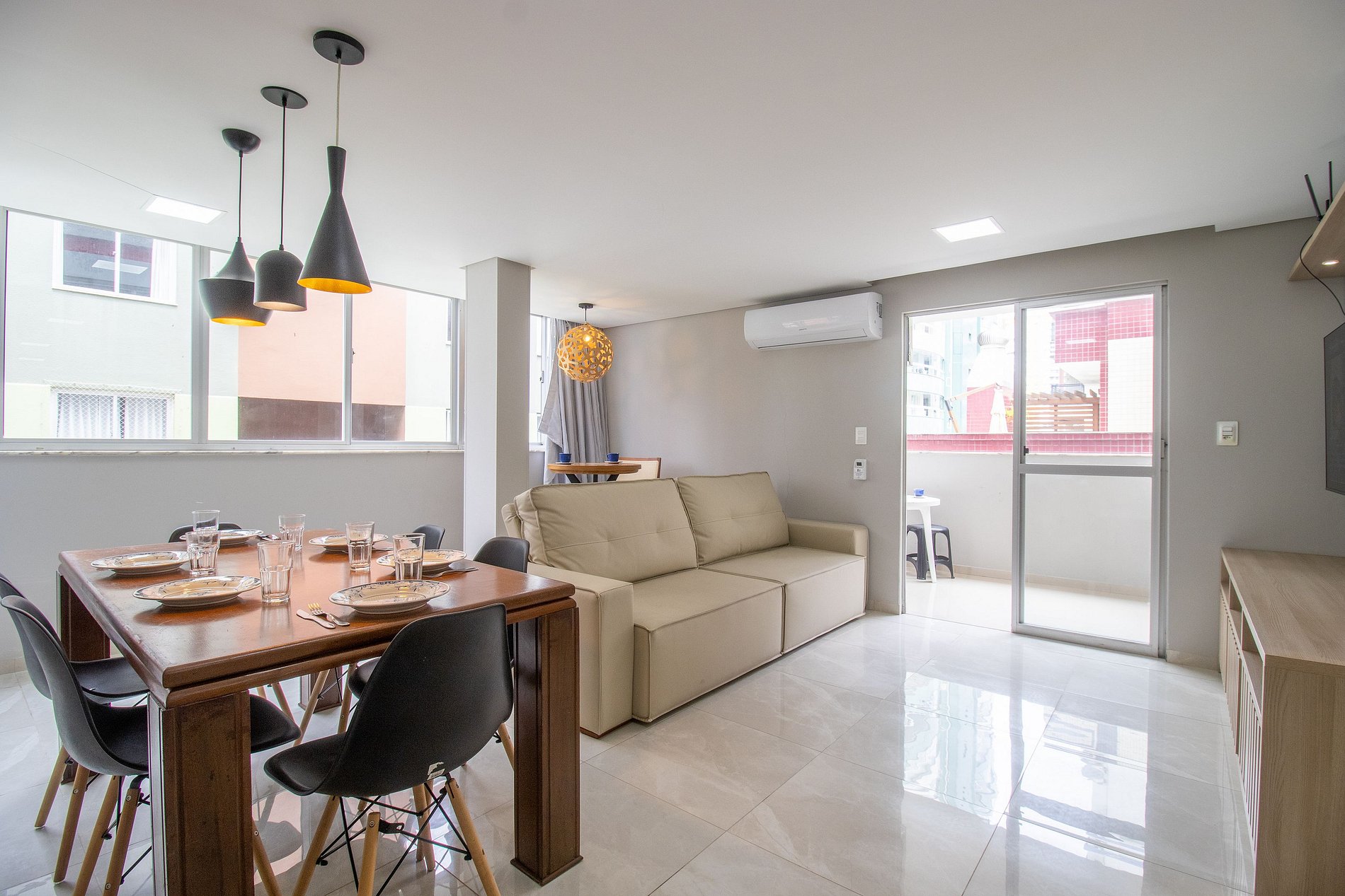 Ao total são três ares condicionados split, sendo um em cada quarto e um na sala.
