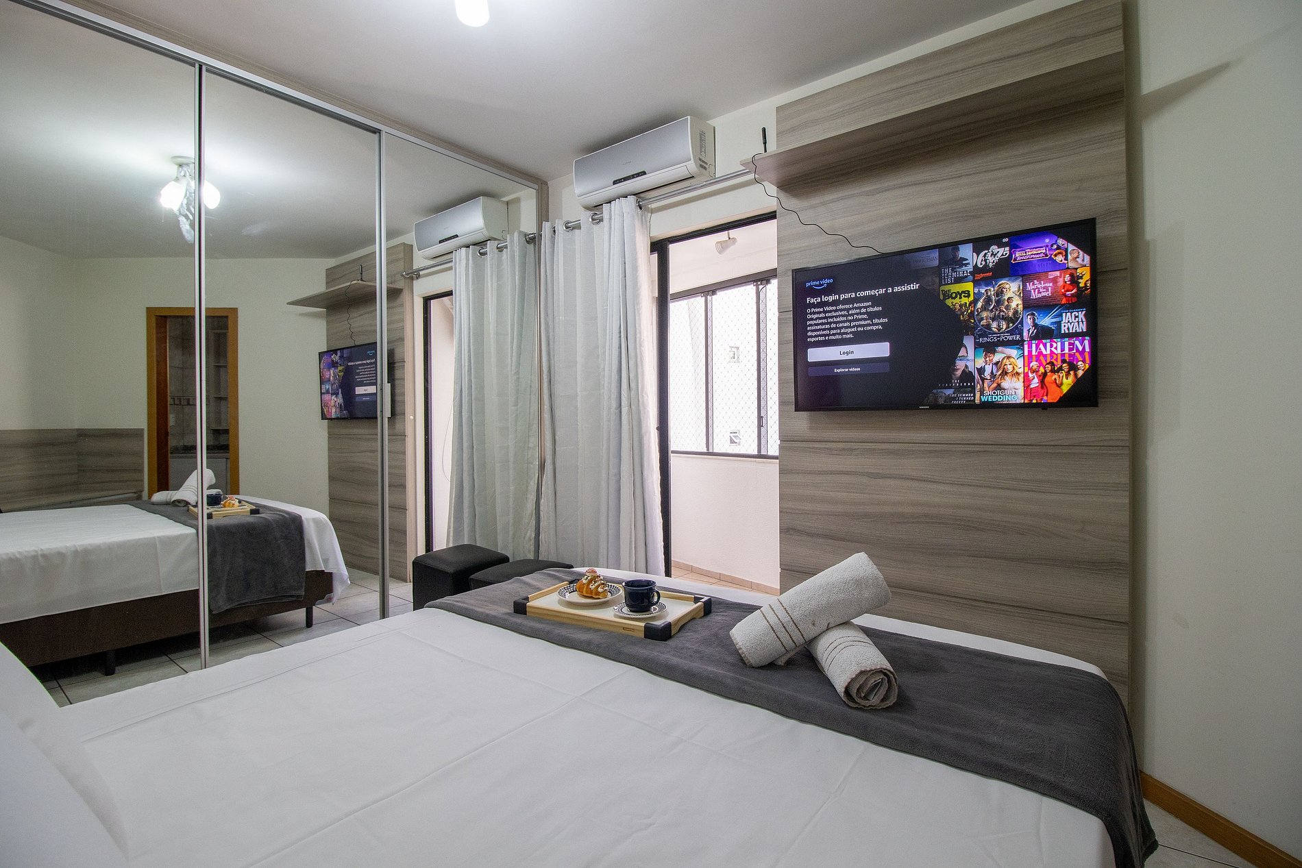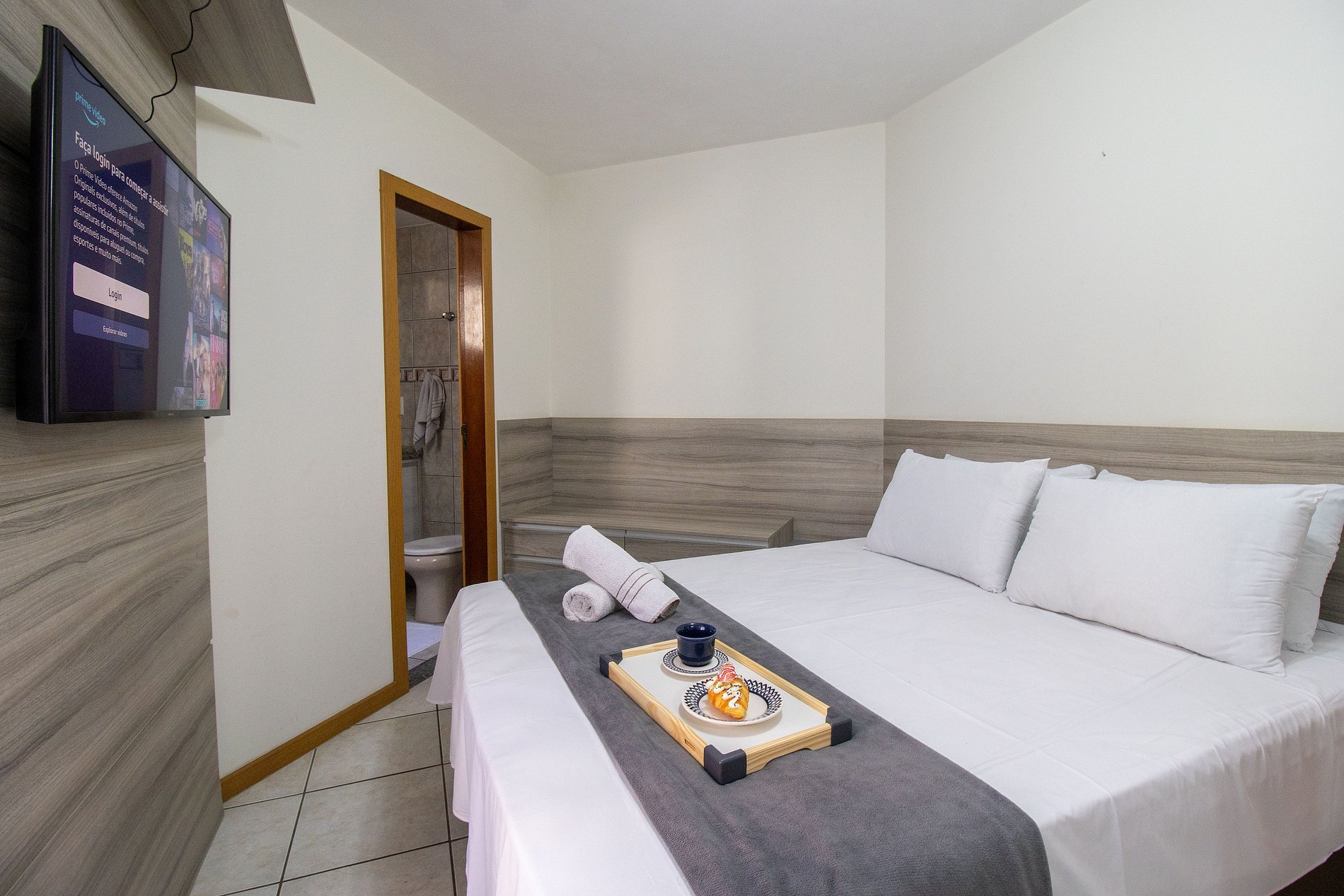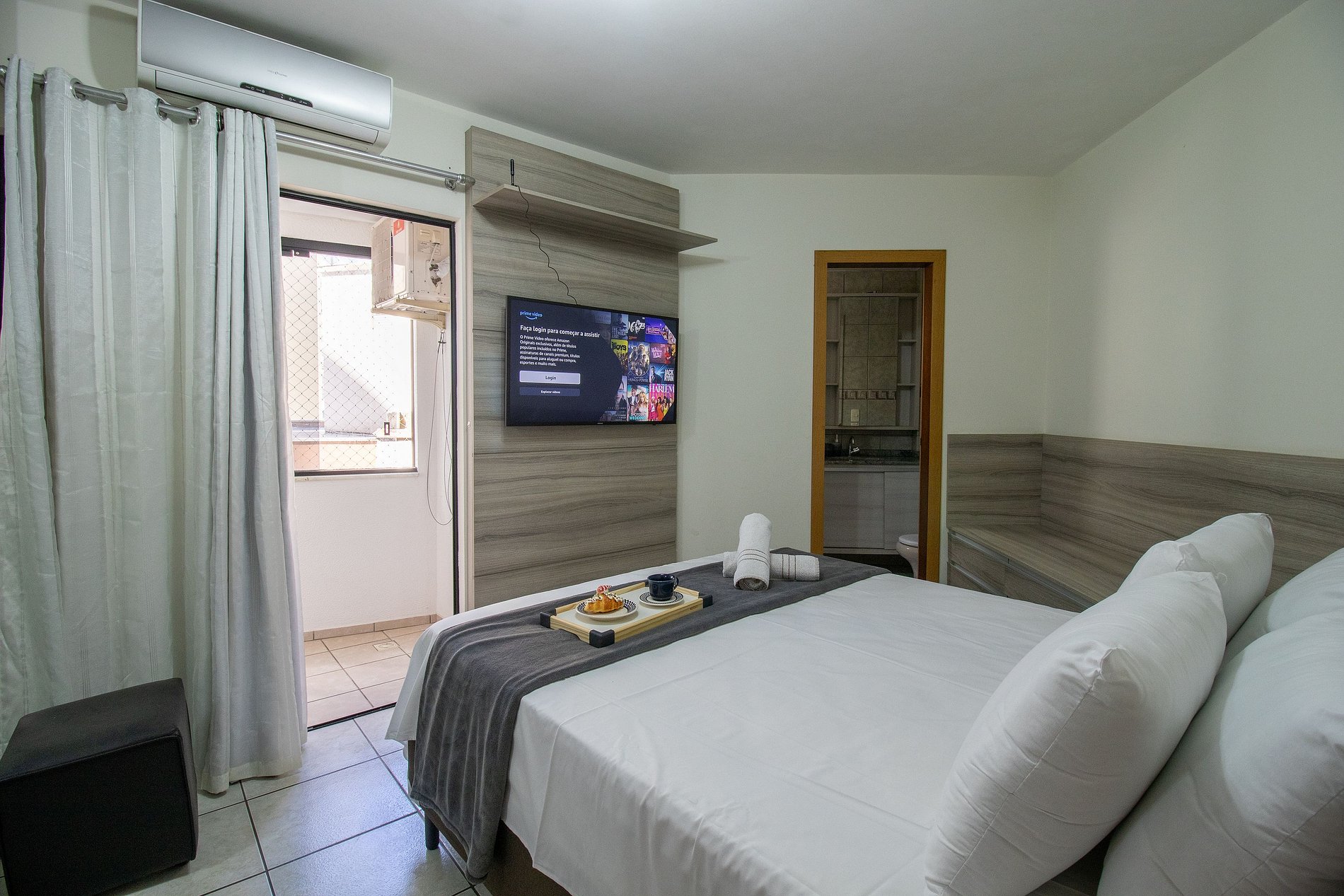 Mantenha-se conectado com nossa internet wi-fi de boa qualidade, própria do apartamento e desfrute de entretenimento com a TV Smart na suíte.