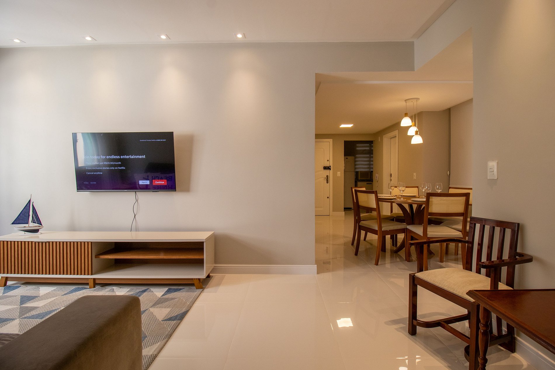 Internet wifi de boa velocidade própria do apartamento e TV Smart na sala (necessário utilizar conta própria).