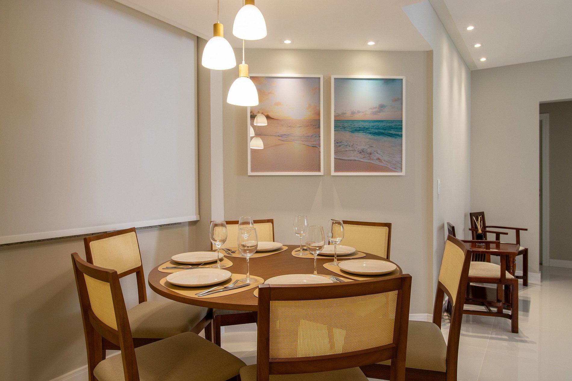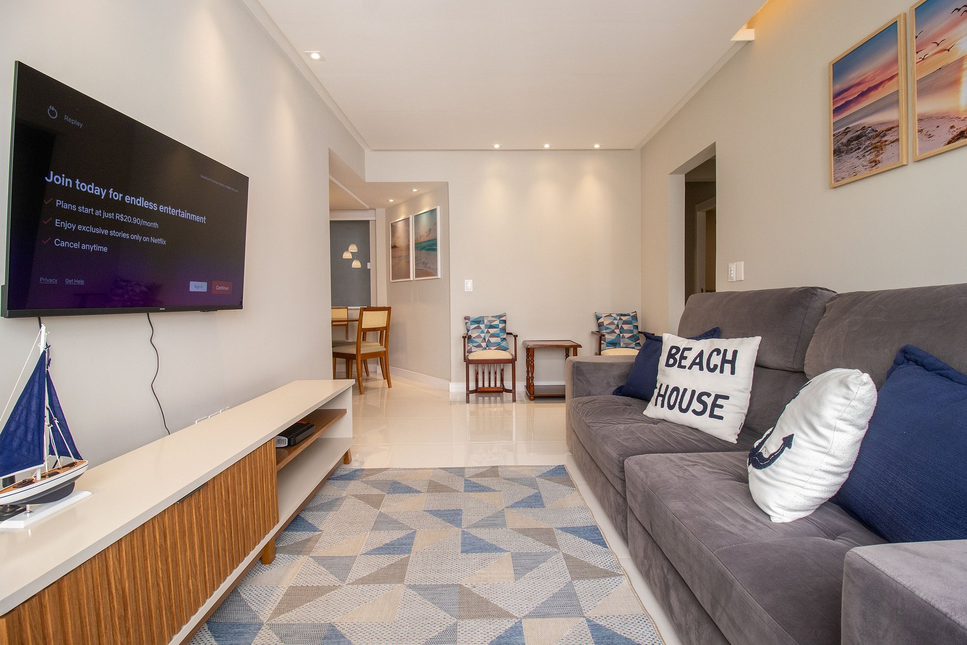 O apartamento oferece um ambiente acolhedor, com um sofá aconchegante e televisão Smart na sala de estar, além de uma mesa de jantar para seis pessoas. São três dormitórios, com um total de duas camas de casal e uma cama de solteiro com auxiliar. A cozinha está equipada com os itens básicos necessários para o seu dia a dia, garantindo uma estadia prática e agradável.