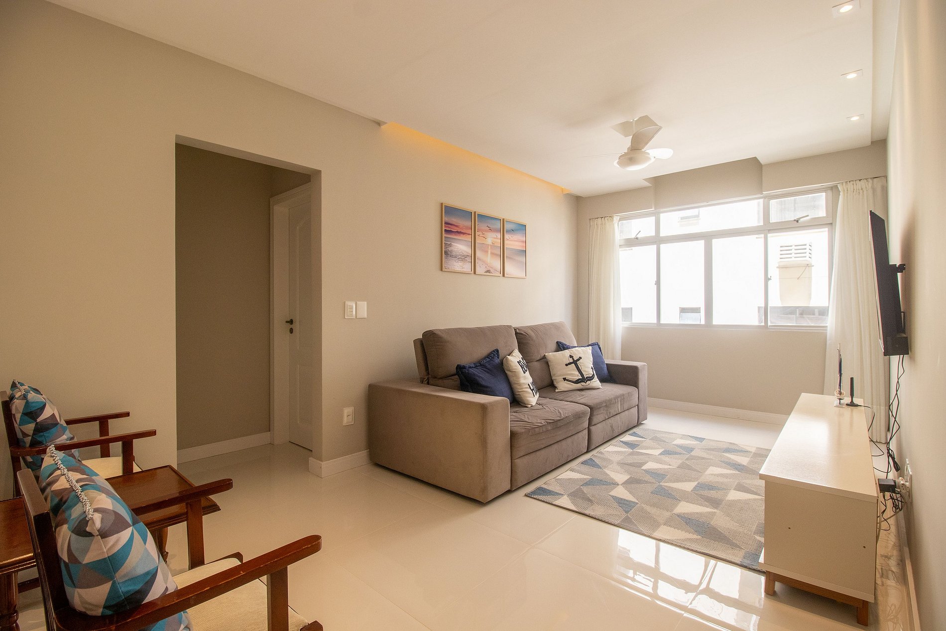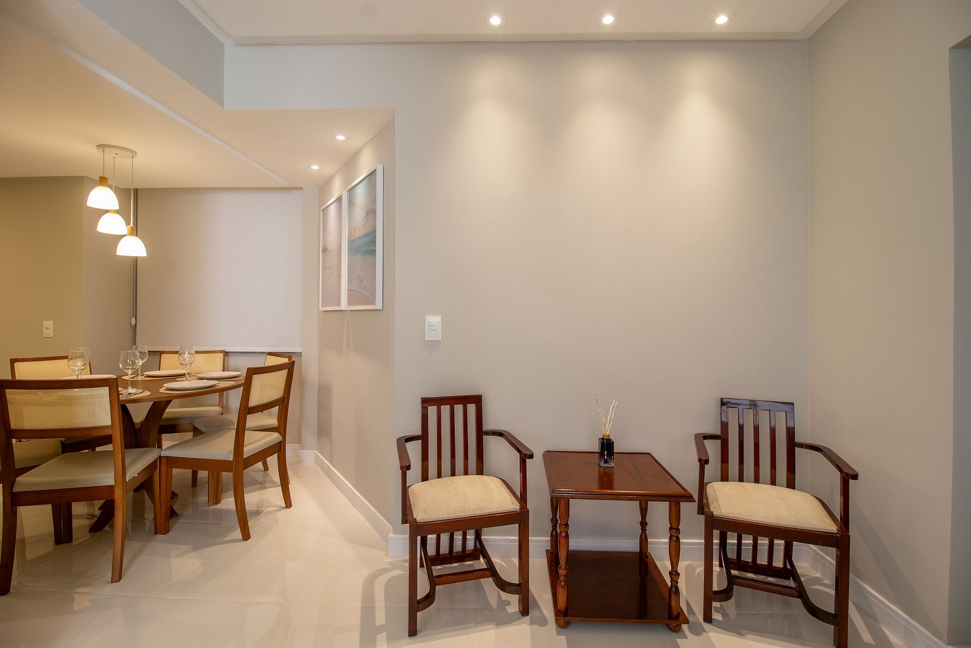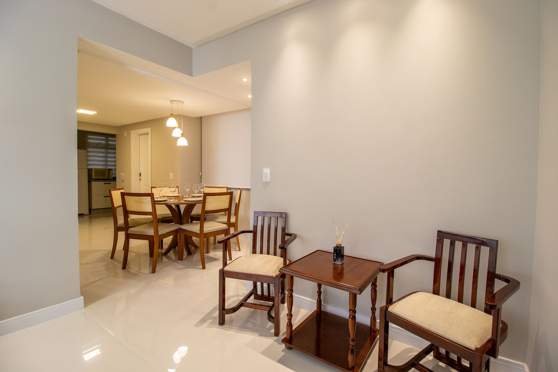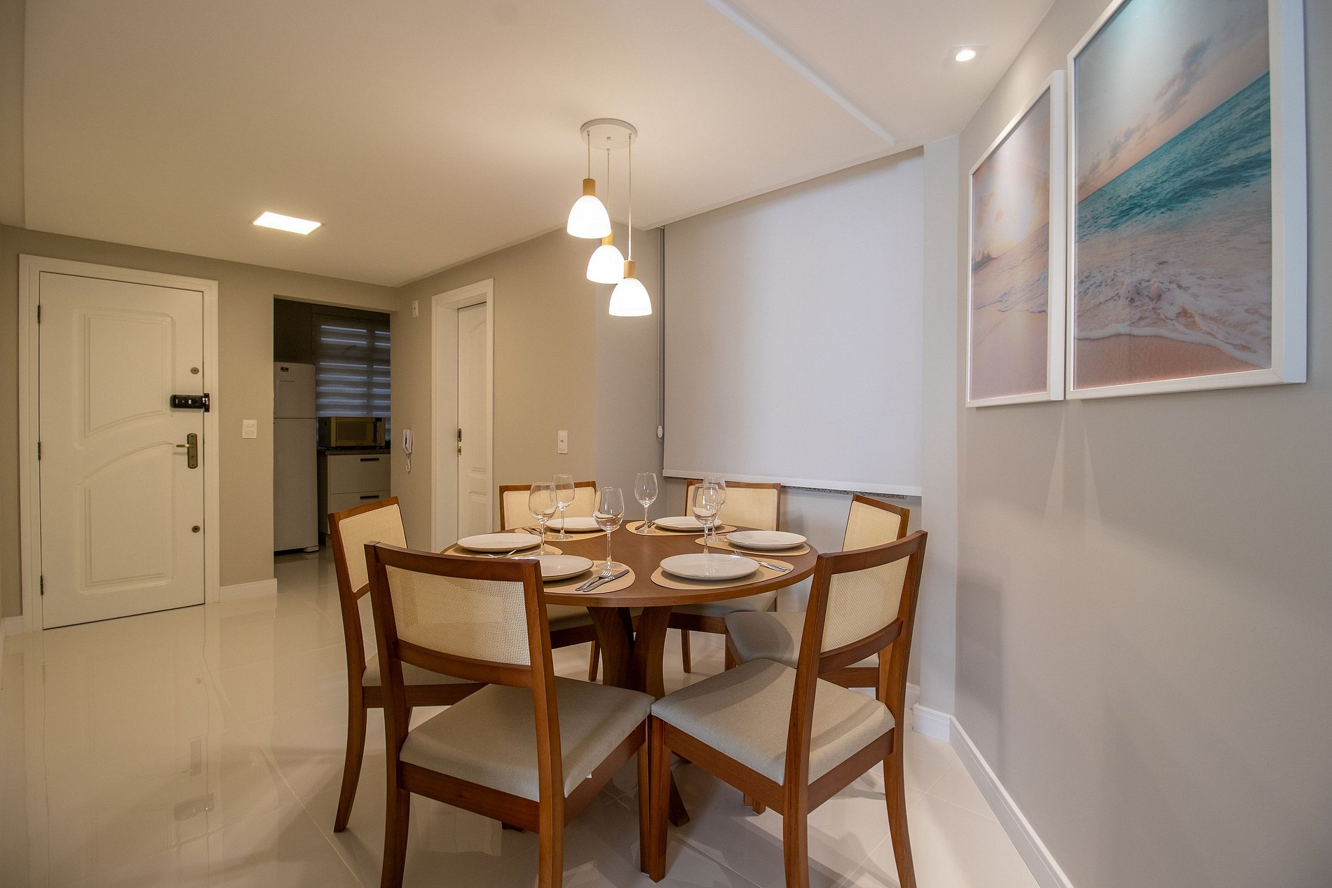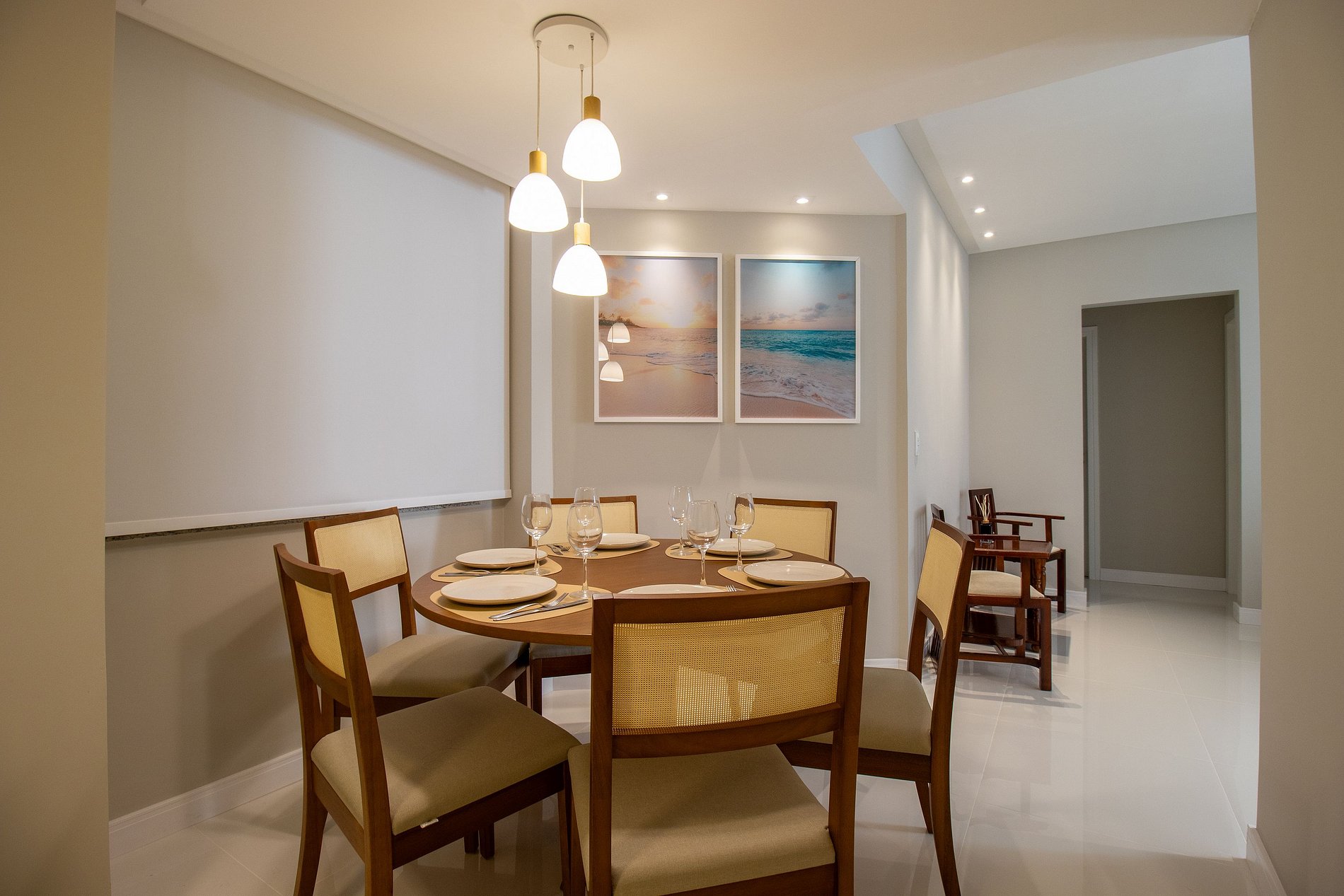 O apartamento oferece um ambiente acolhedor, com um sofá aconchegante e televisão Smart na sala de estar, além de uma mesa de jantar para seis pessoas. São três dormitórios, com um total de duas camas de casal e uma cama de solteiro com auxiliar. A cozinha está equipada com os itens básicos necessários para o seu dia a dia, garantindo uma estadia prática e agradável.